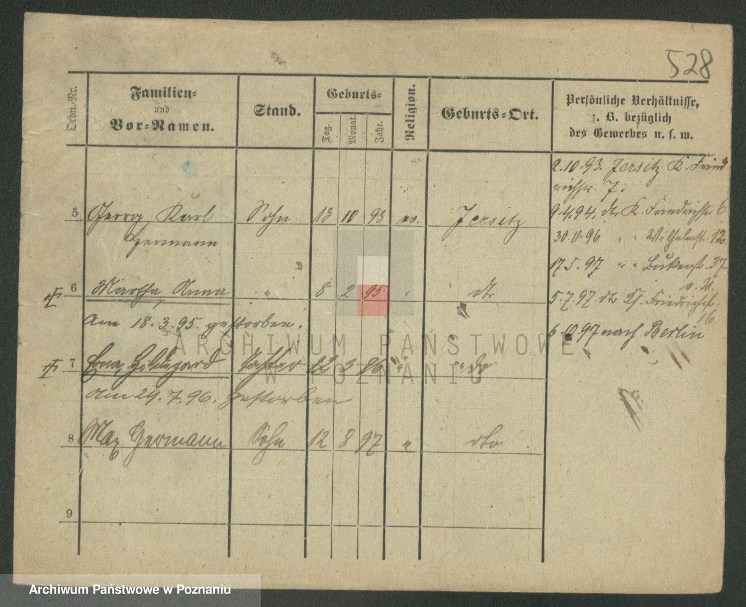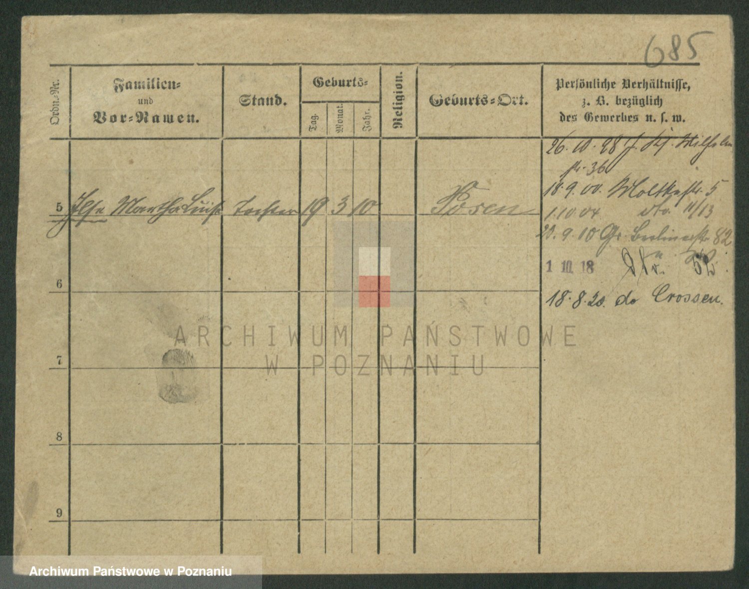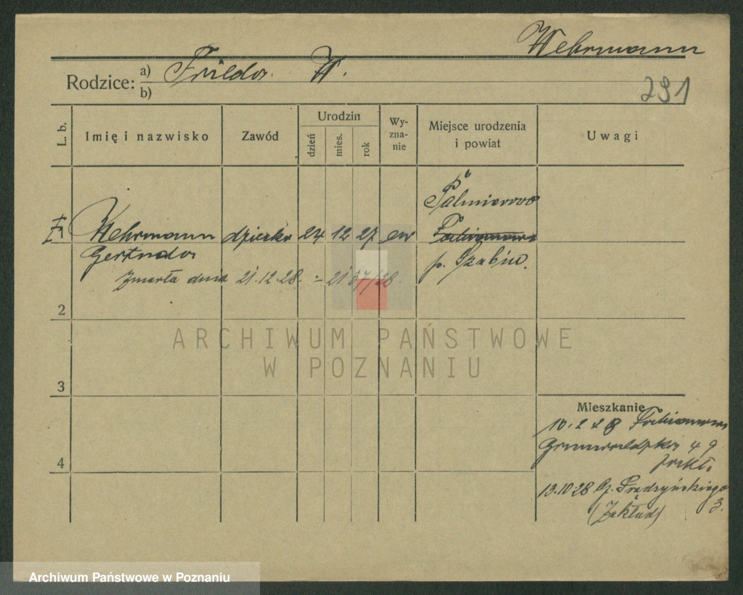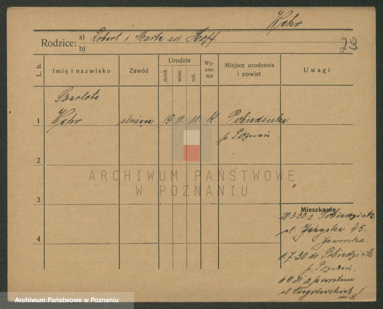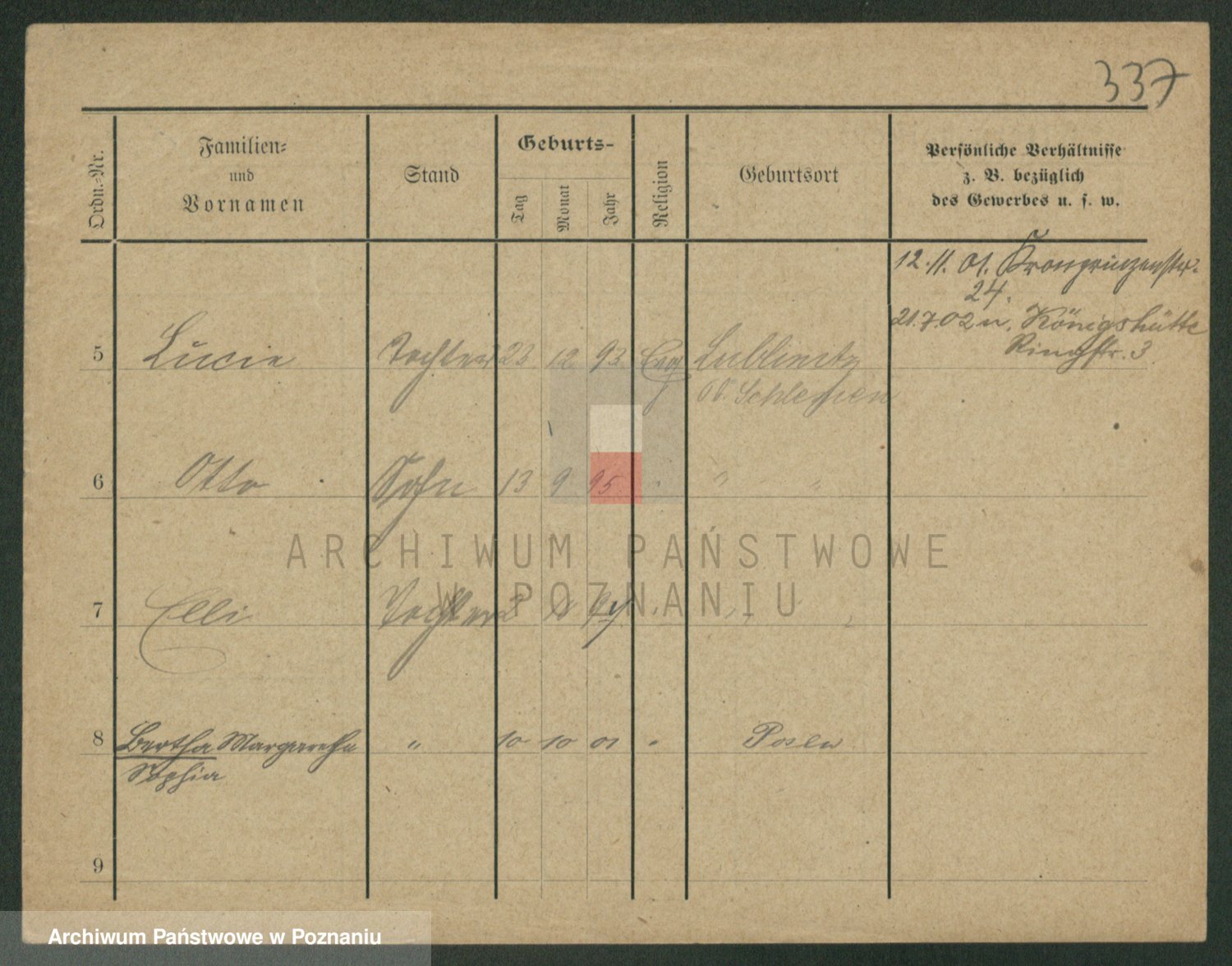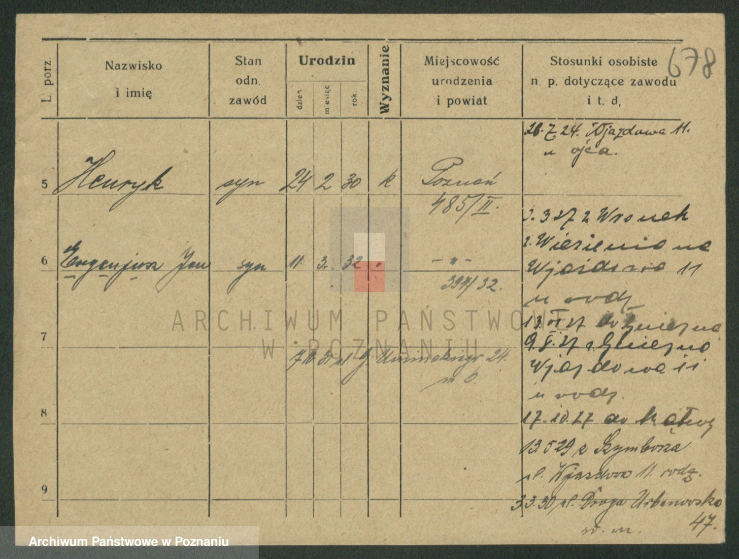 Podgląd karty osobowej dostępny jest po kliknięciu na nazwisko lub ikonkę karty. Można dokonywać powiększenia (ikony na górze) lub przechodzić między kolejnymi skanami (strzałki po bokach).