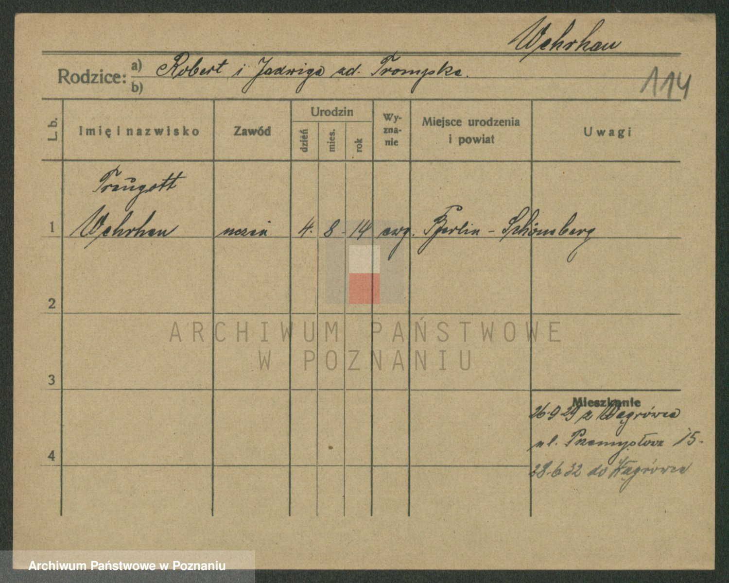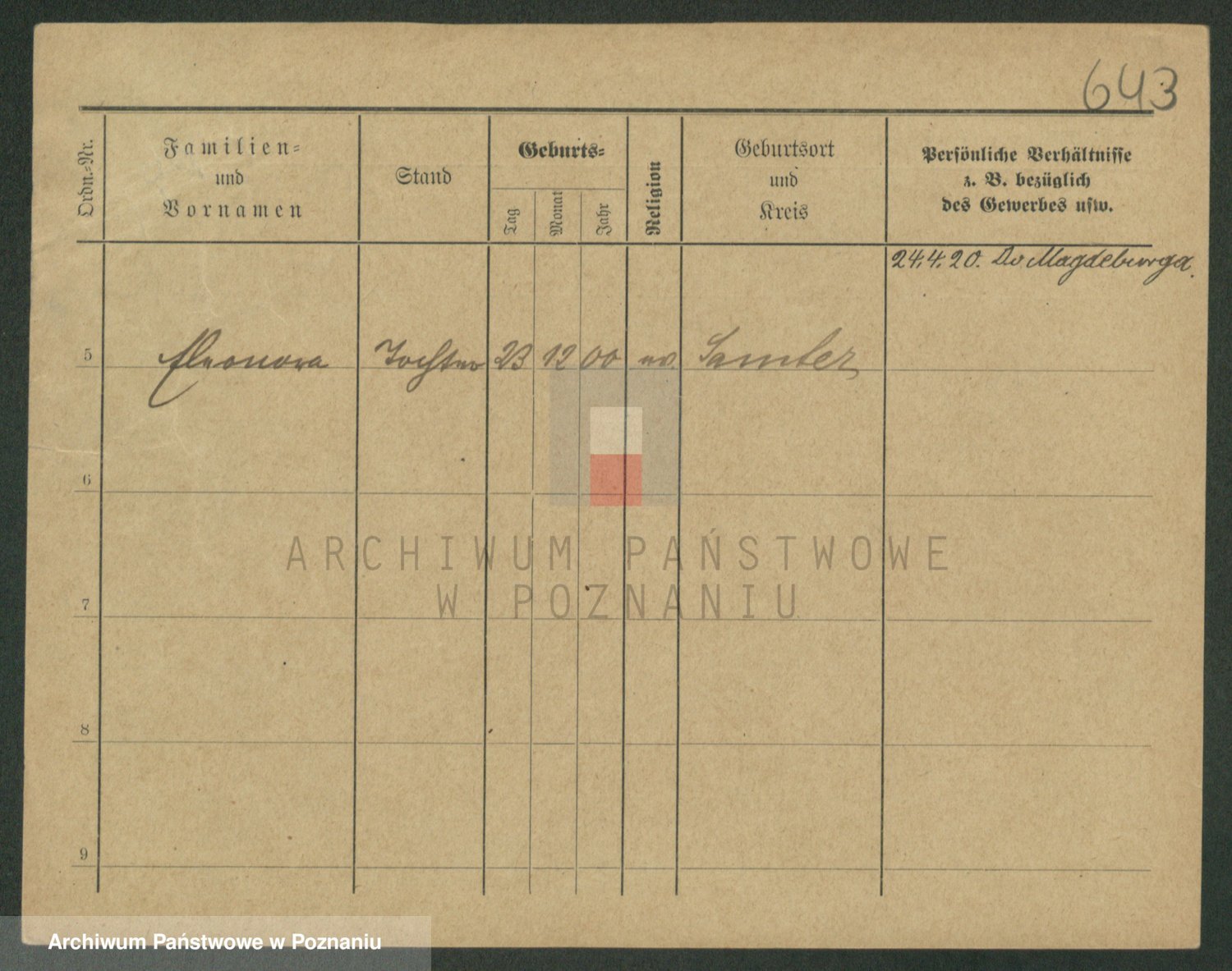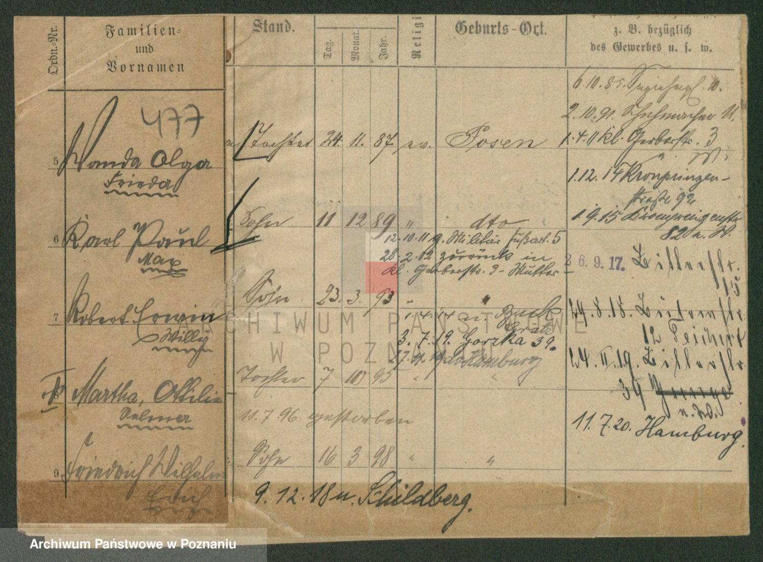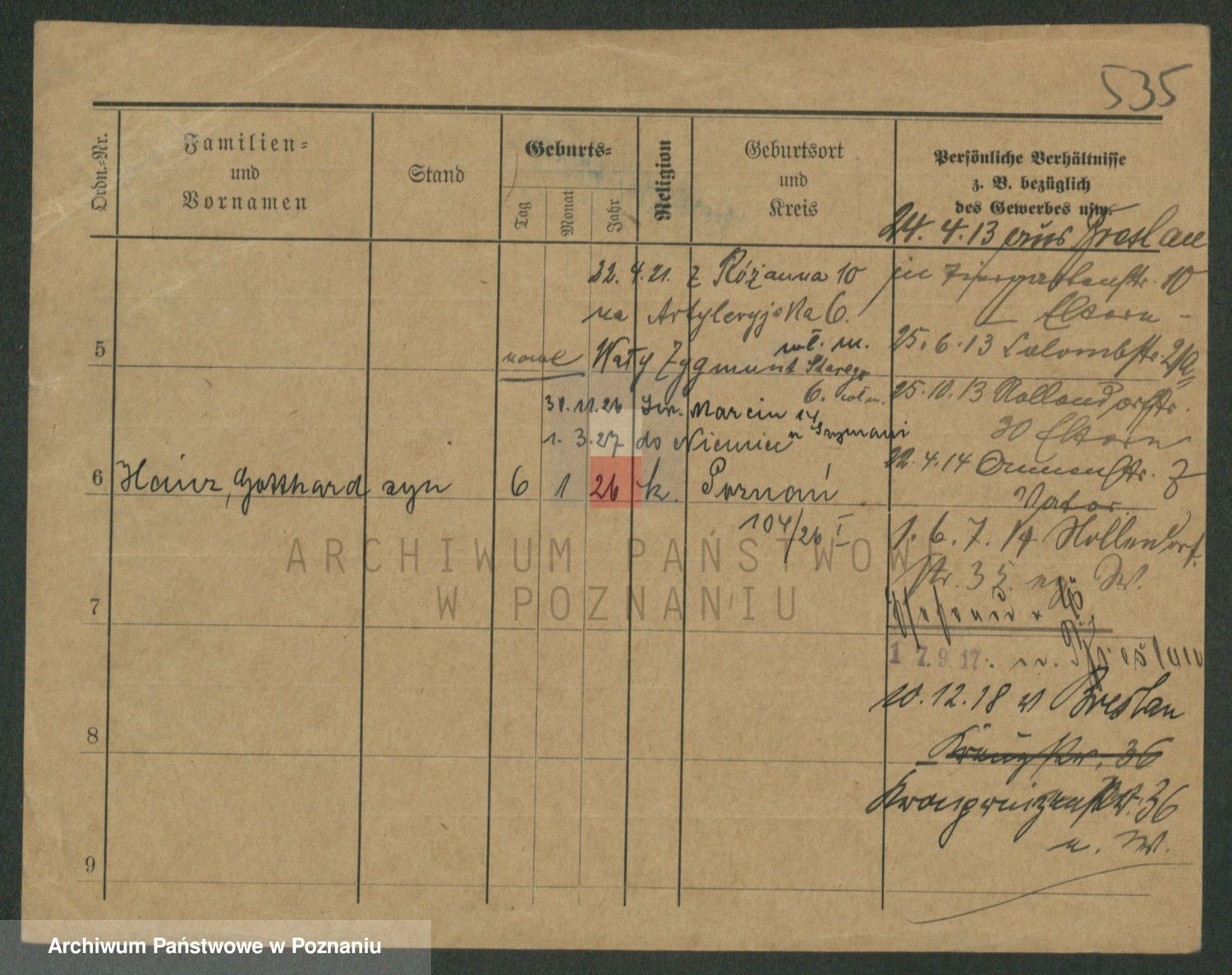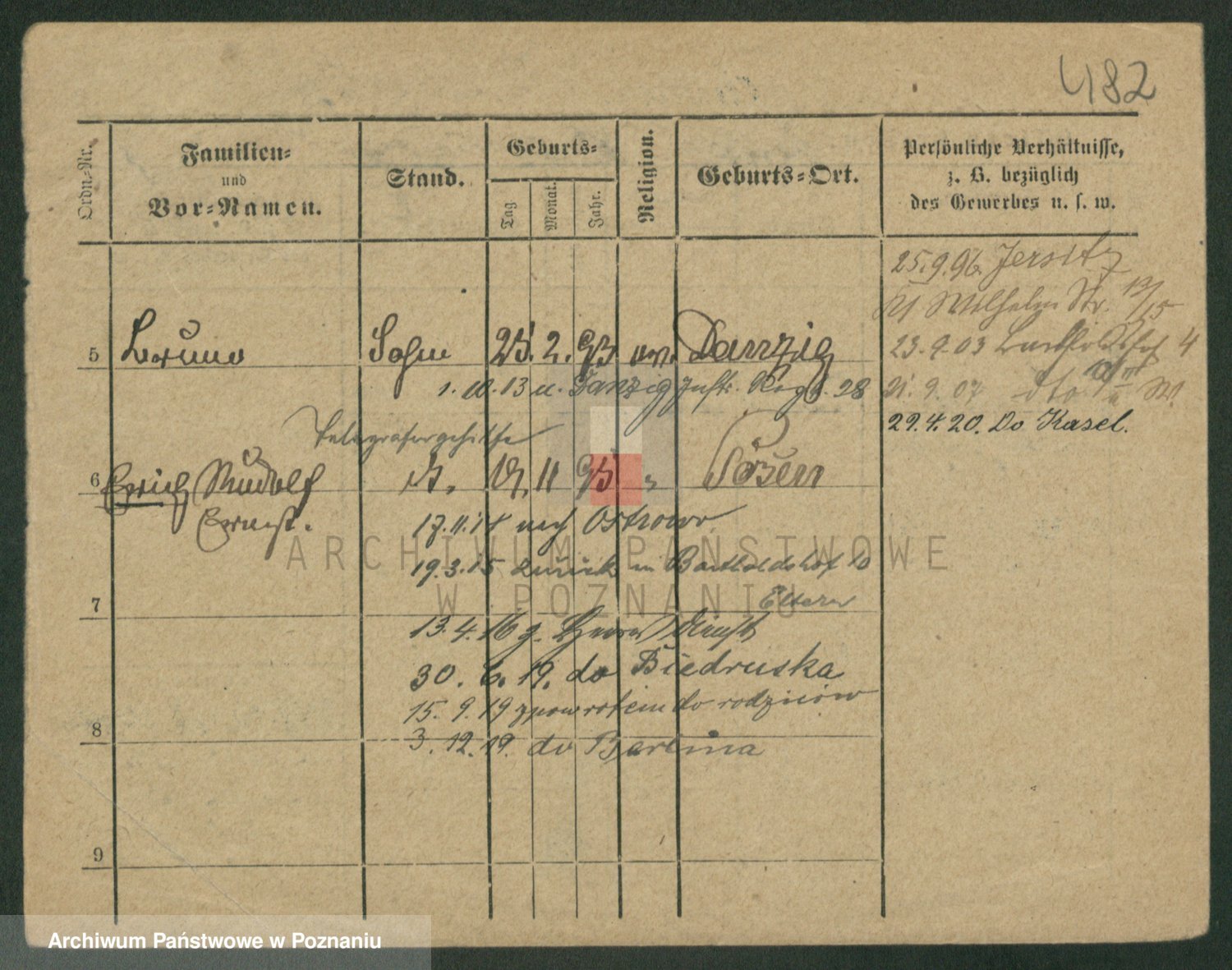 Podgląd karty osobowej dostępny jest po kliknięciu na nazwisko lub ikonkę karty. Można dokonywać powiększenia (ikony na górze) lub przechodzić między kolejnymi skanami (strzałki po bokach).