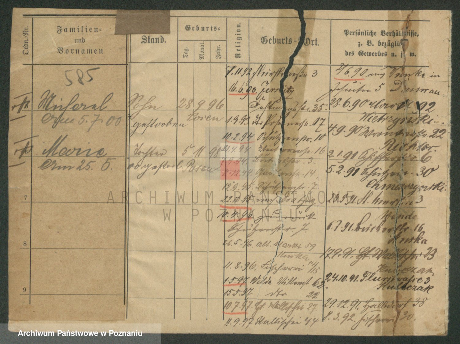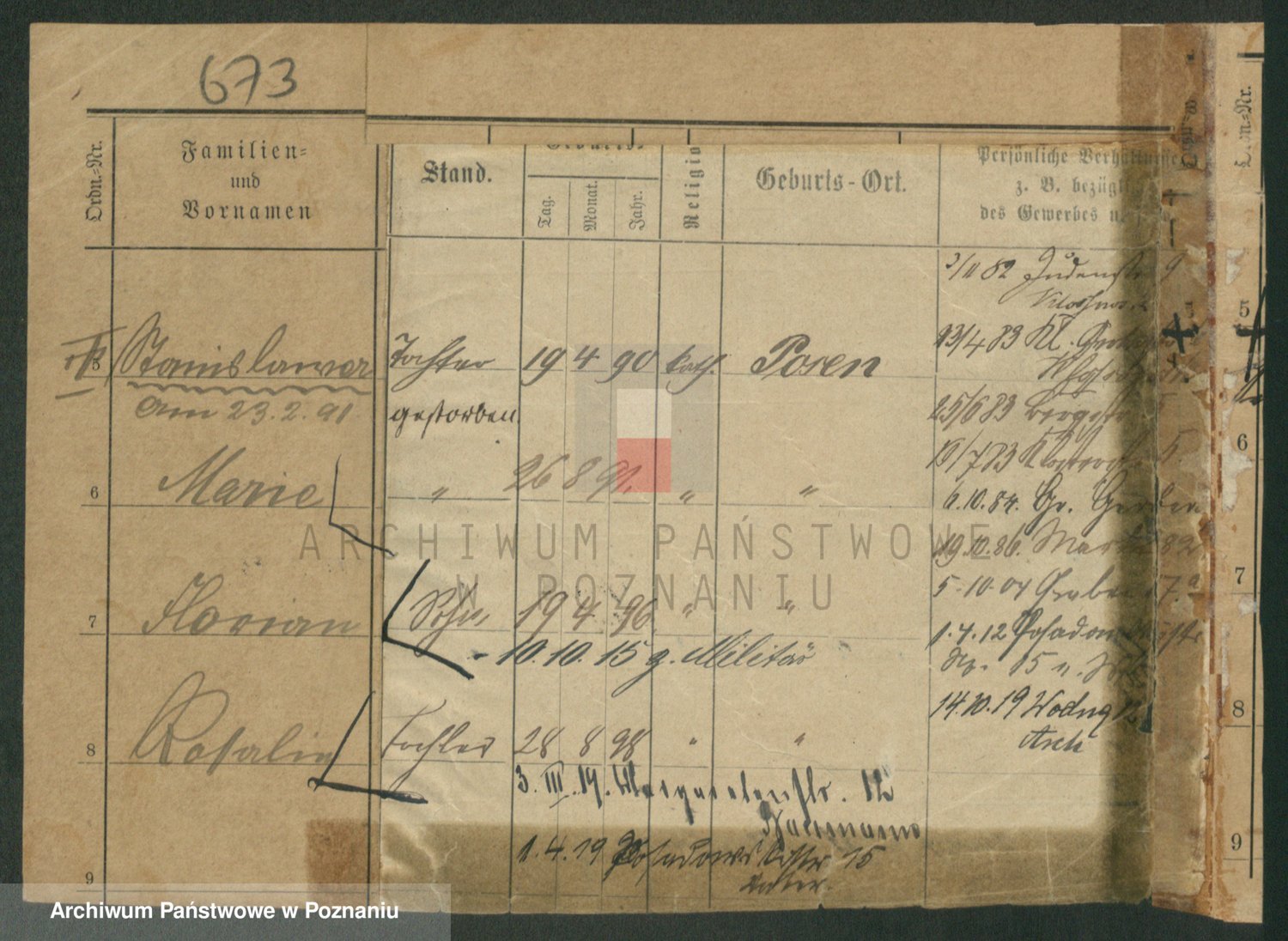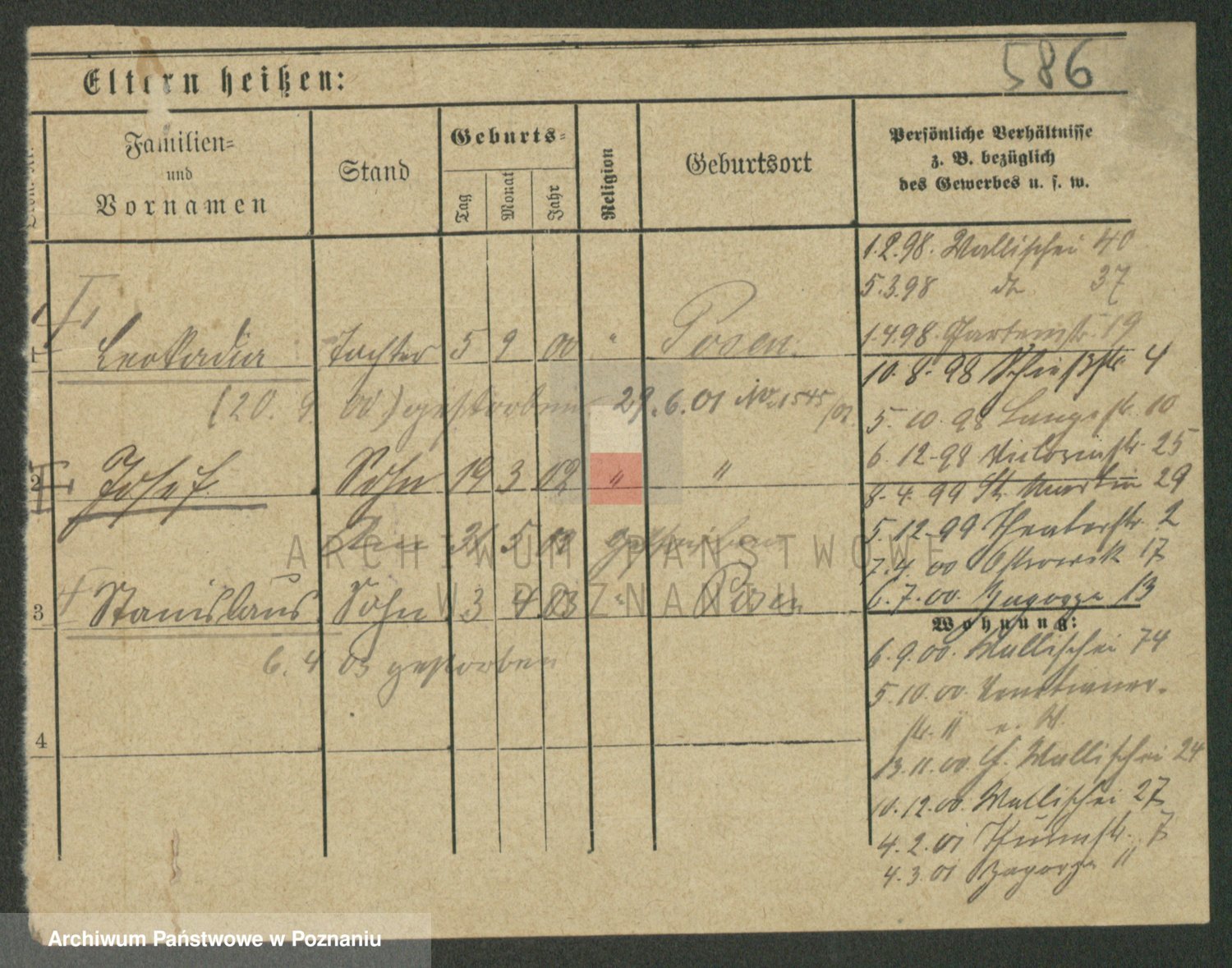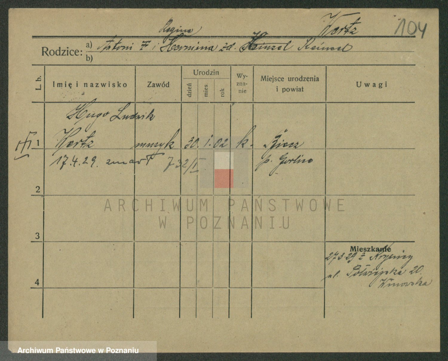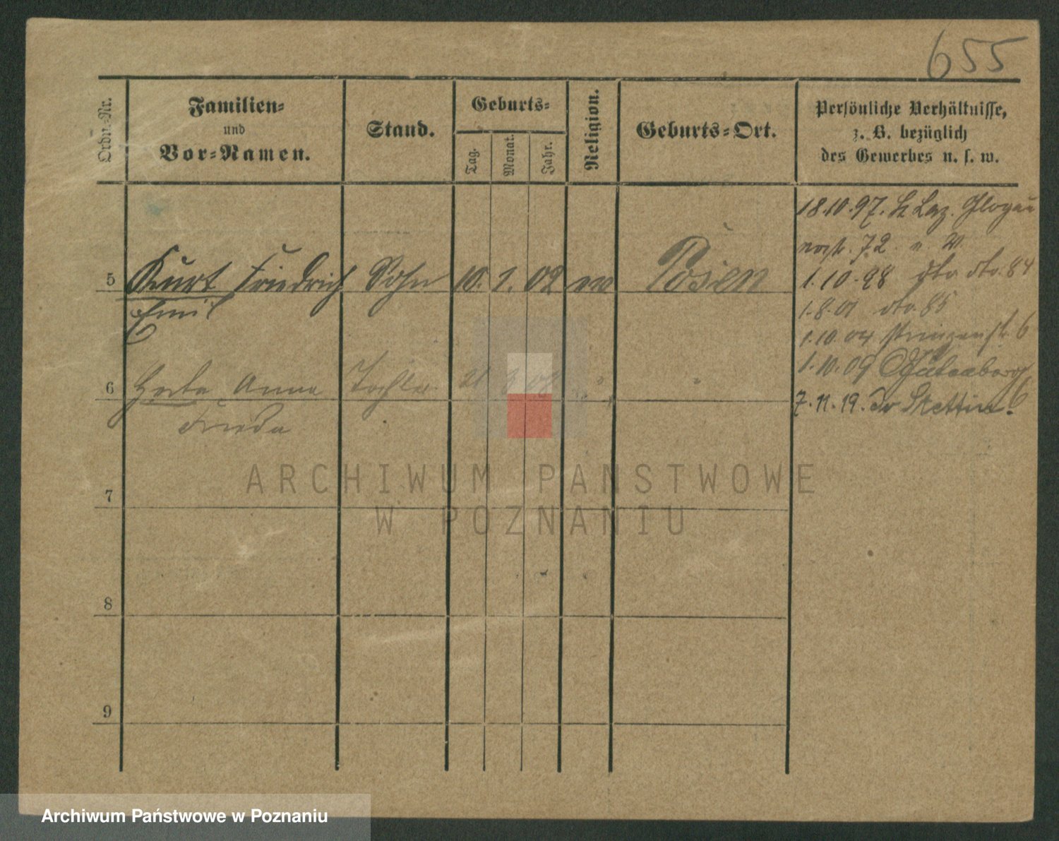 Podgląd karty osobowej dostępny jest po kliknięciu na nazwisko lub ikonkę karty. Można dokonywać powiększenia (ikony na górze) lub przechodzić między kolejnymi skanami (strzałki po bokach).