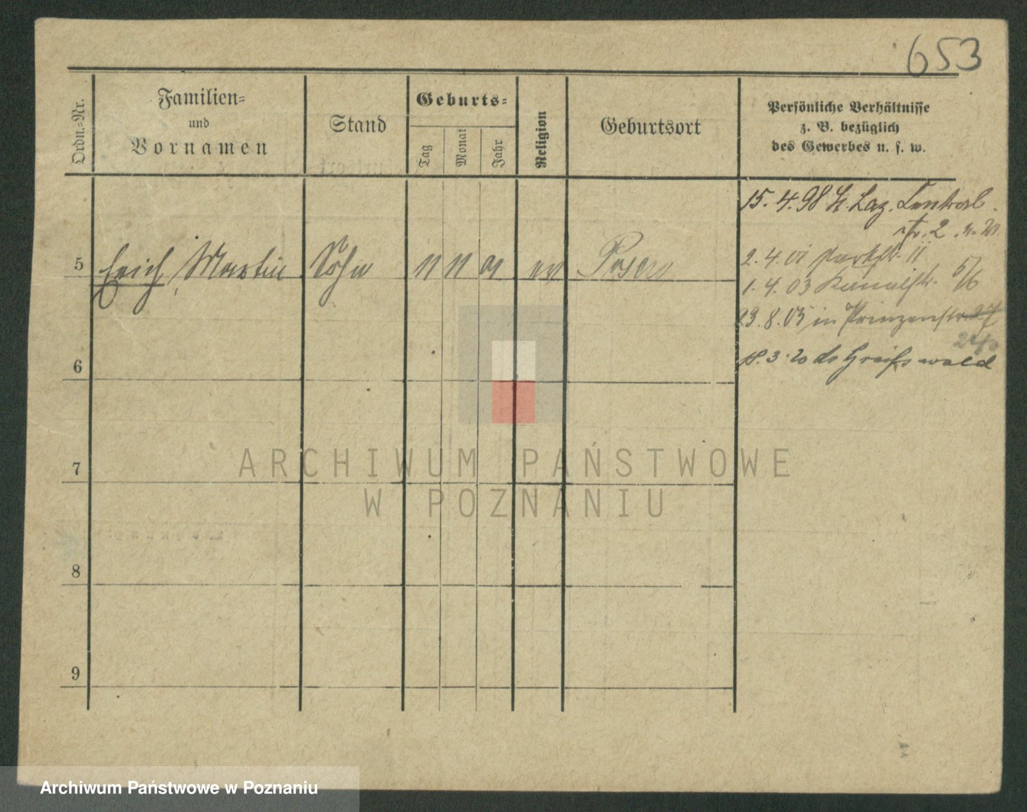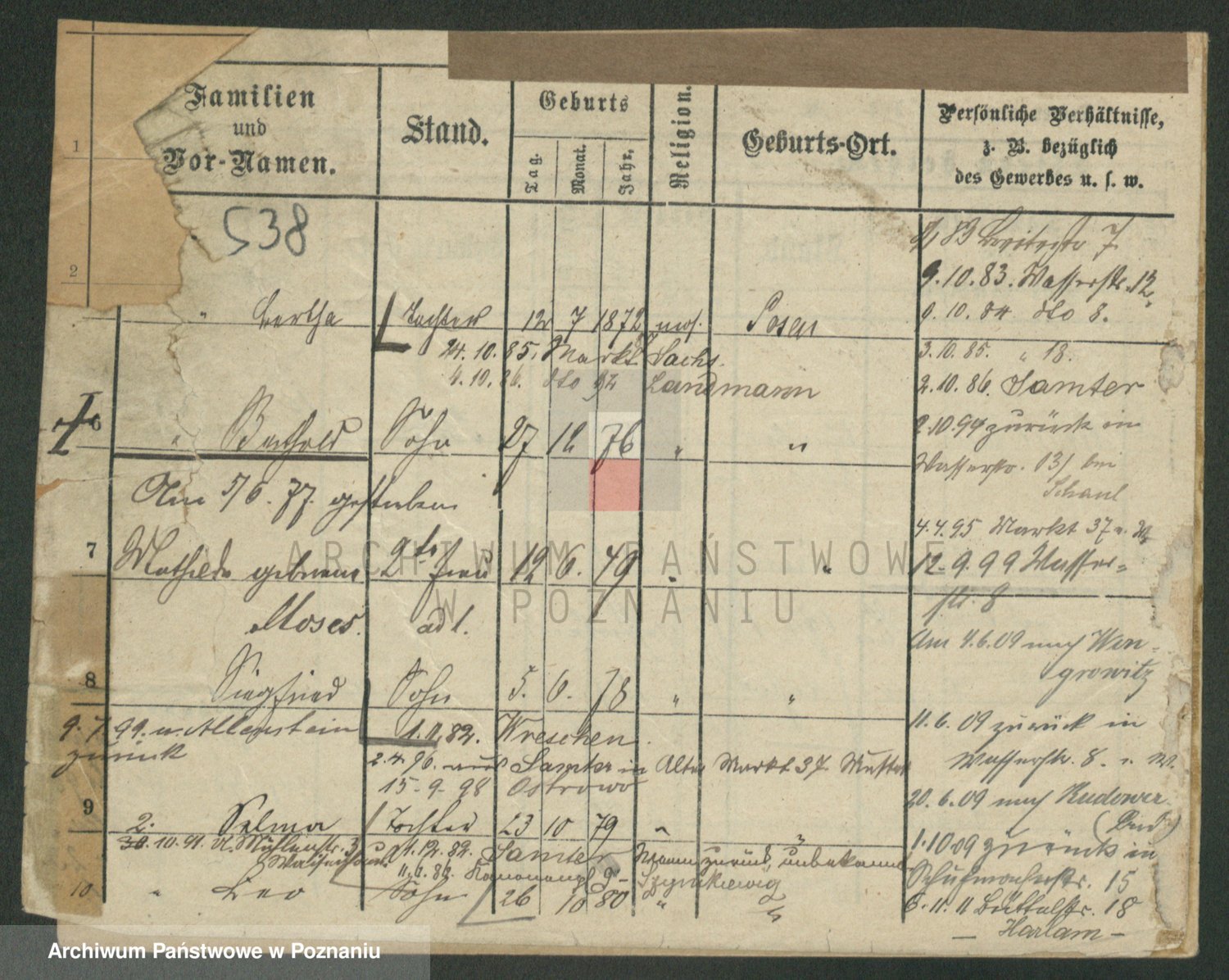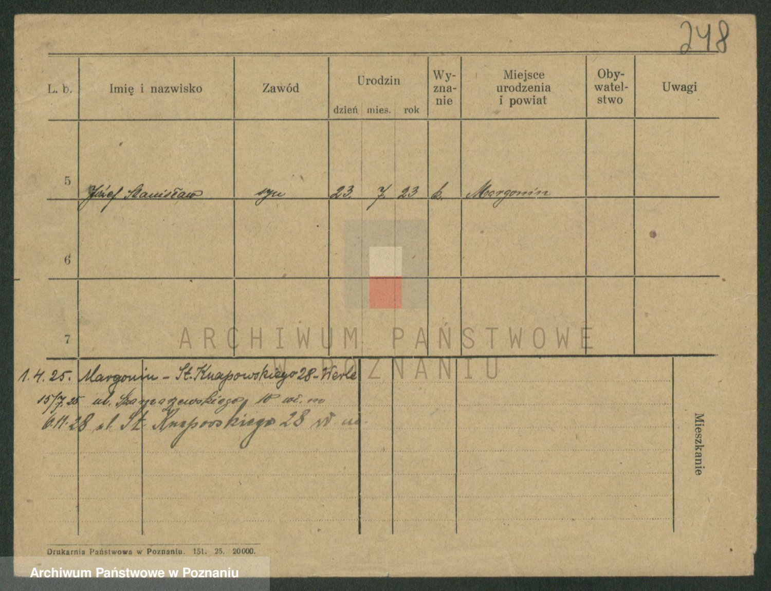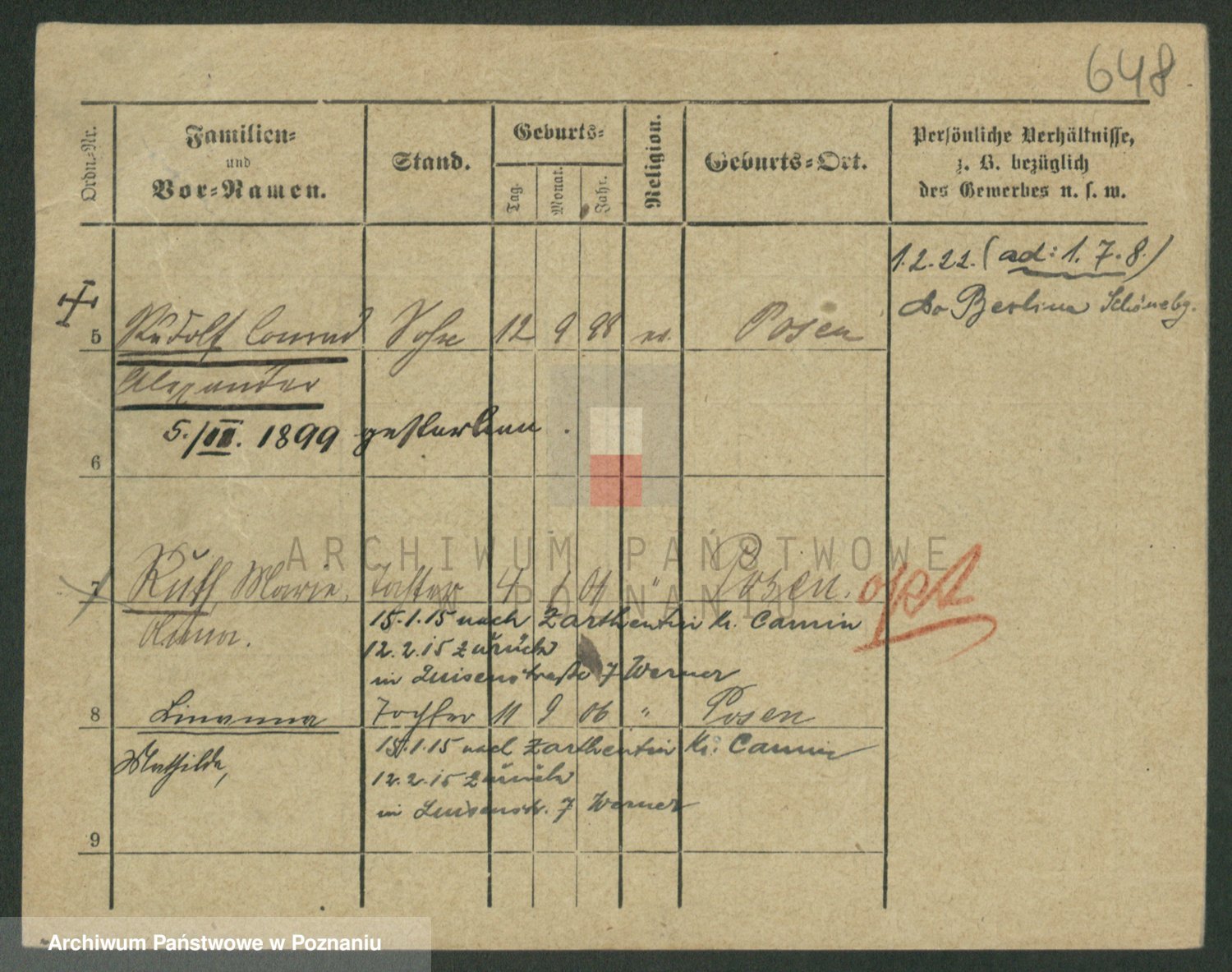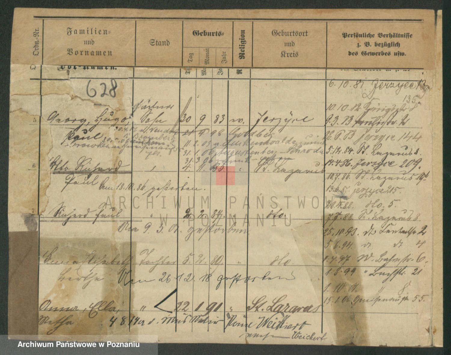 Podgląd karty osobowej dostępny jest po kliknięciu na nazwisko lub ikonkę karty. Można dokonywać powiększenia (ikony na górze) lub przechodzić między kolejnymi skanami (strzałki po bokach).