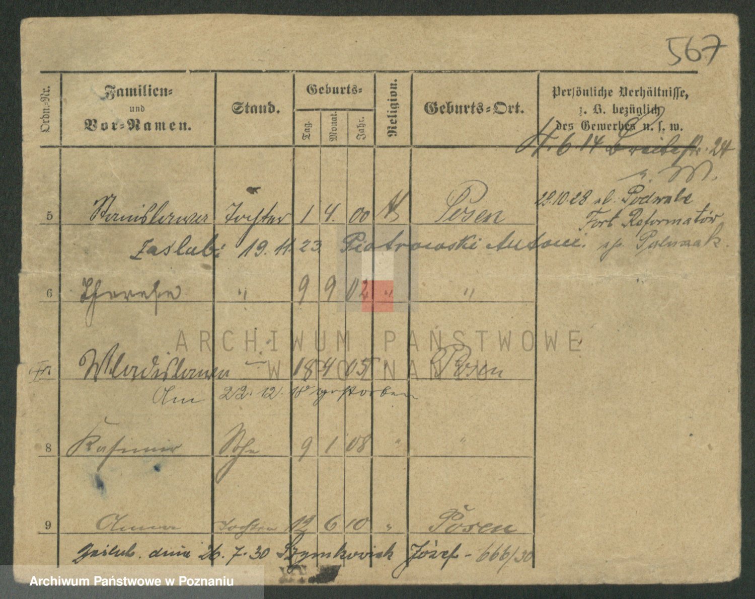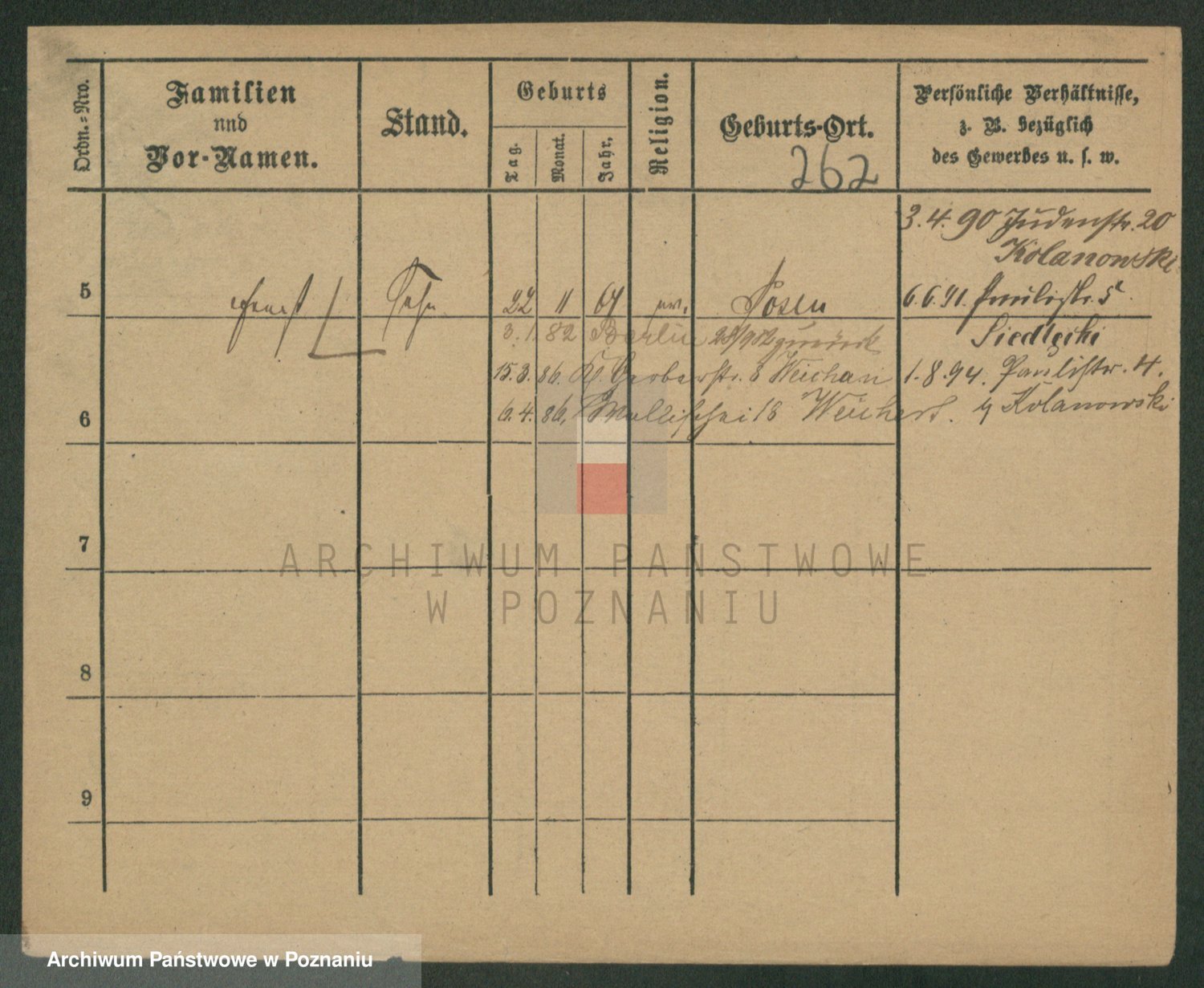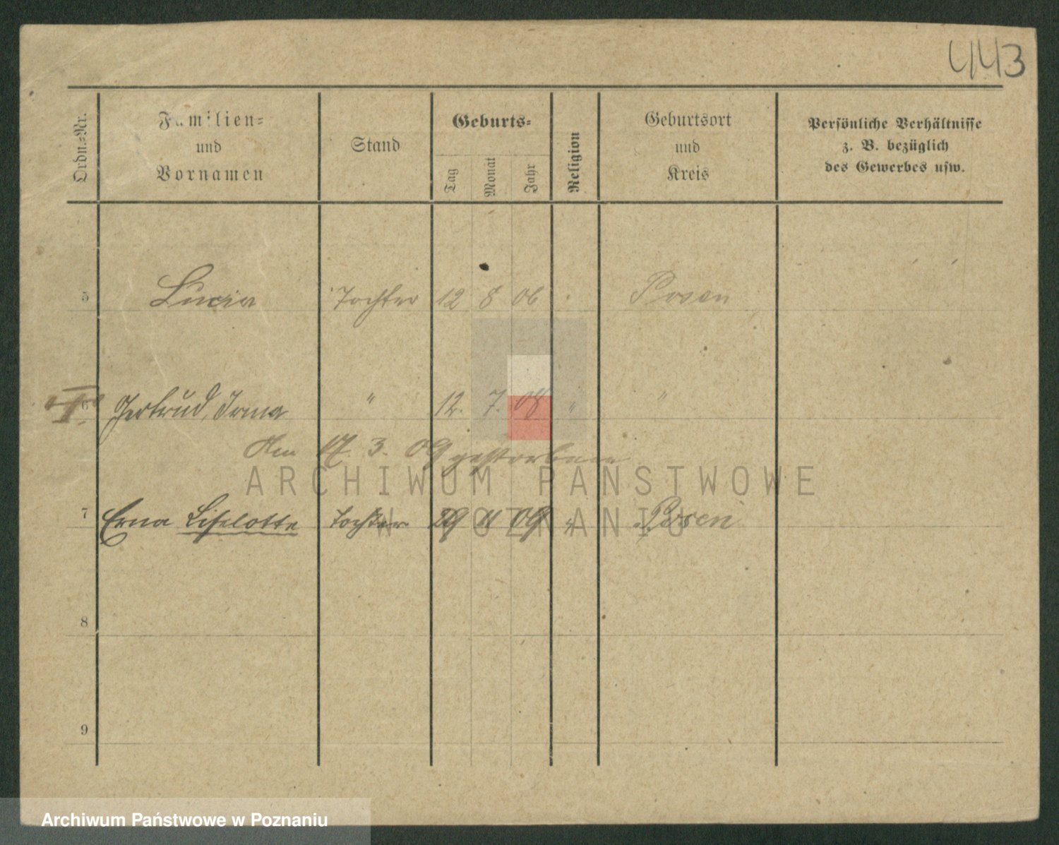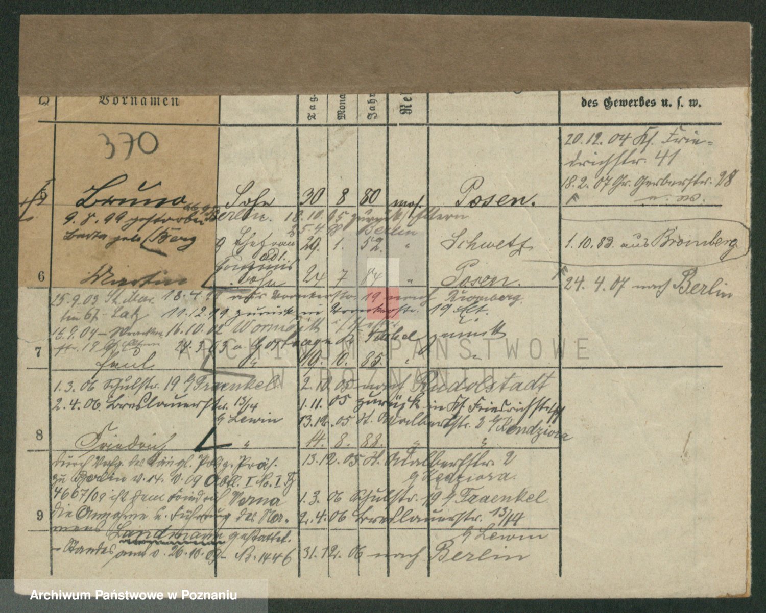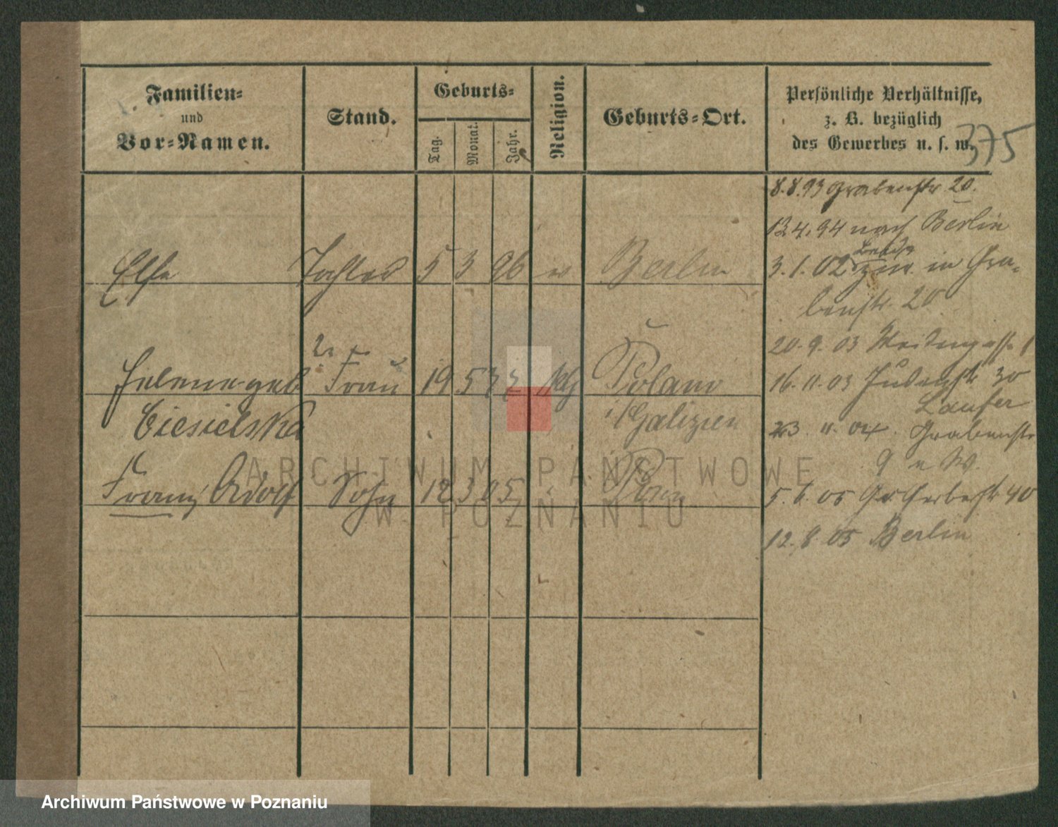 Podgląd karty osobowej dostępny jest po kliknięciu na nazwisko lub ikonkę karty. Można dokonywać powiększenia (ikony na górze) lub przechodzić między kolejnymi skanami (strzałki po bokach).