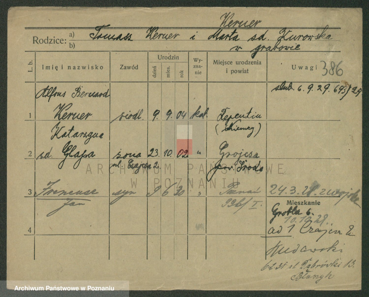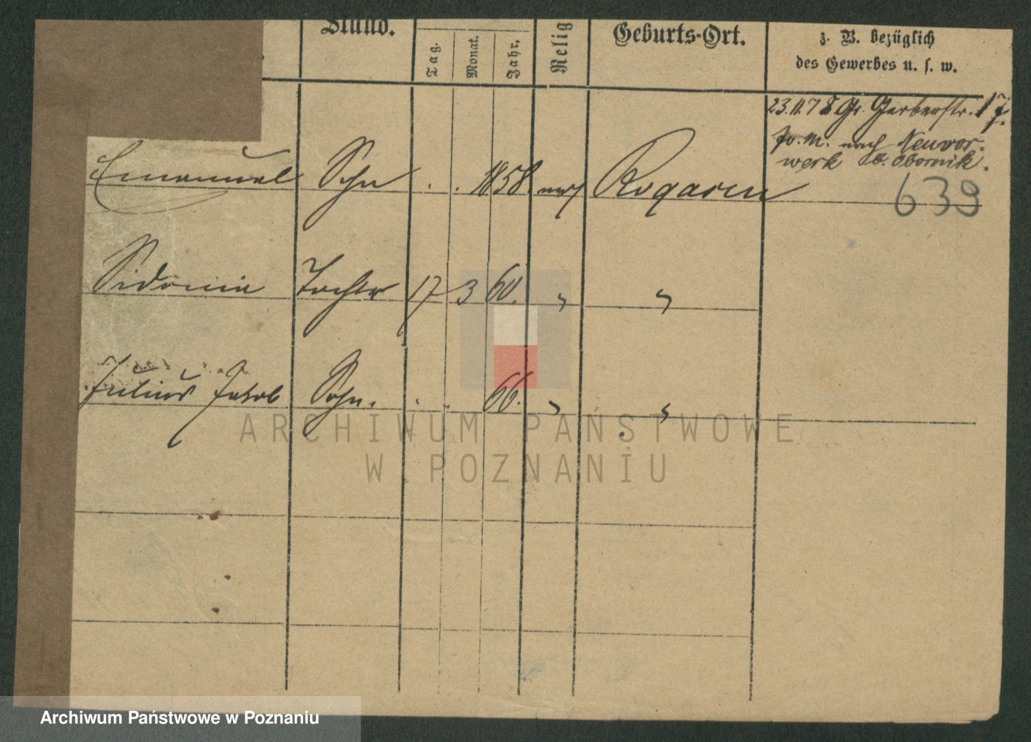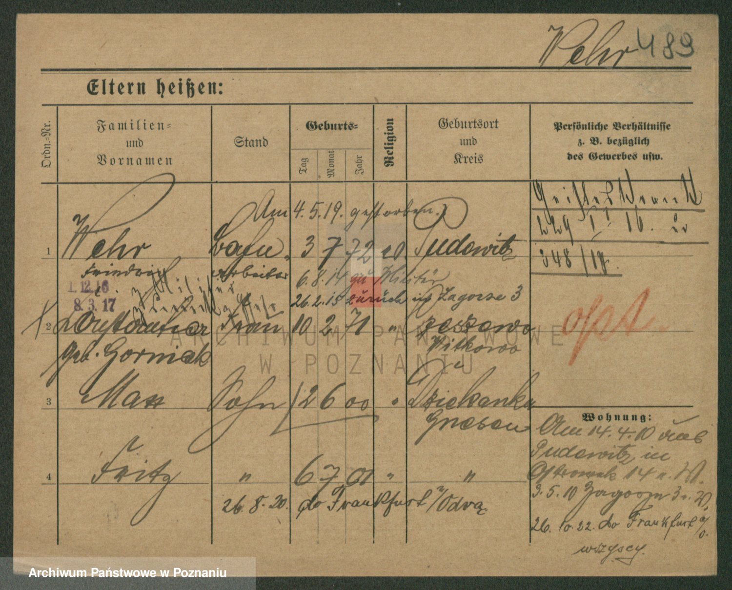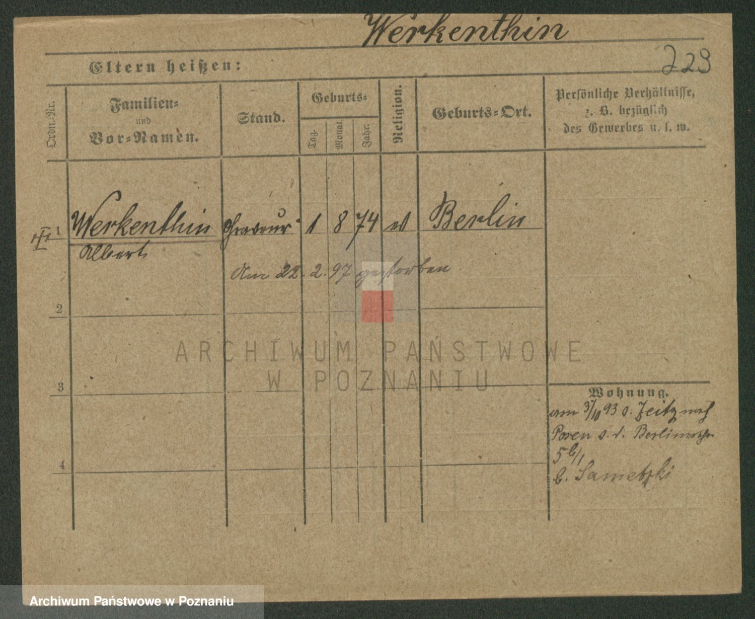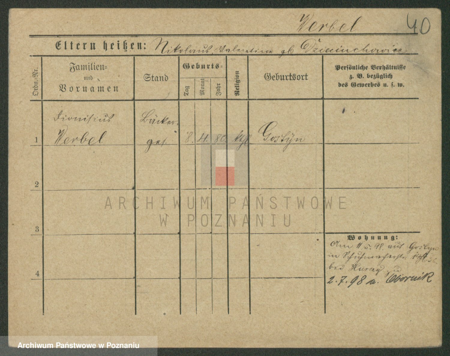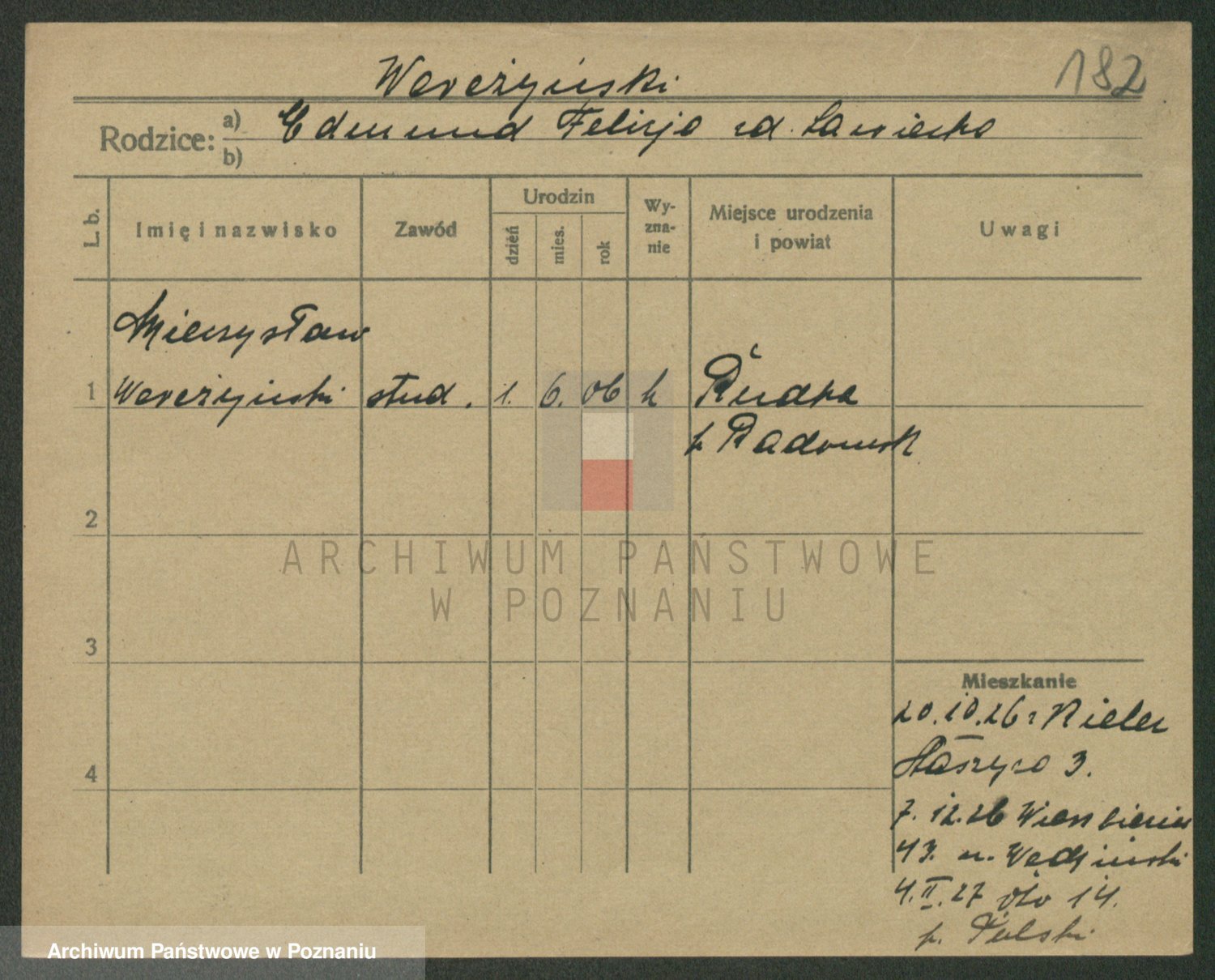 Podgląd karty osobowej dostępny jest po kliknięciu na nazwisko lub ikonkę karty. Można dokonywać powiększenia (ikony na górze) lub przechodzić między kolejnymi skanami (strzałki po bokach).