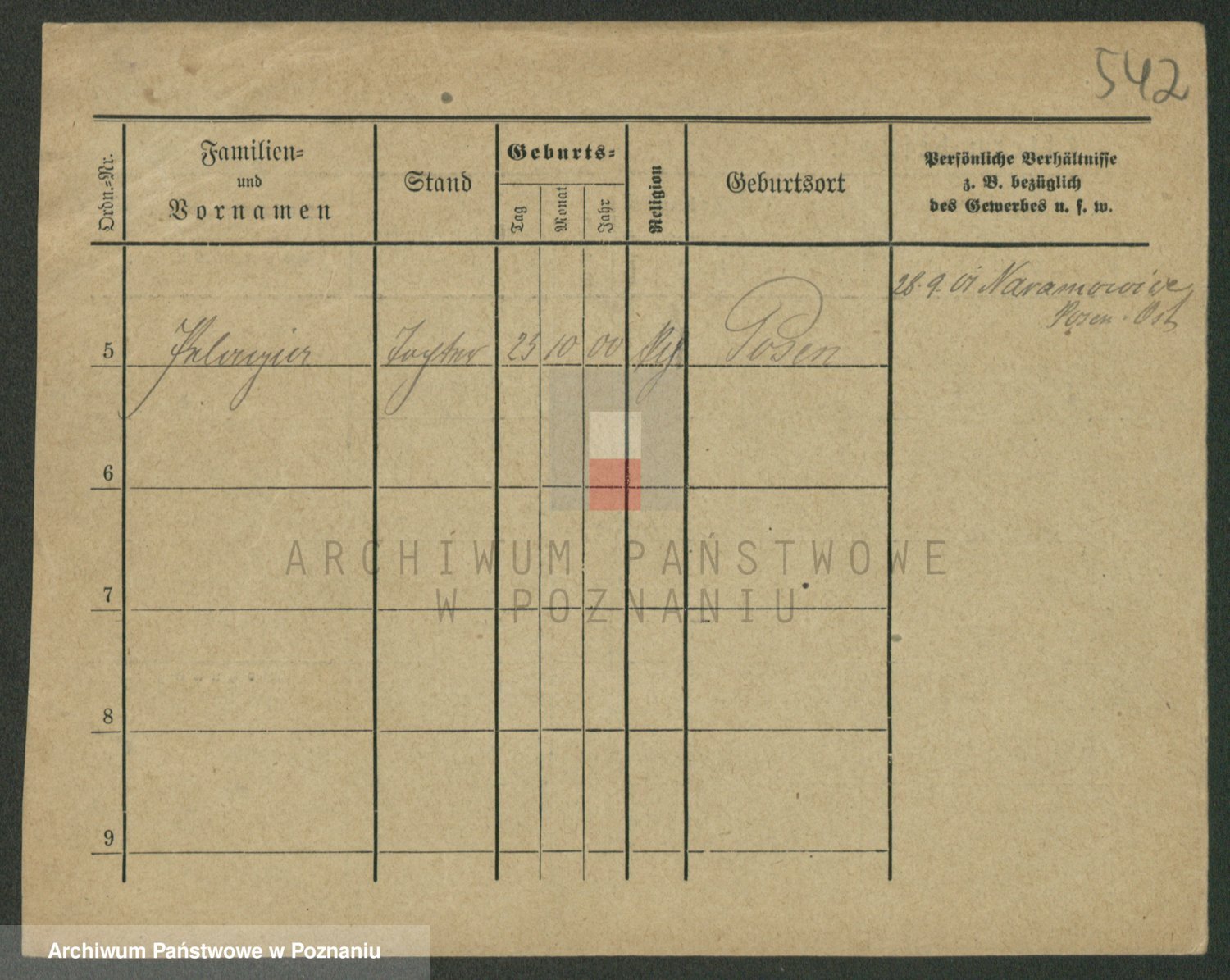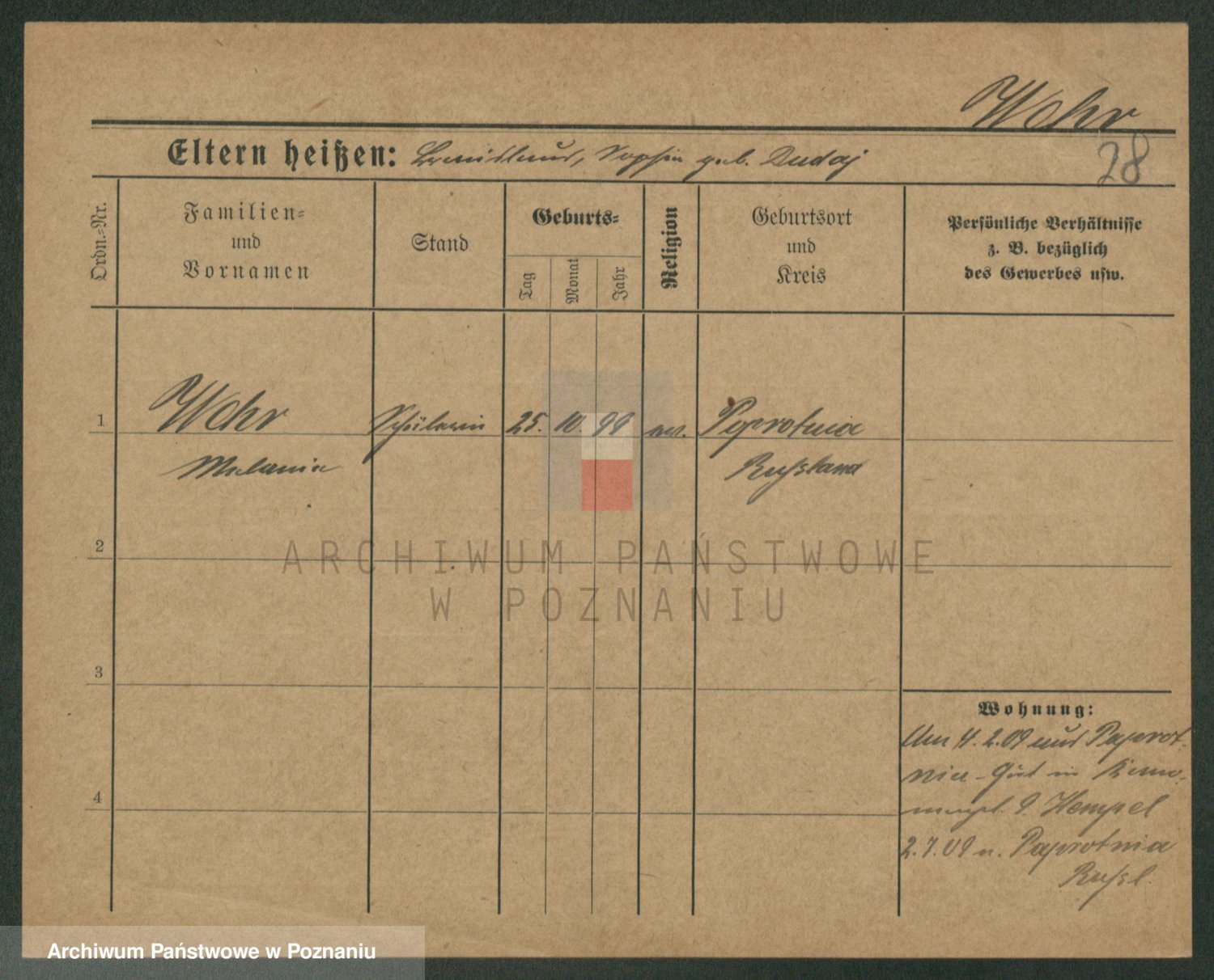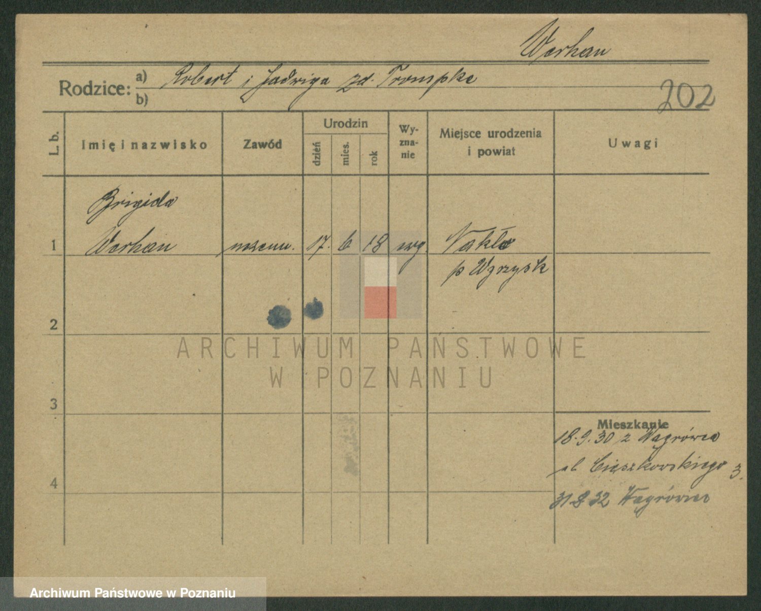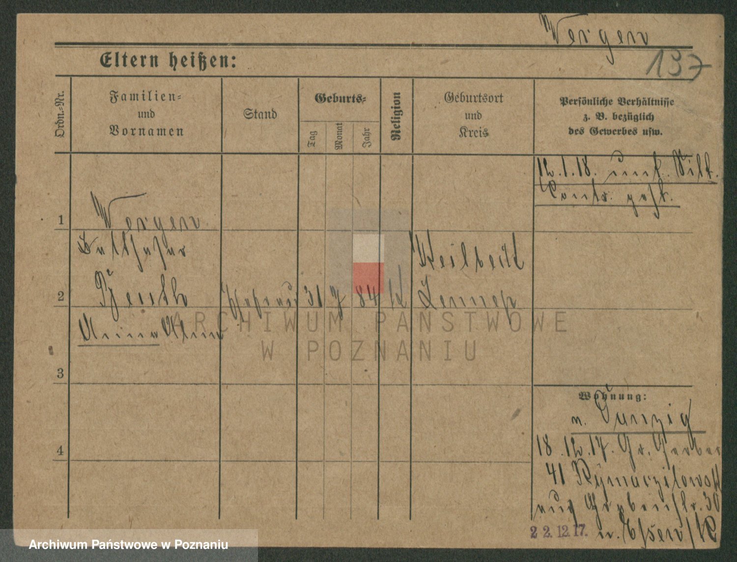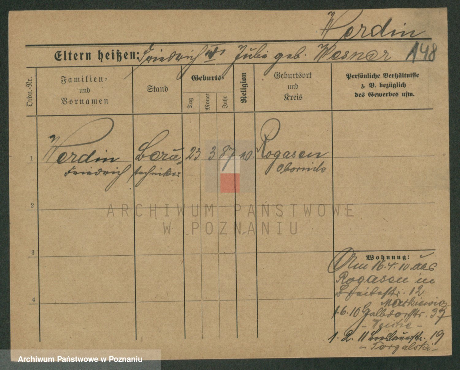 Podgląd karty osobowej dostępny jest po kliknięciu na nazwisko lub ikonkę karty. Można dokonywać powiększenia (ikony na górze) lub przechodzić między kolejnymi skanami (strzałki po bokach).
