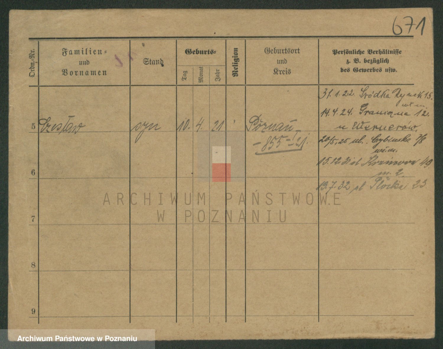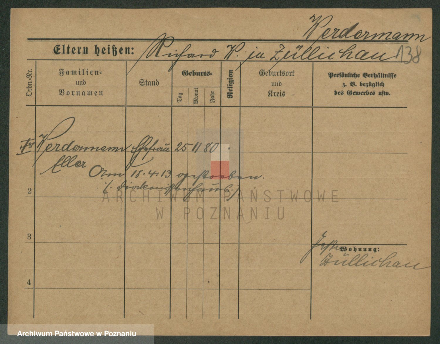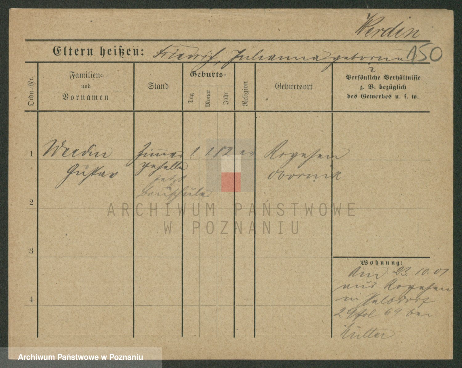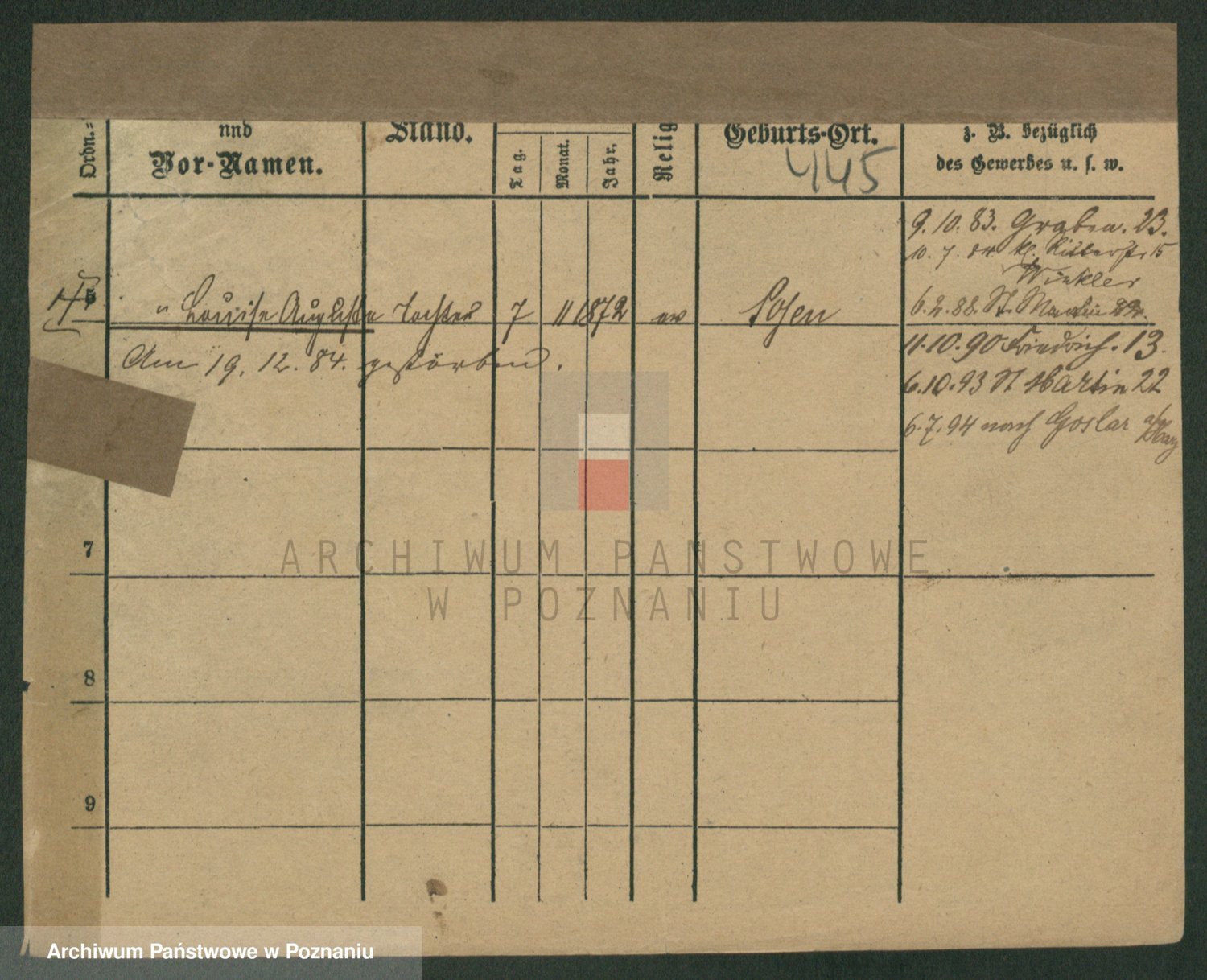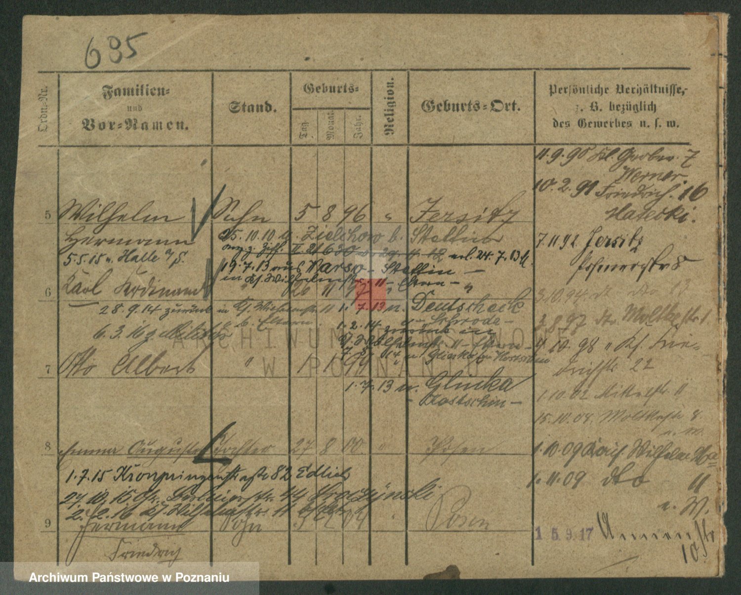 Podgląd karty osobowej dostępny jest po kliknięciu na nazwisko lub ikonkę karty. Można dokonywać powiększenia (ikony na górze) lub przechodzić między kolejnymi skanami (strzałki po bokach).