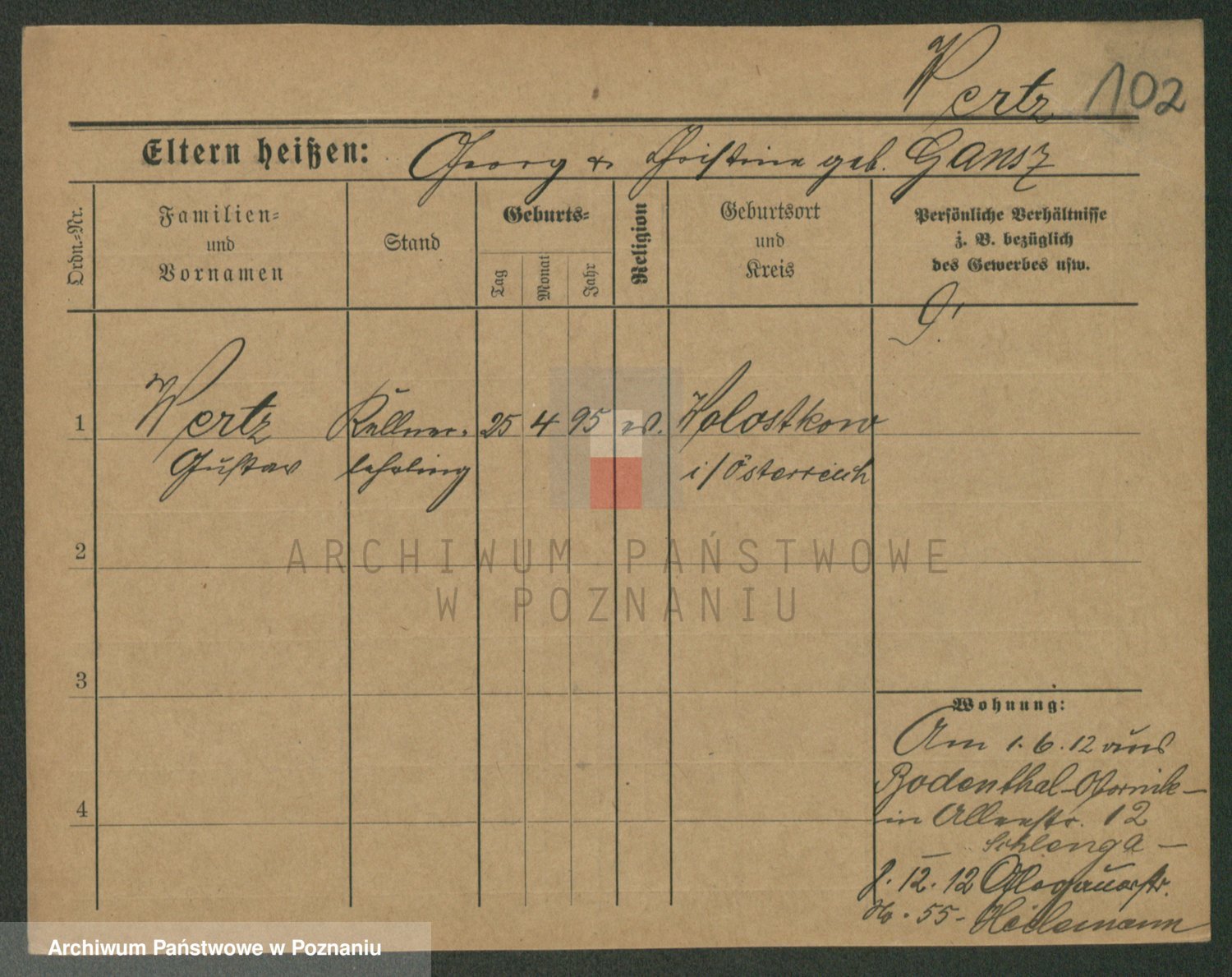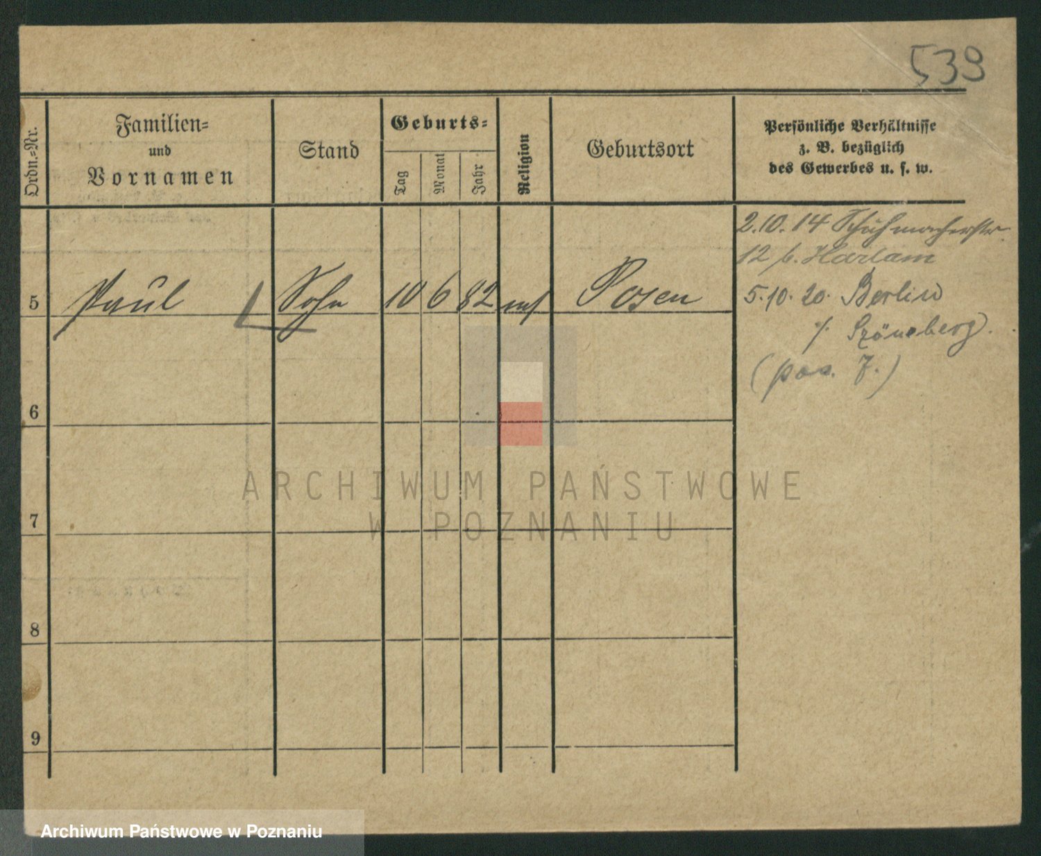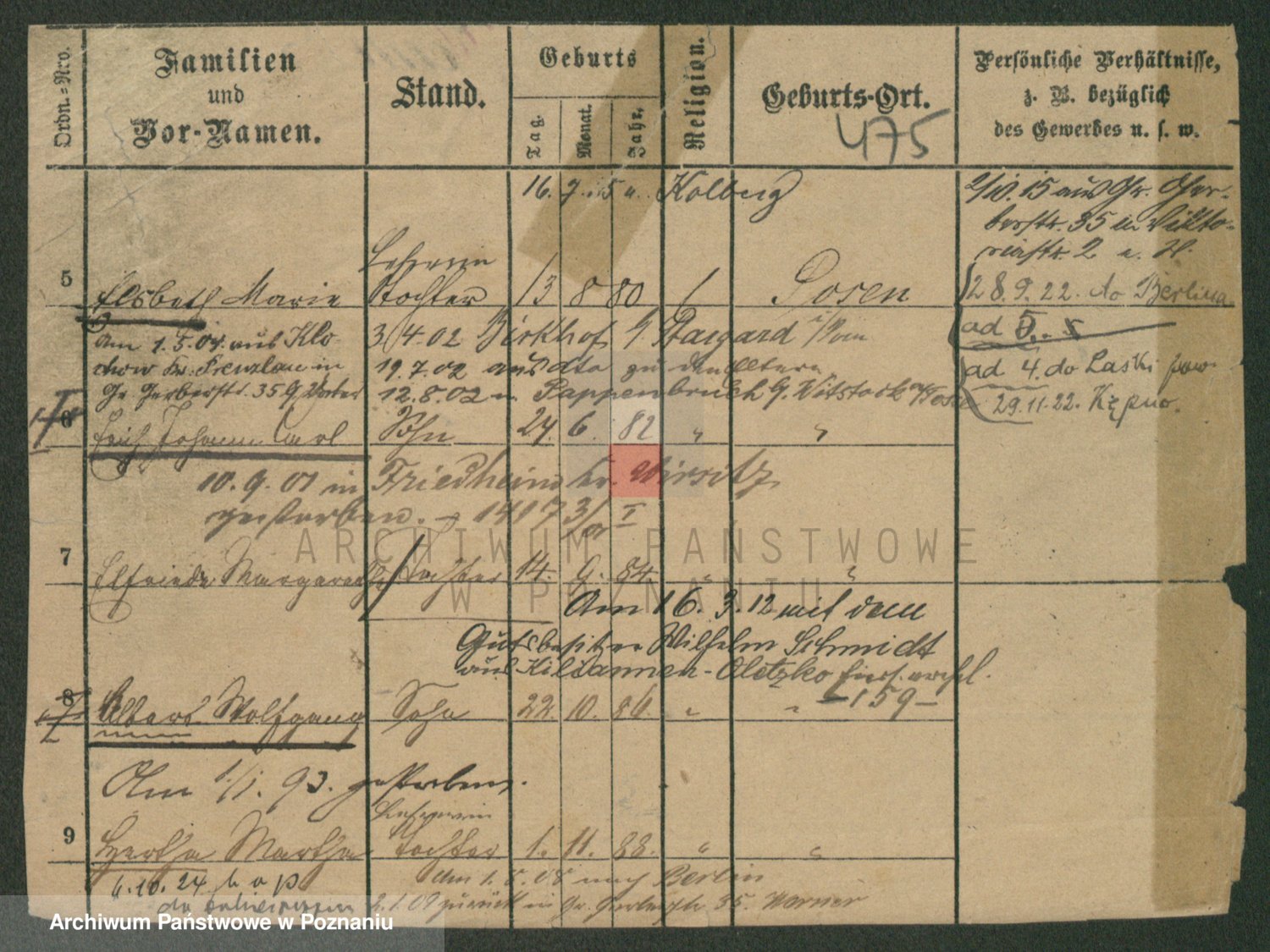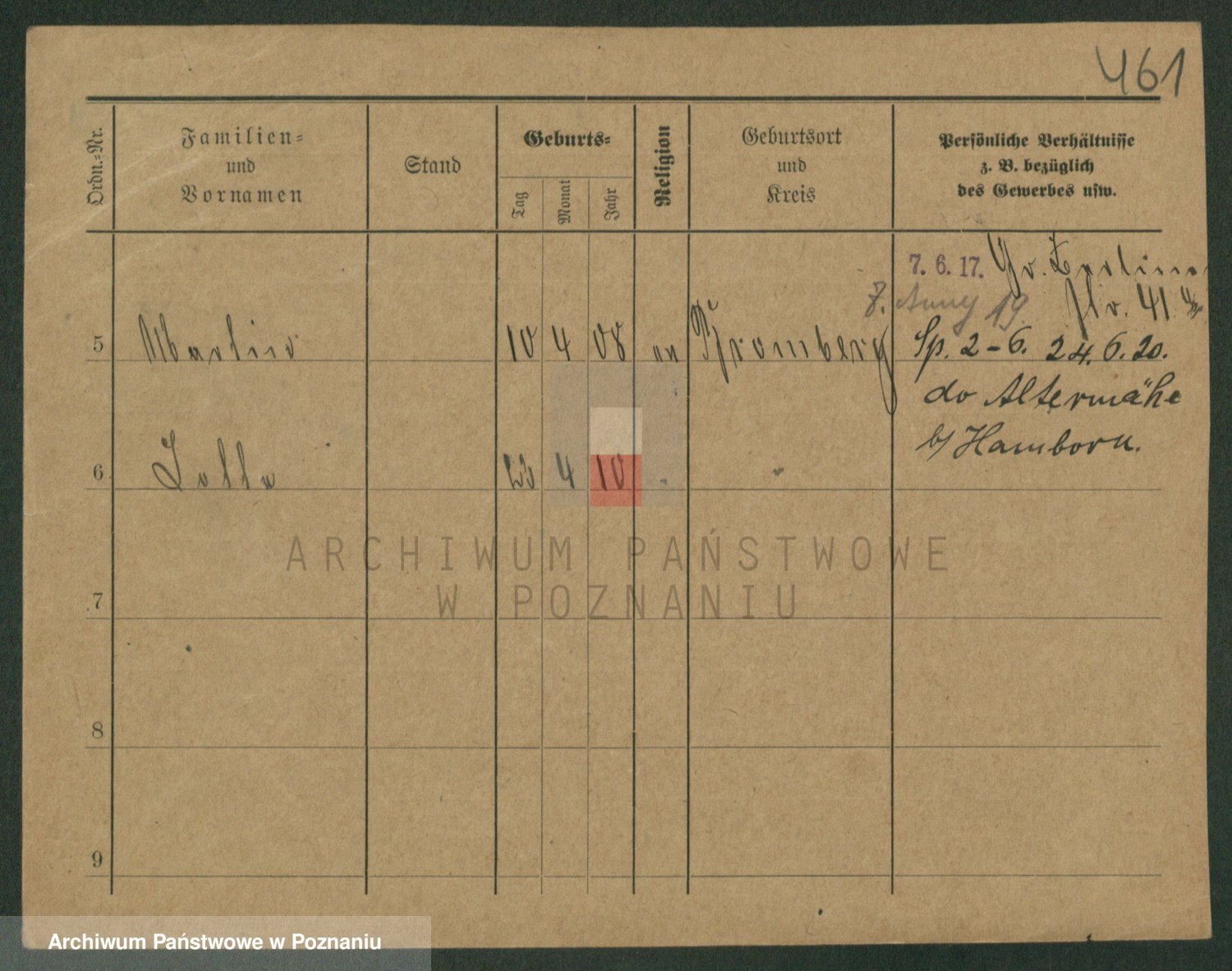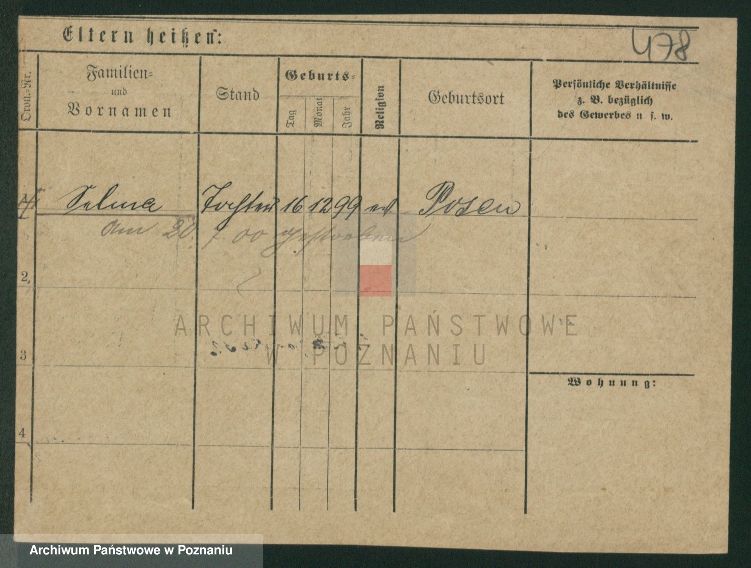 Podgląd karty osobowej dostępny jest po kliknięciu na nazwisko lub ikonkę karty. Można dokonywać powiększenia (ikony na górze) lub przechodzić między kolejnymi skanami (strzałki po bokach).