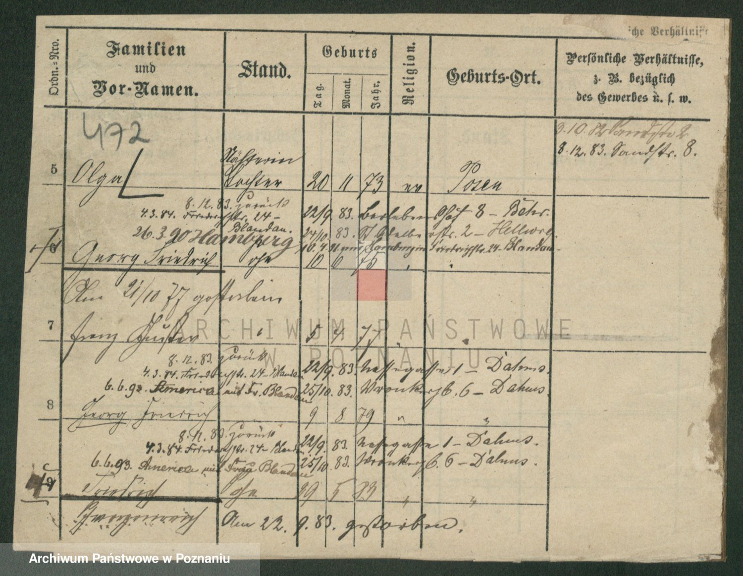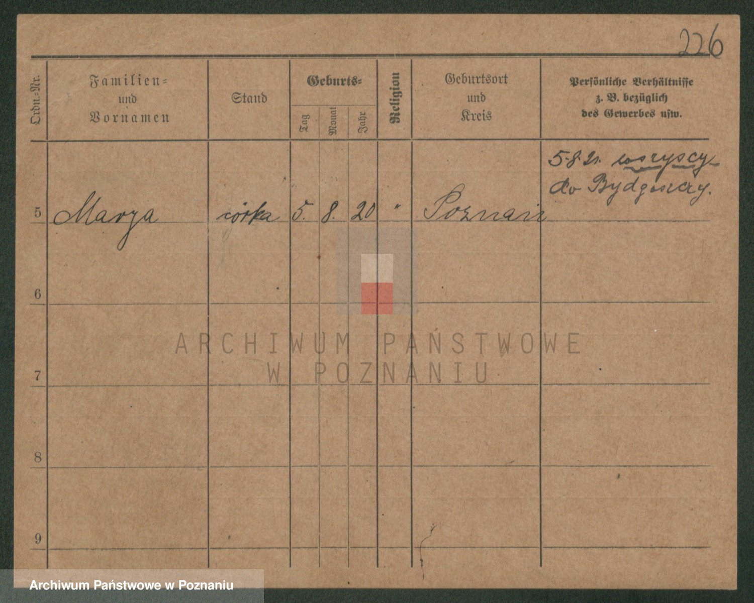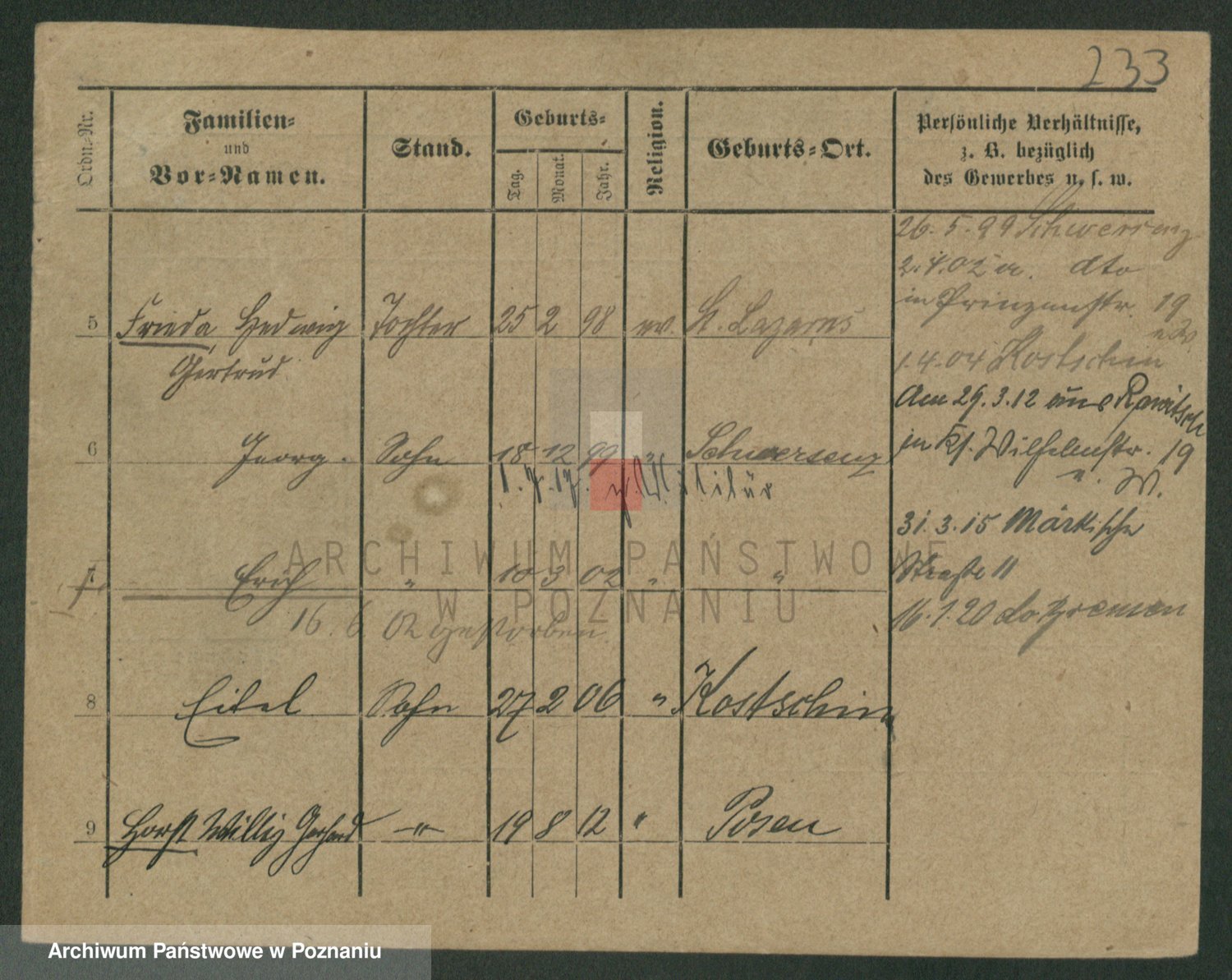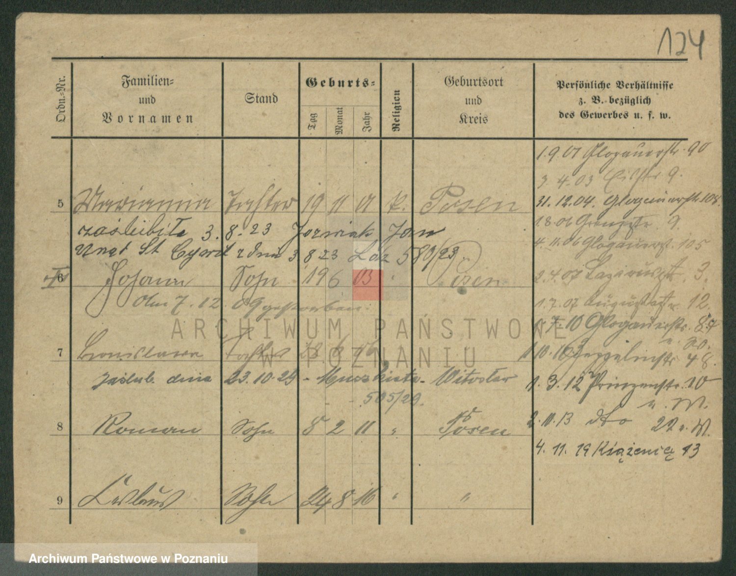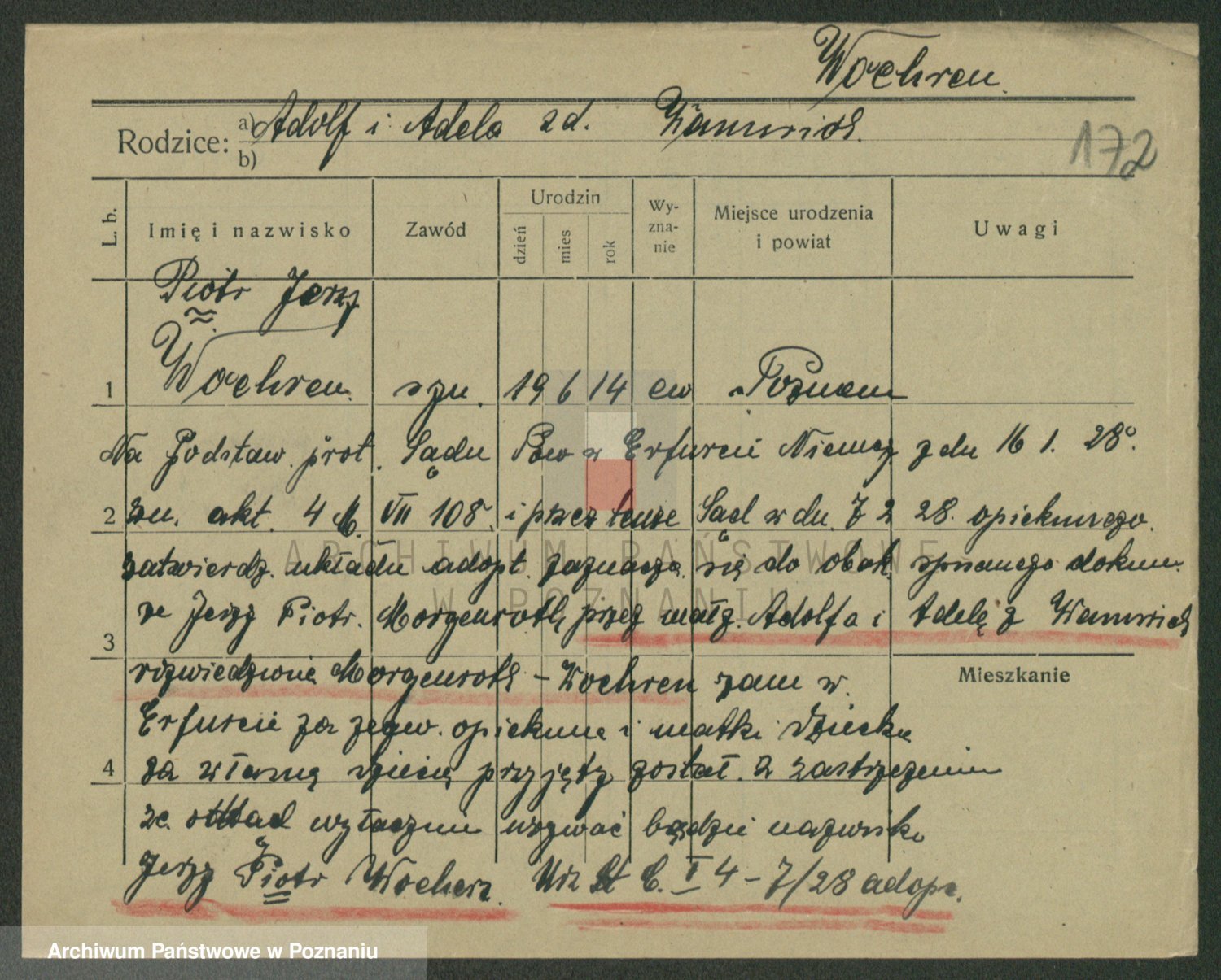 Podgląd karty osobowej dostępny jest po kliknięciu na nazwisko lub ikonkę karty. Można dokonywać powiększenia (ikony na górze) lub przechodzić między kolejnymi skanami (strzałki po bokach).
