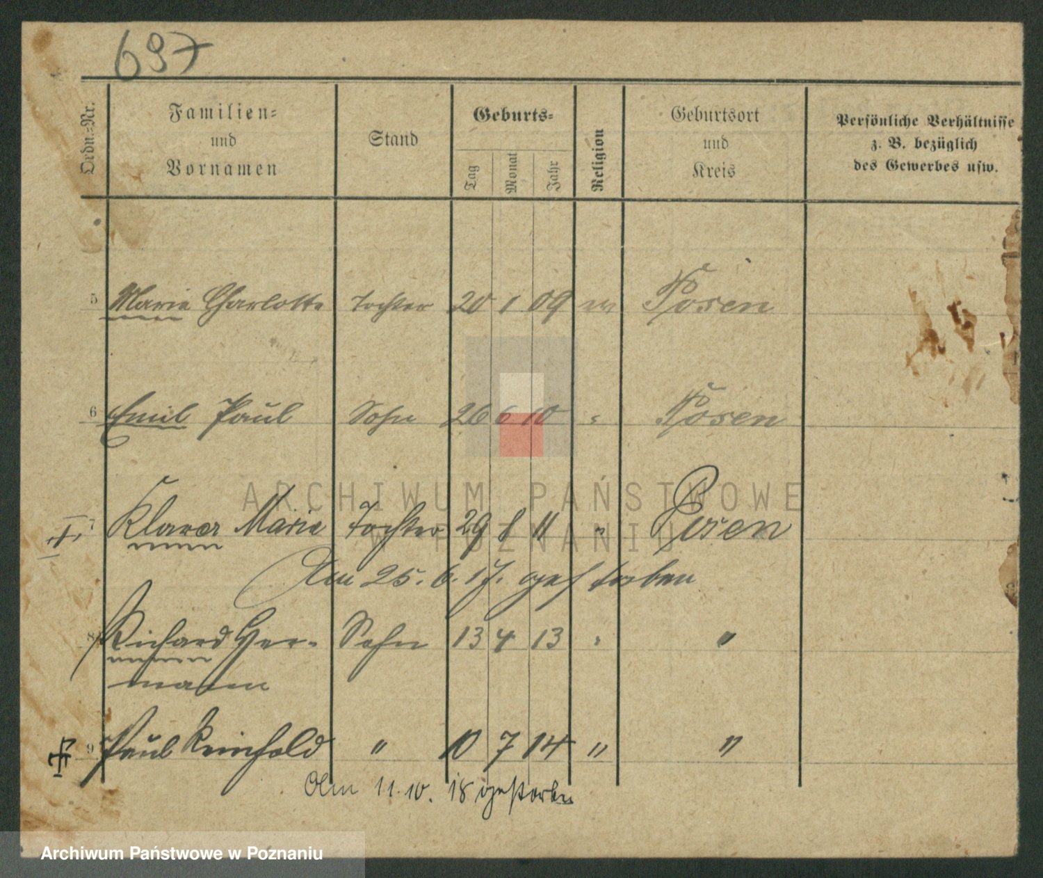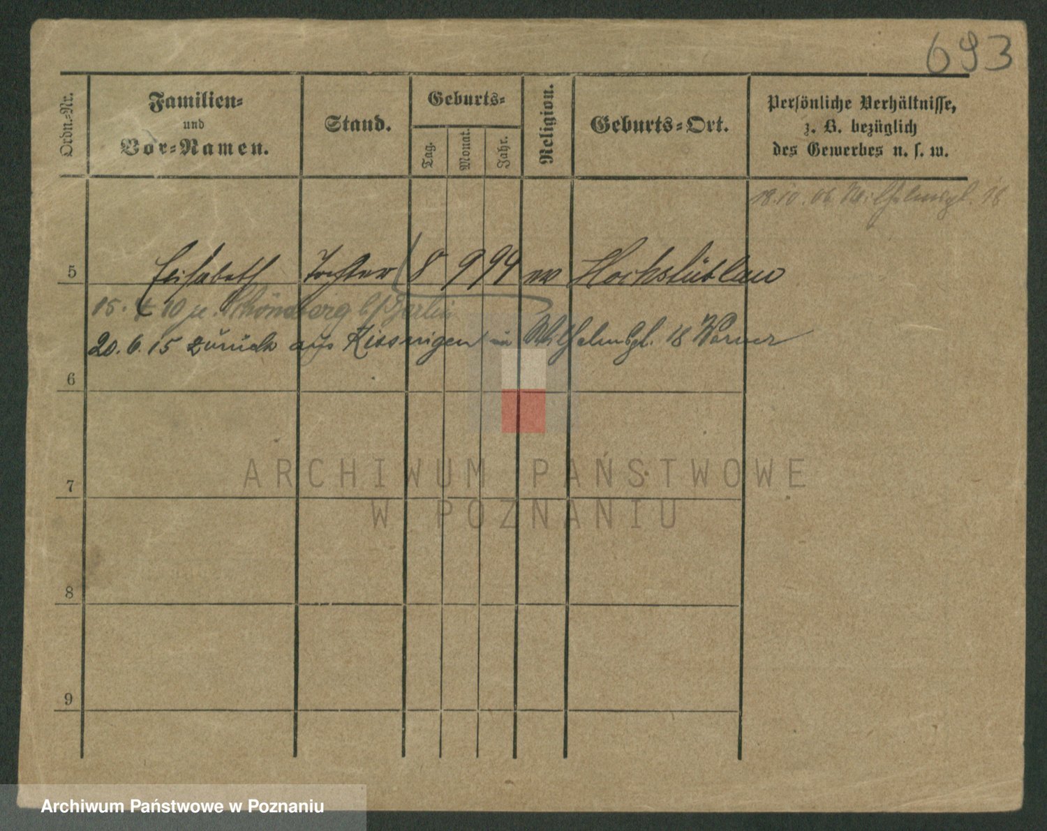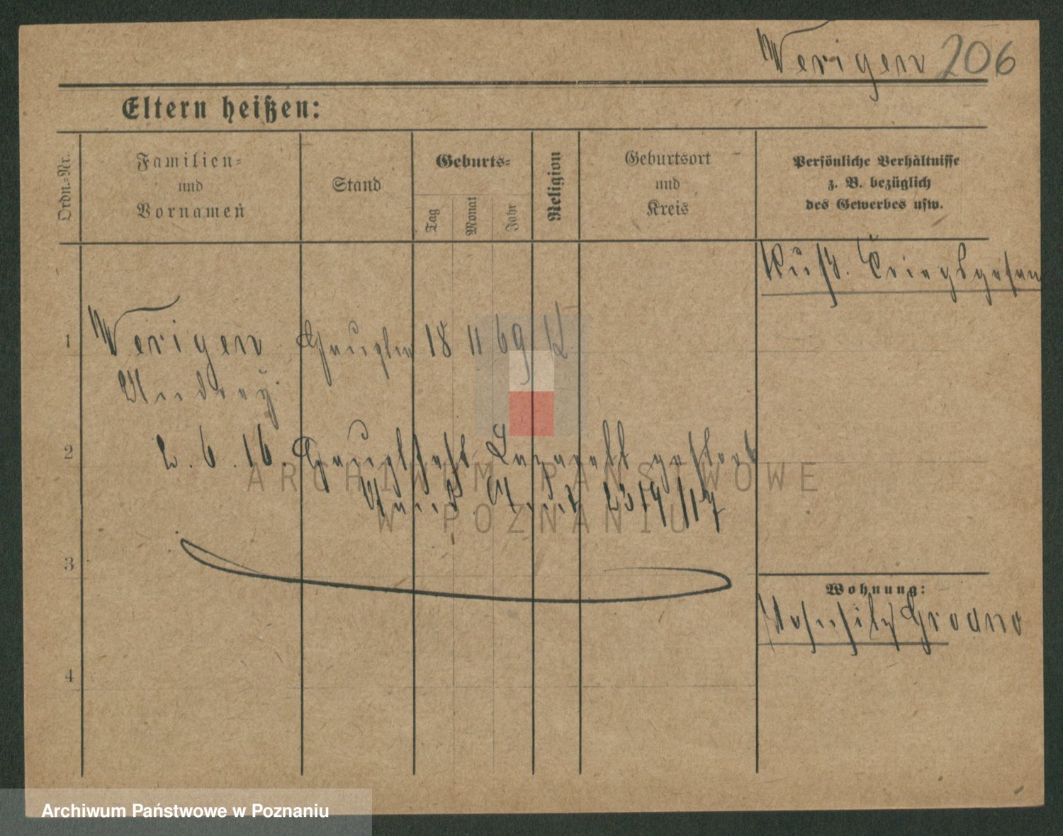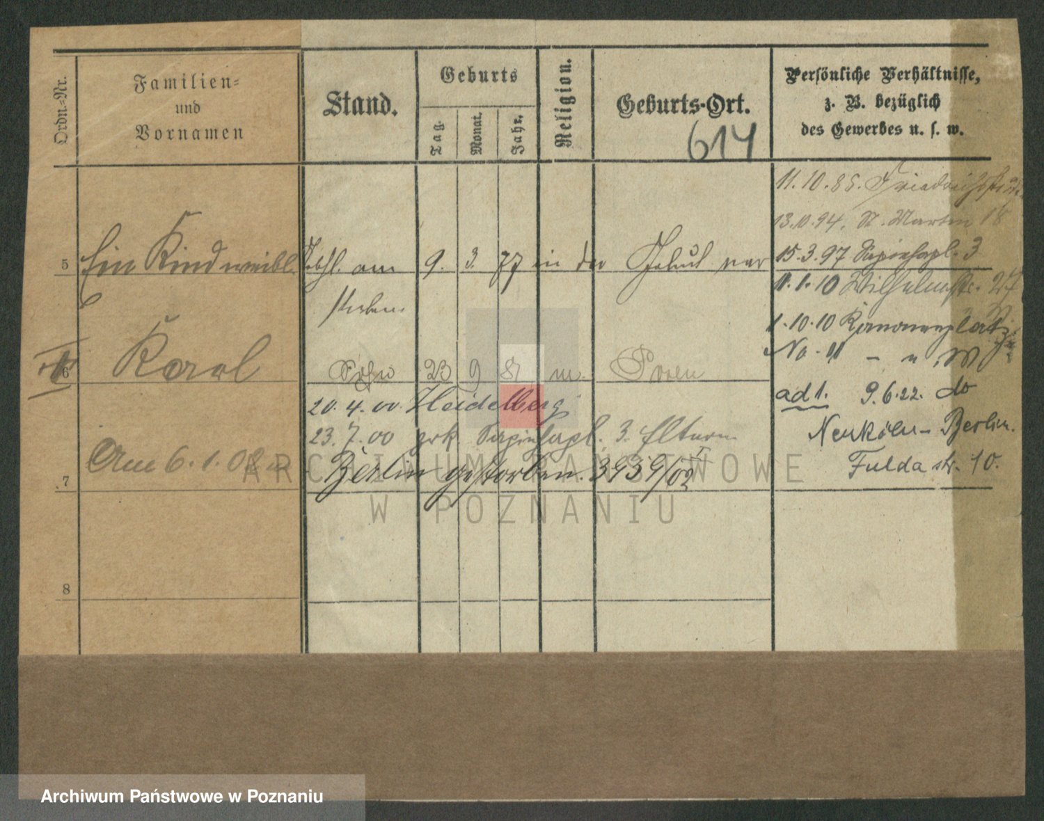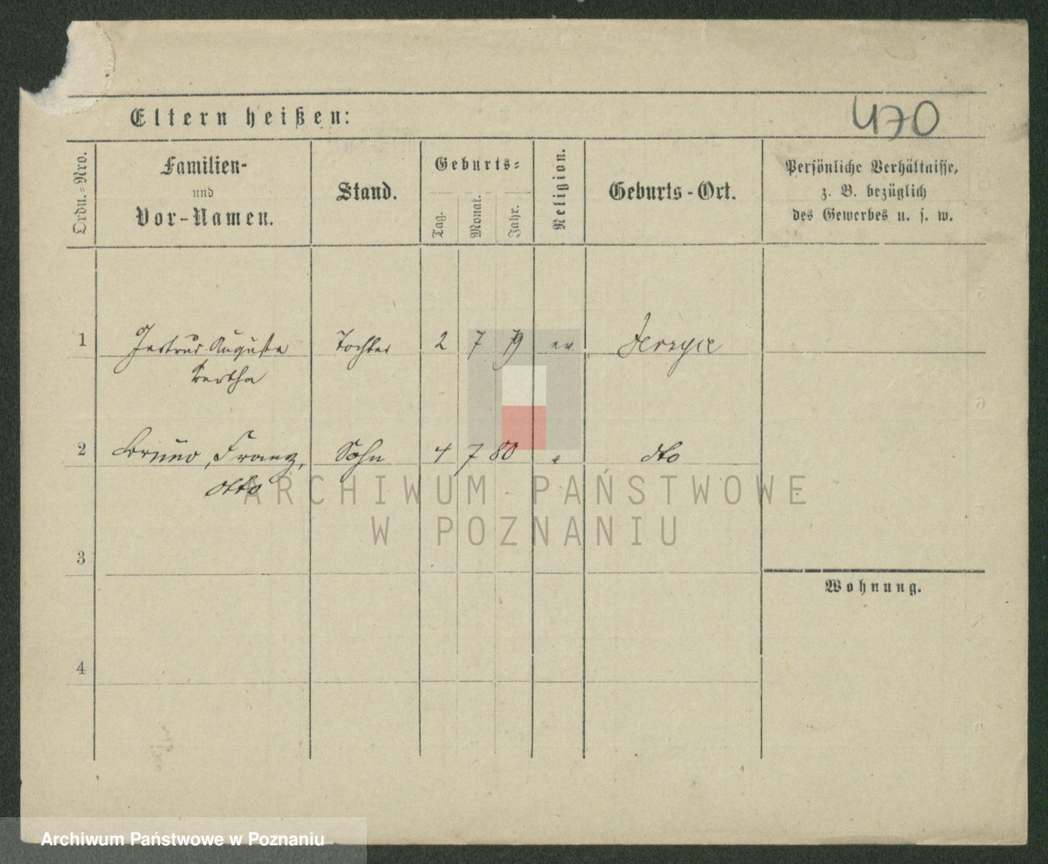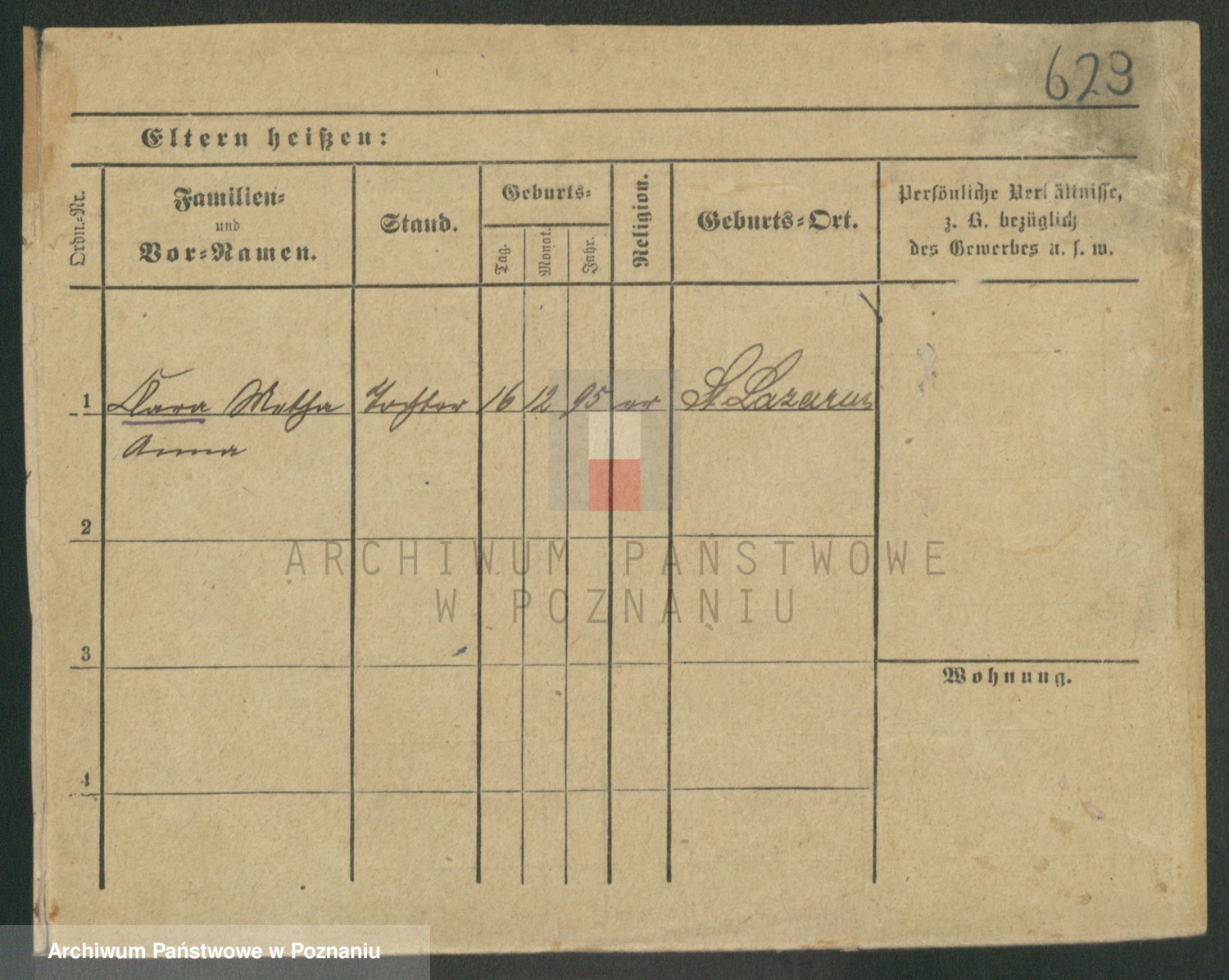 Podgląd karty osobowej dostępny jest po kliknięciu na nazwisko lub ikonkę karty. Można dokonywać powiększenia (ikony na górze) lub przechodzić między kolejnymi skanami (strzałki po bokach).