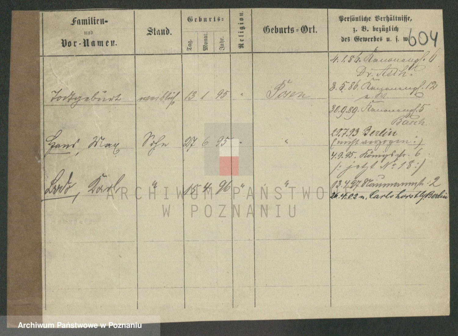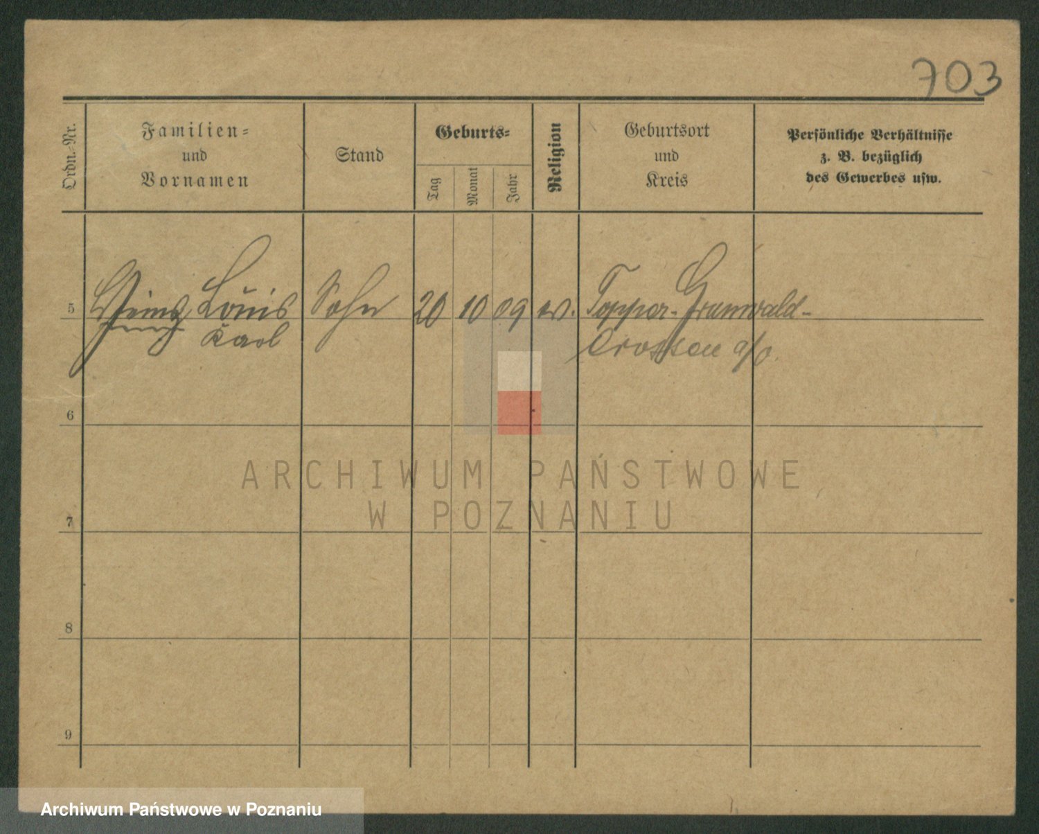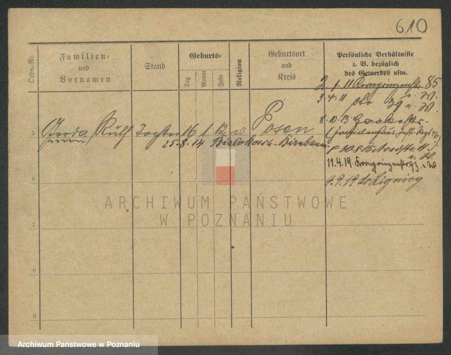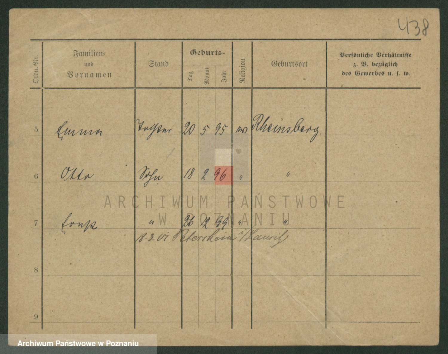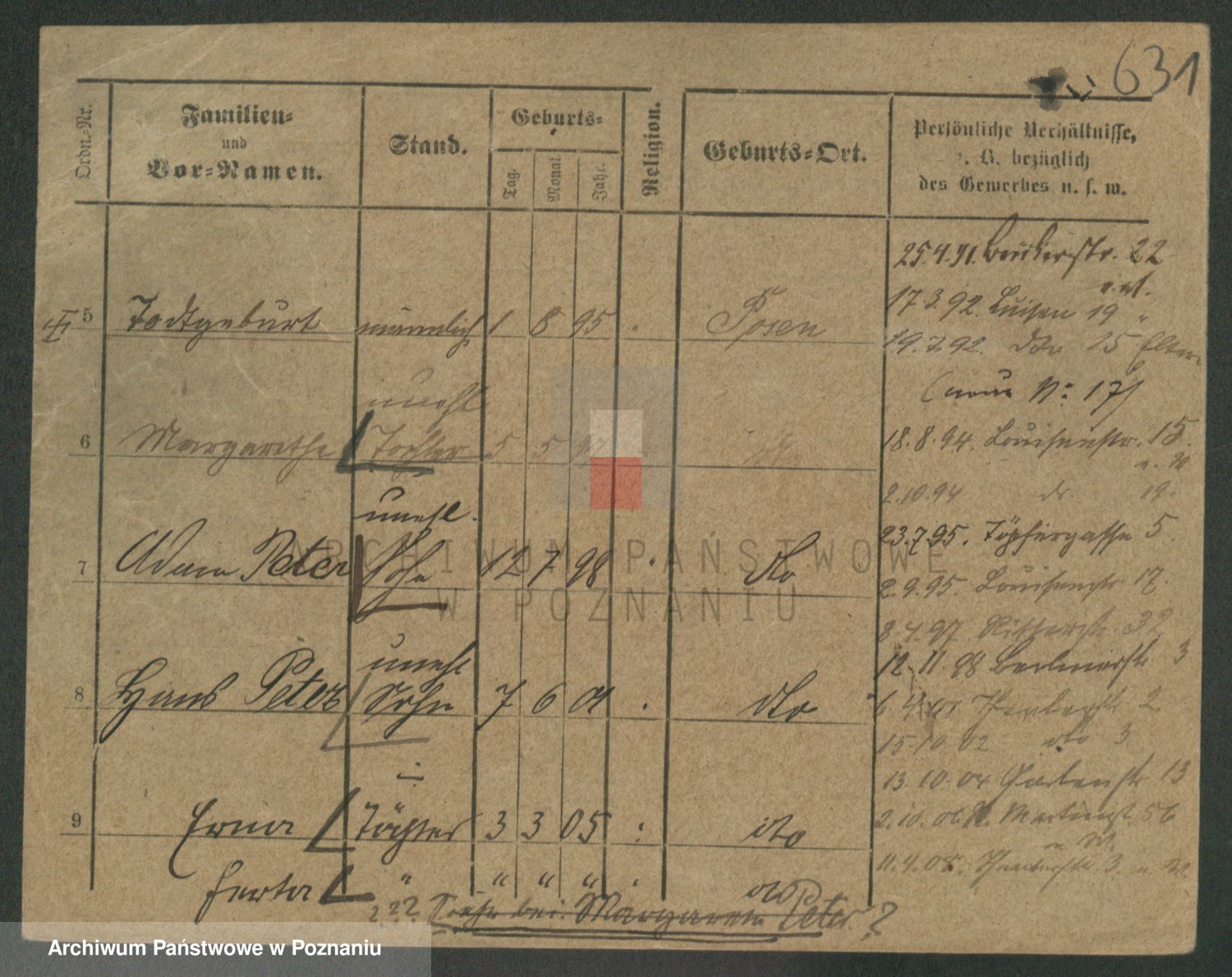 Podgląd karty osobowej dostępny jest po kliknięciu na nazwisko lub ikonkę karty. Można dokonywać powiększenia (ikony na górze) lub przechodzić między kolejnymi skanami (strzałki po bokach).