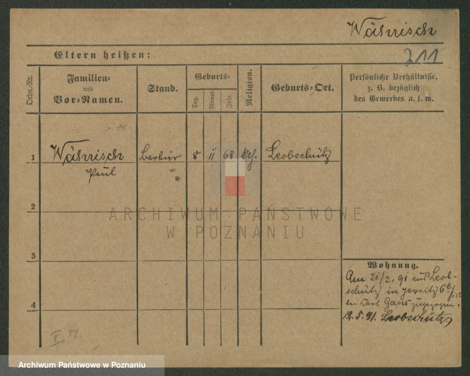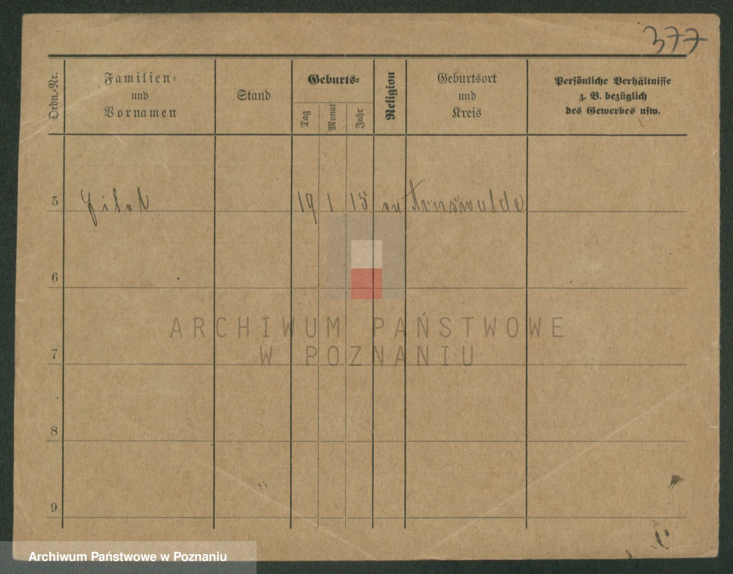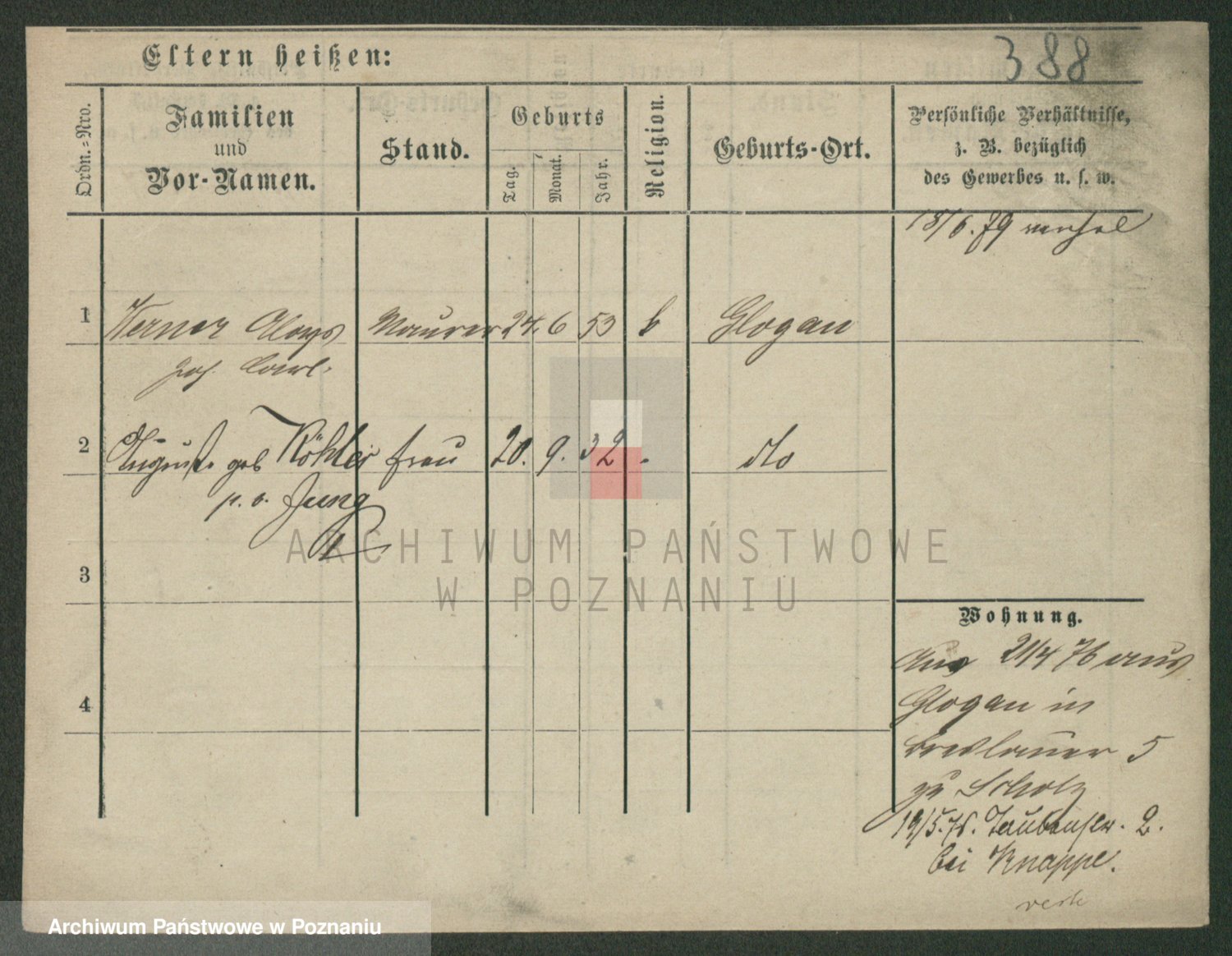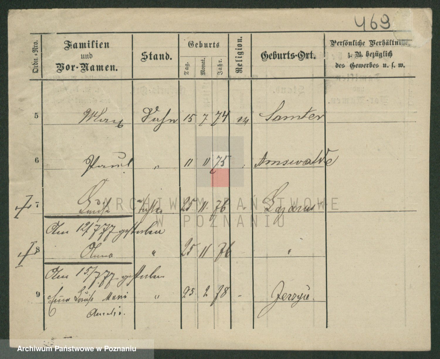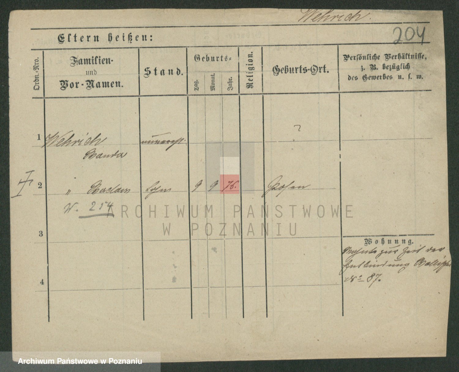 Podgląd karty osobowej dostępny jest po kliknięciu na nazwisko lub ikonkę karty. Można dokonywać powiększenia (ikony na górze) lub przechodzić między kolejnymi skanami (strzałki po bokach).