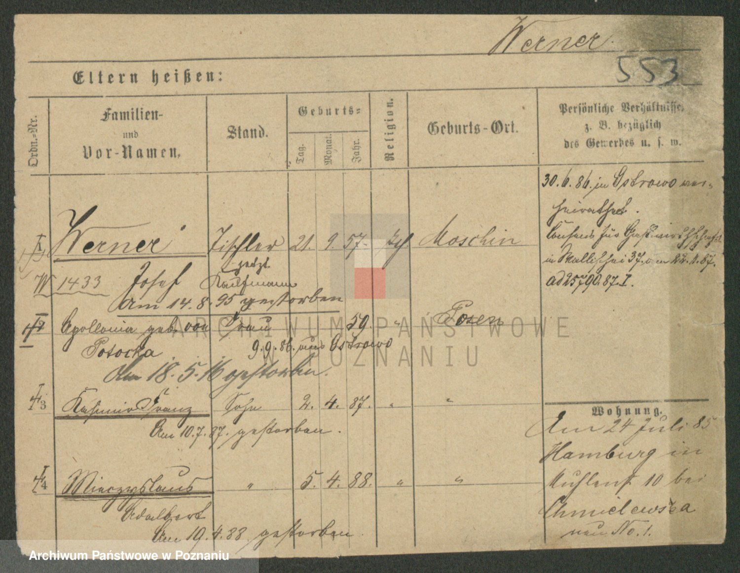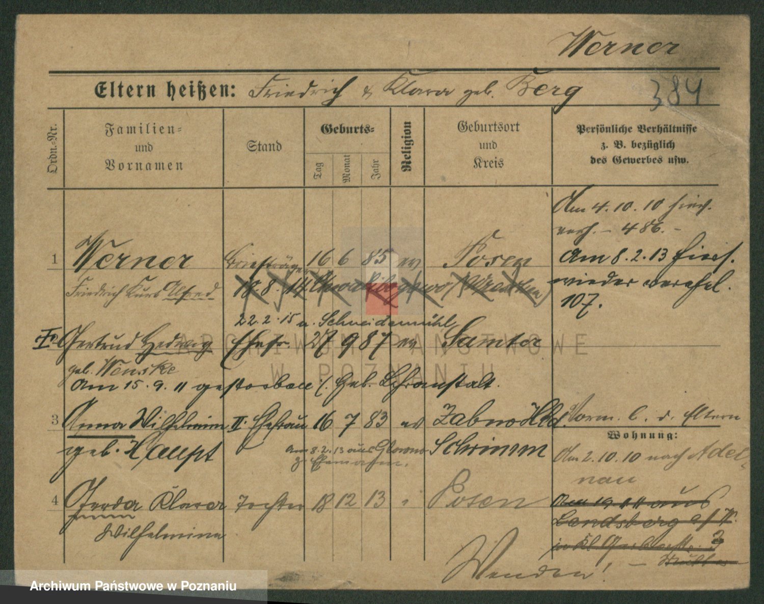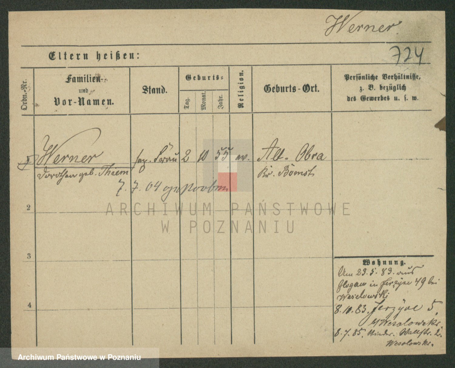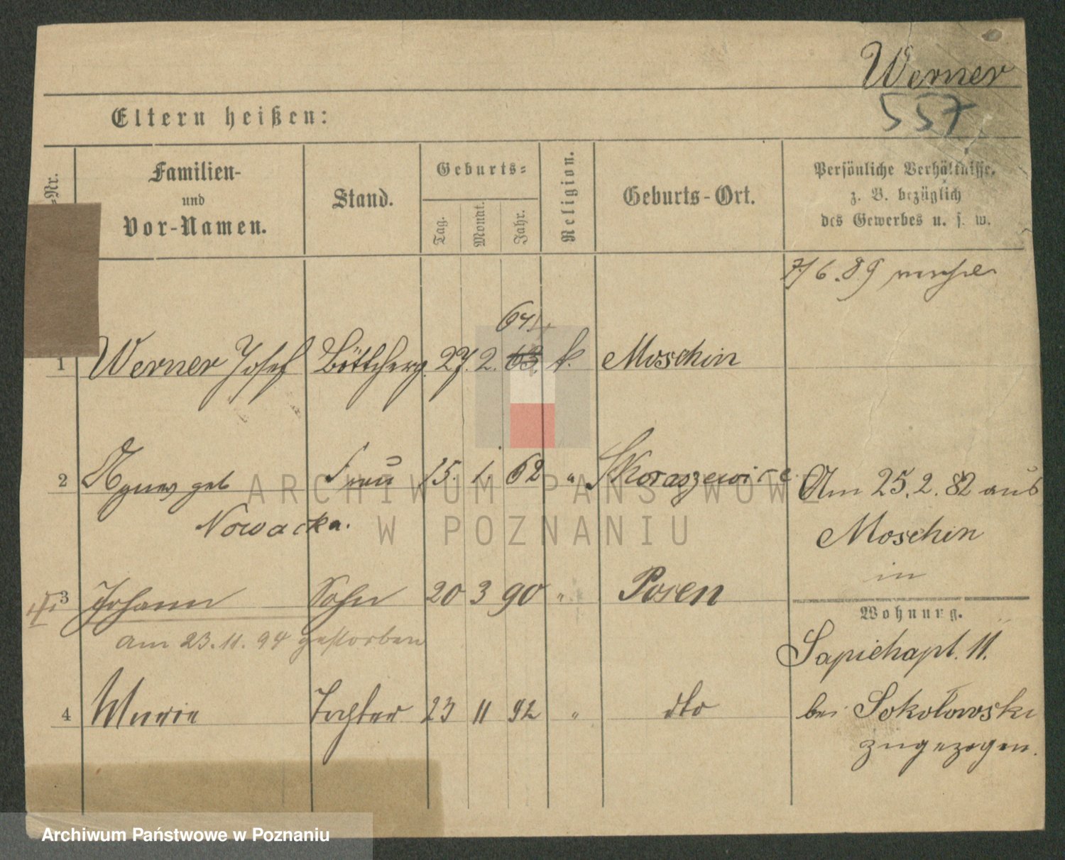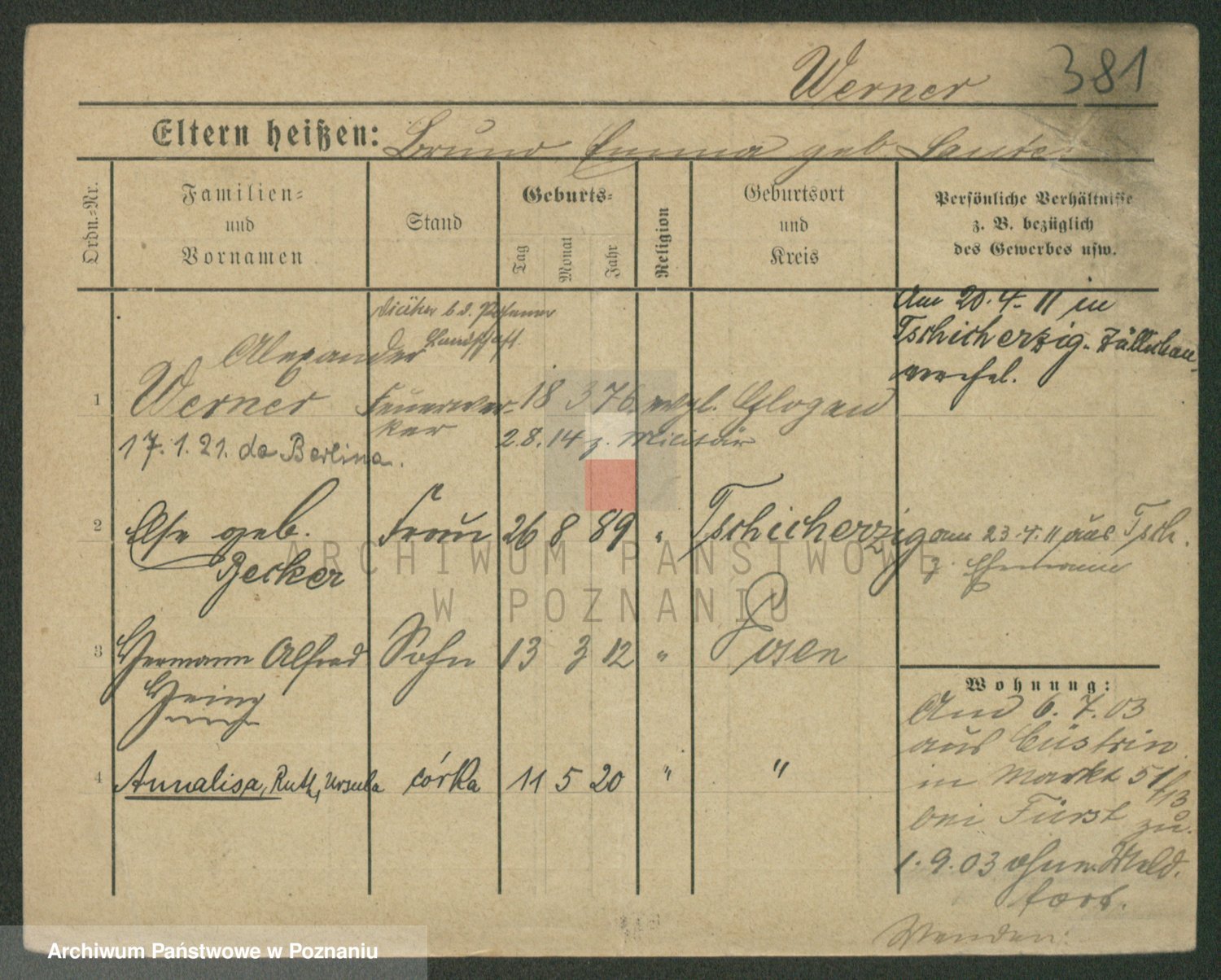 Werner z d. Moritz, Alma