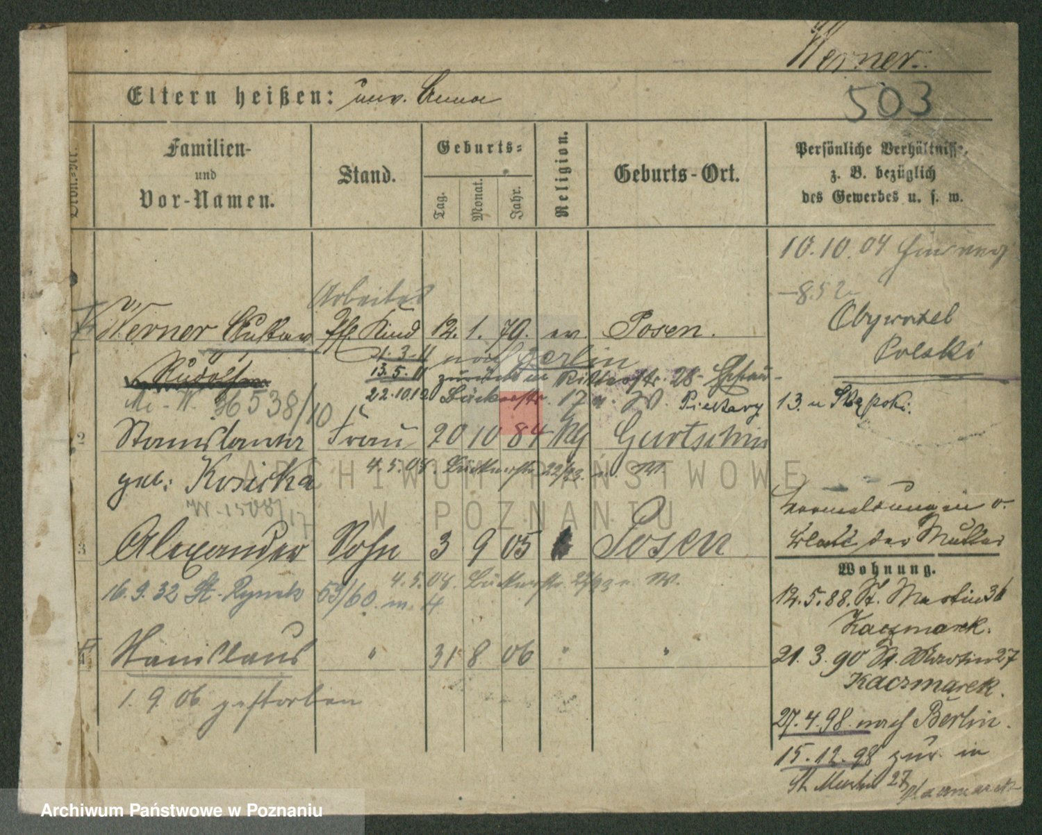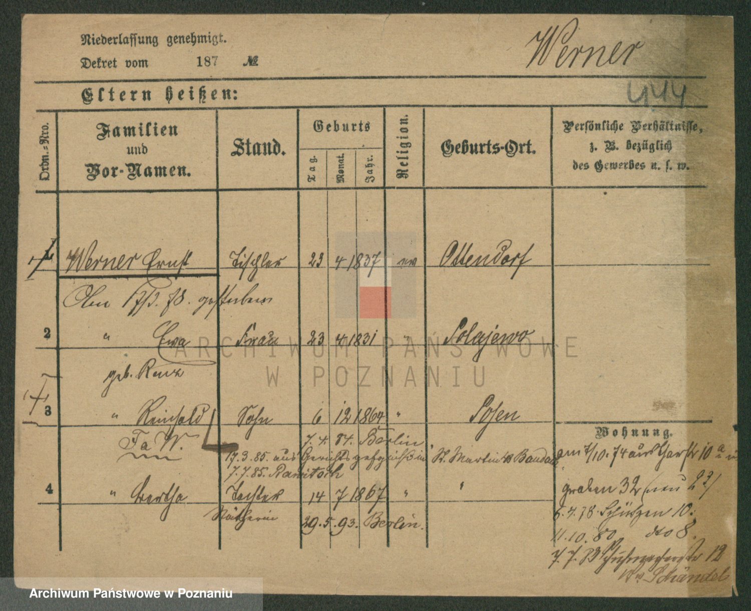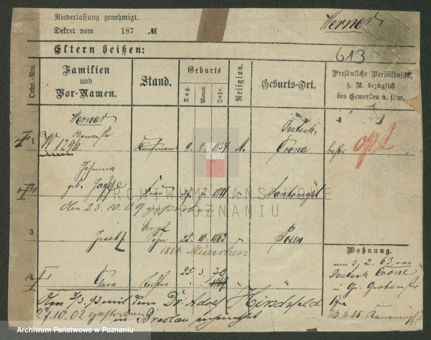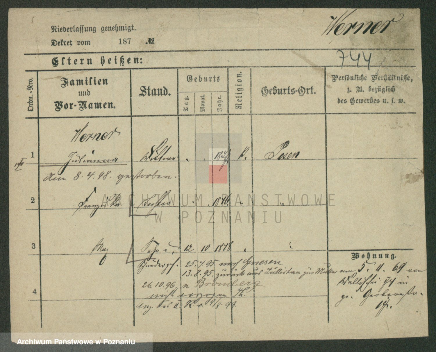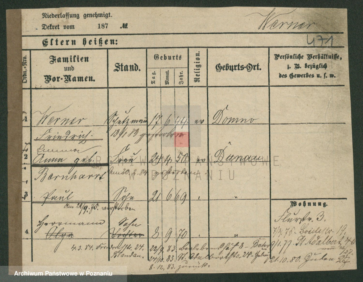 Werner z d. Moritz, Alma