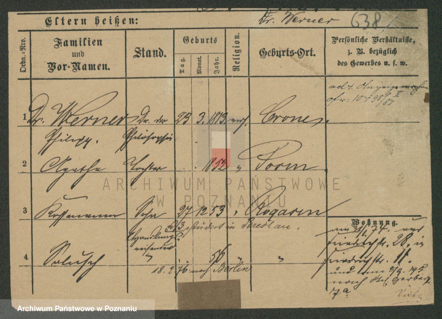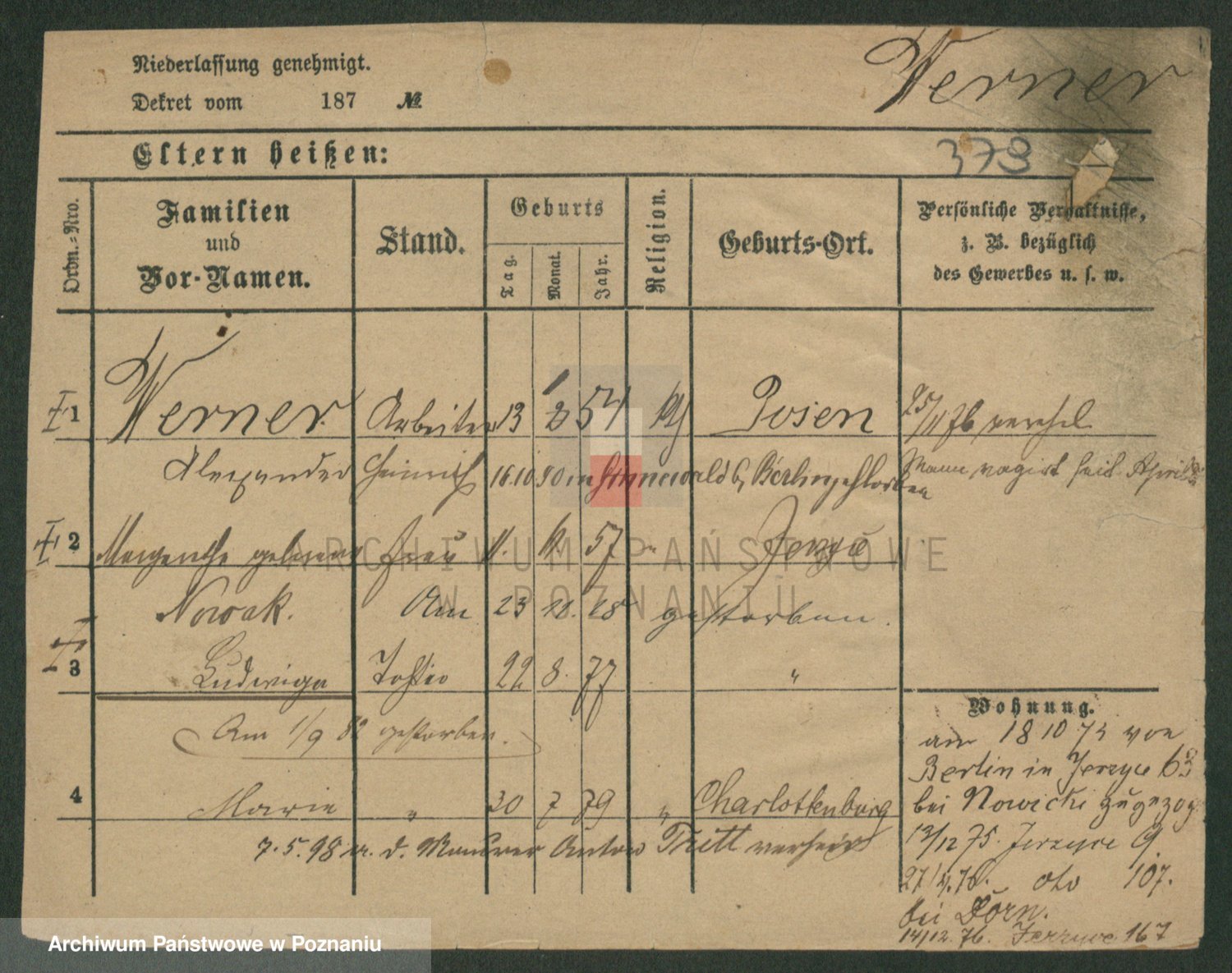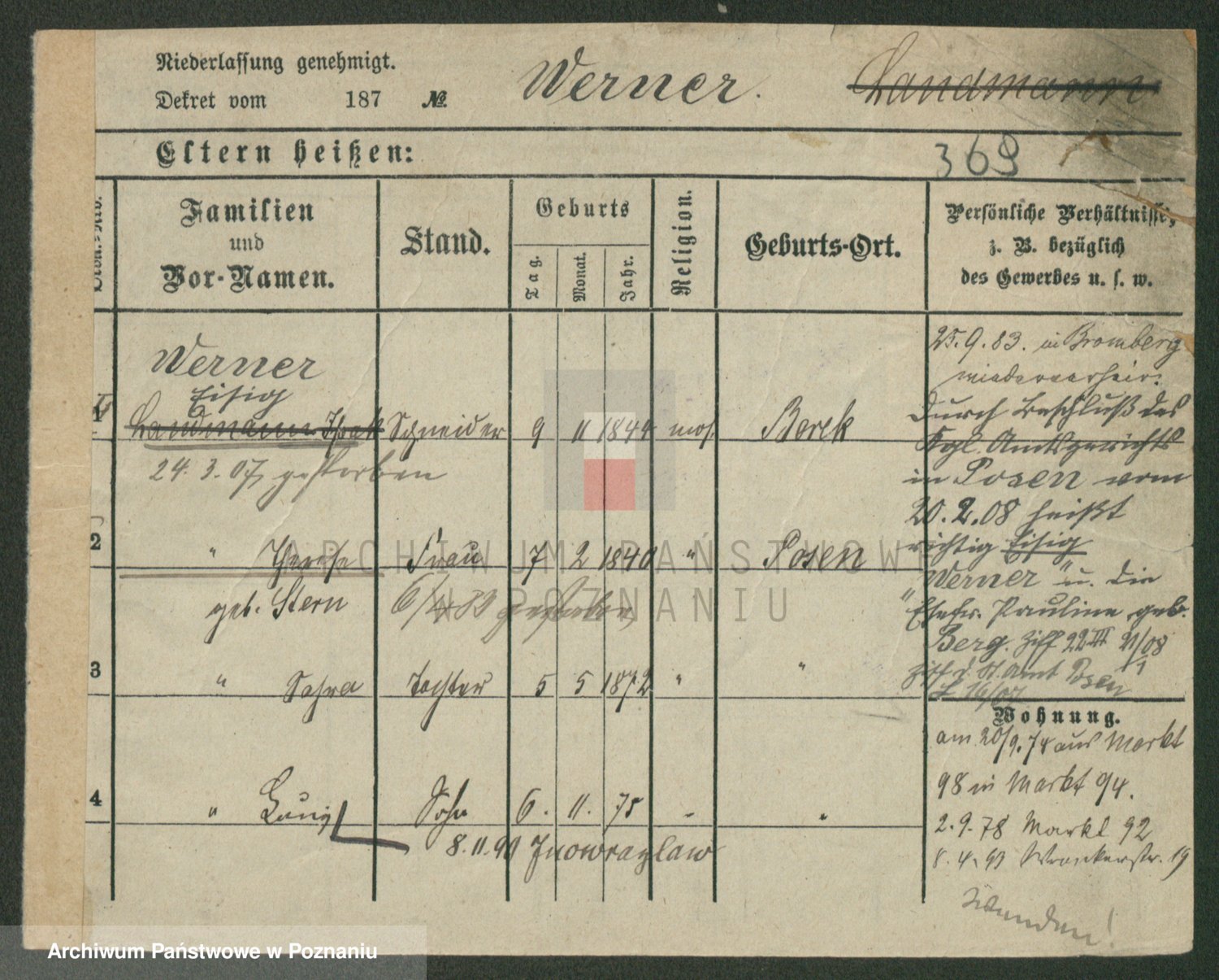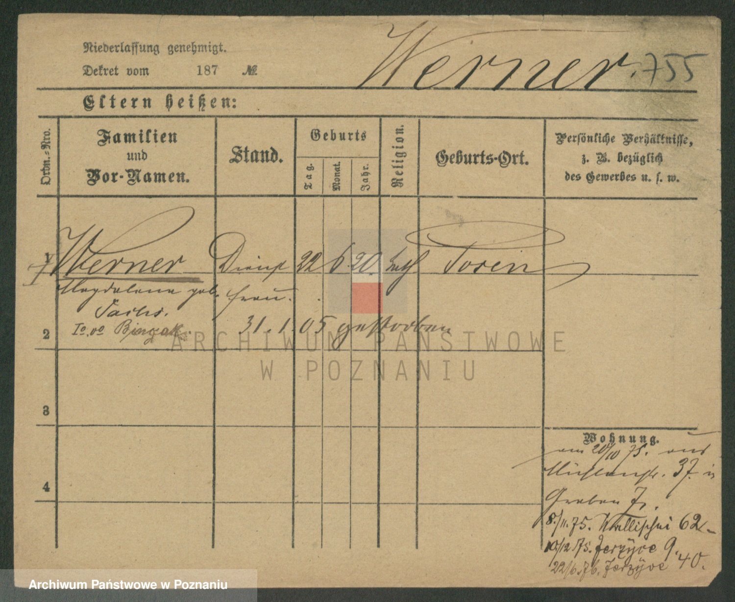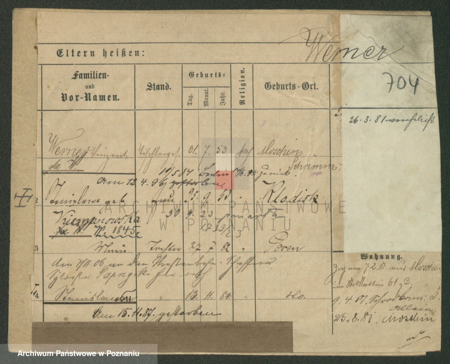 Werner z d. Moritz, Alma
