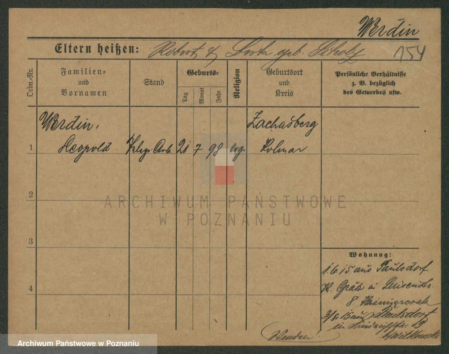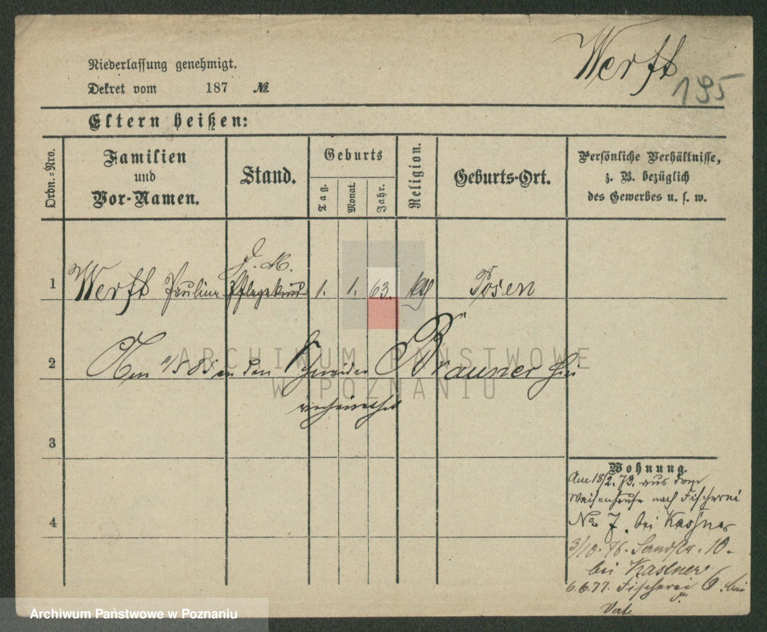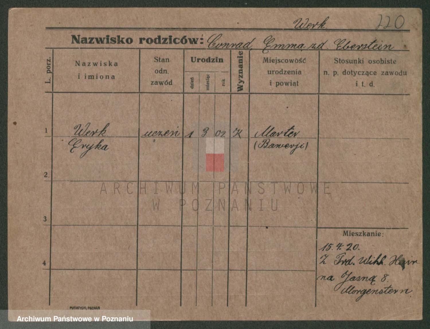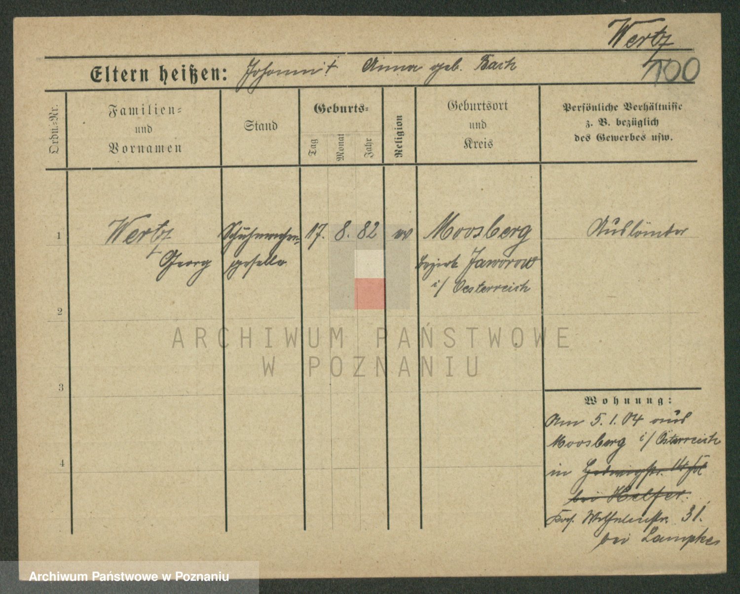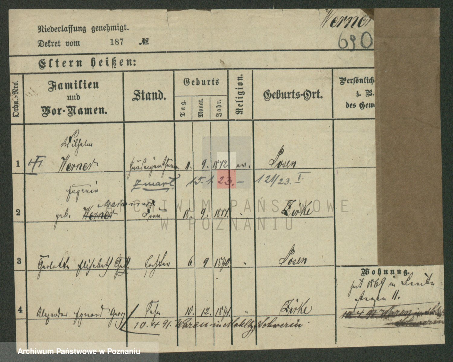 Werner z d. Moritz, Alma