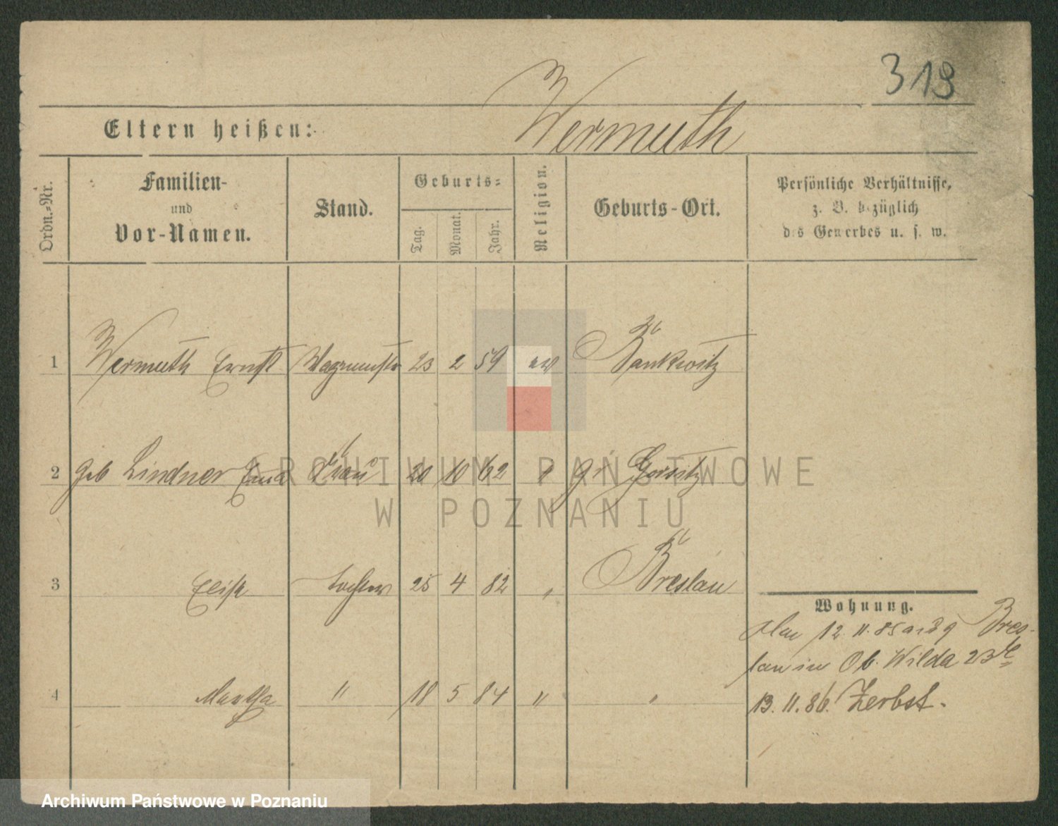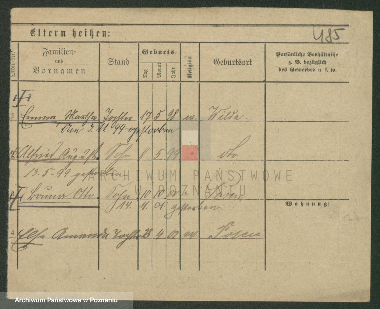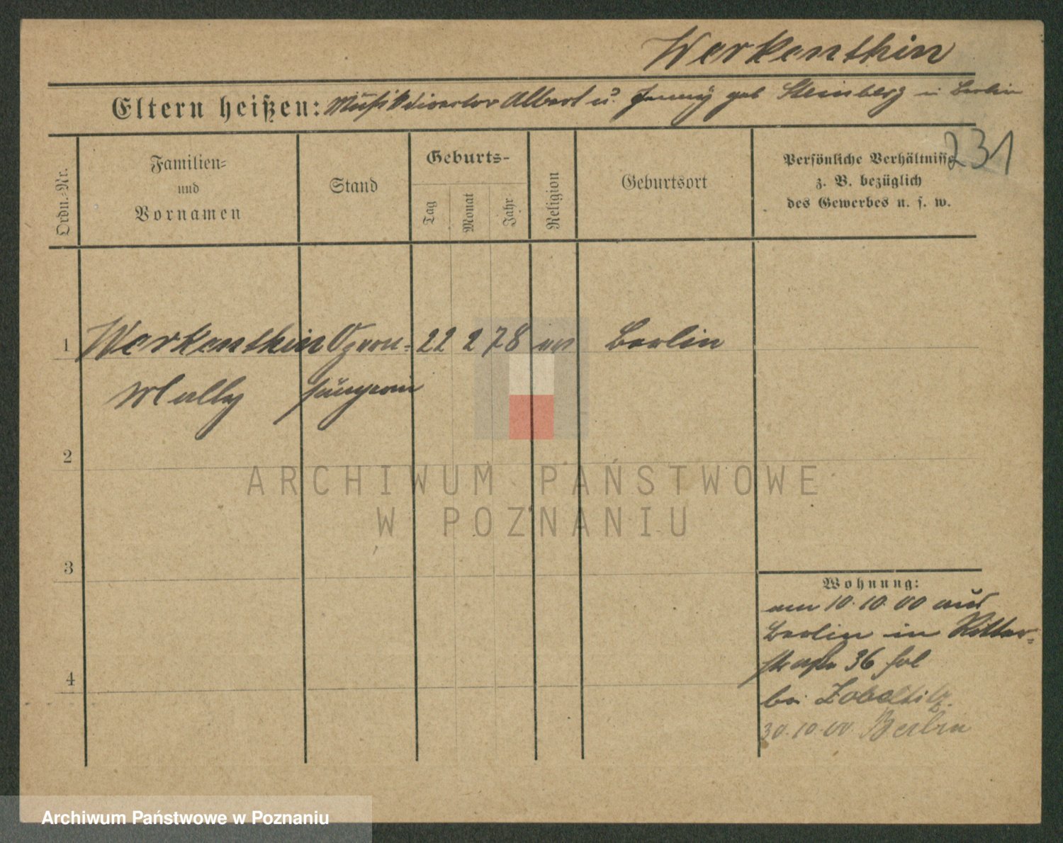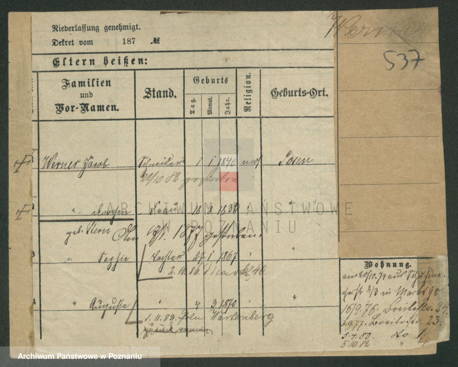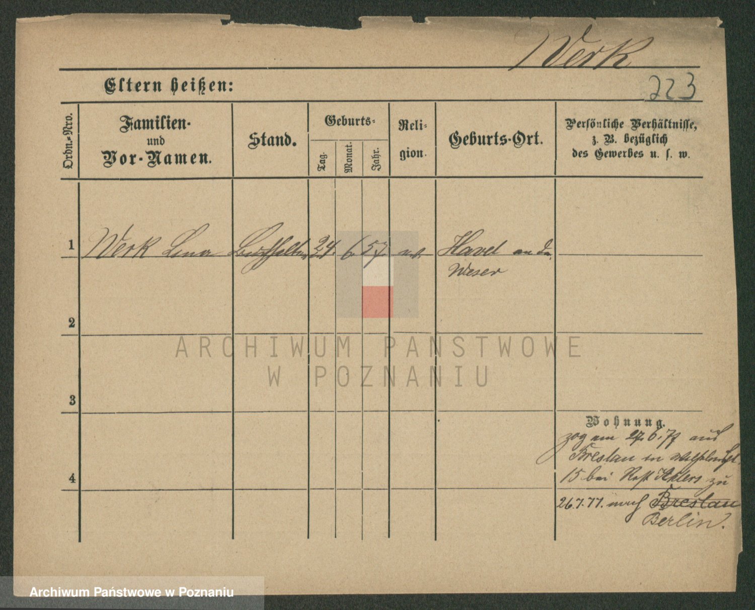 Werner z d. Moritz, Alma
