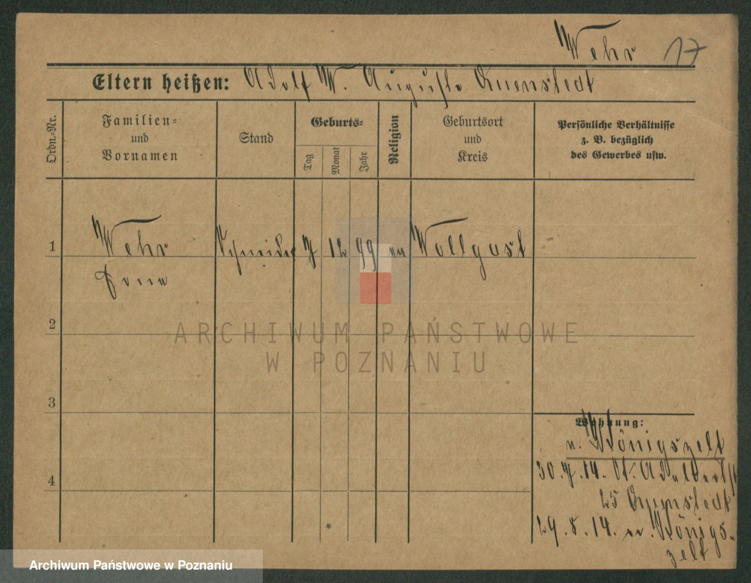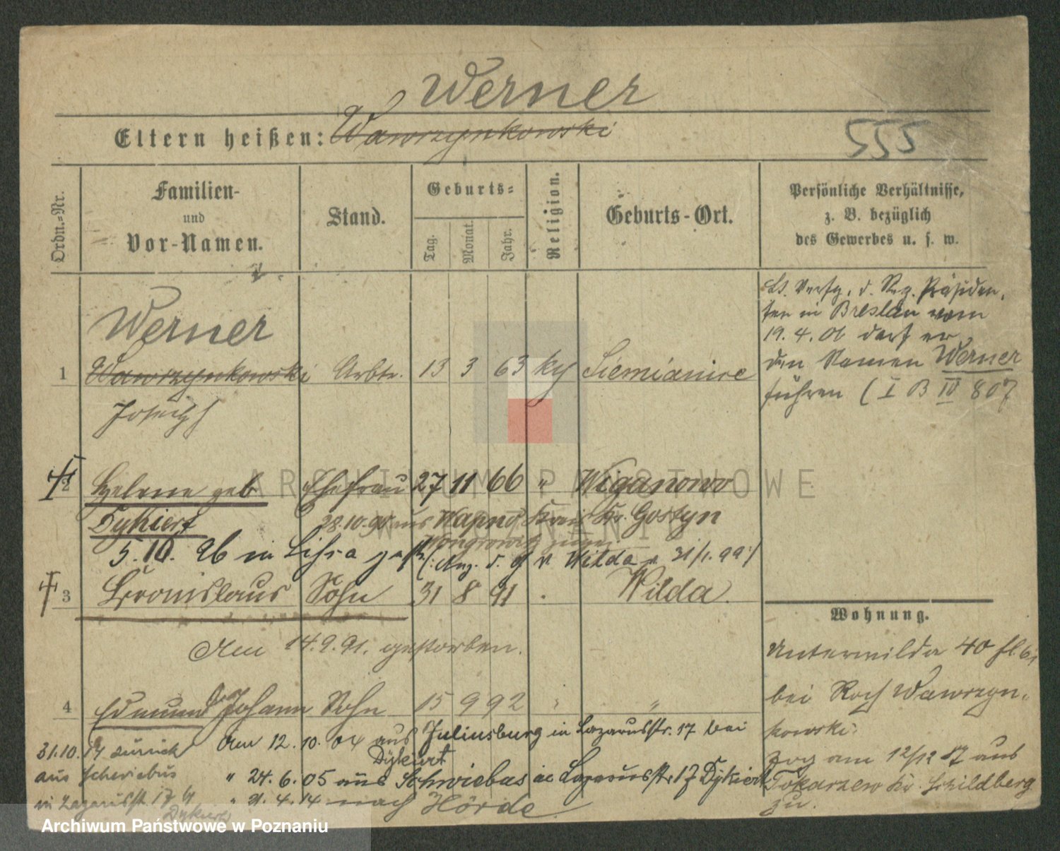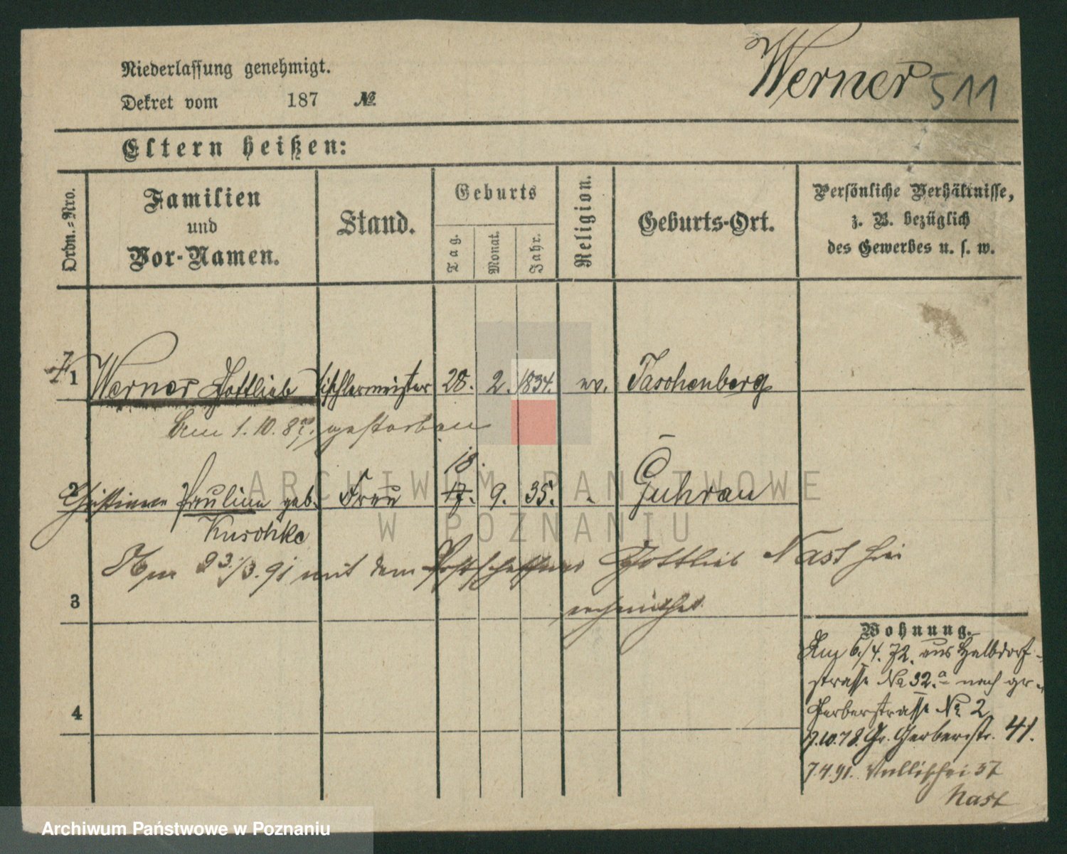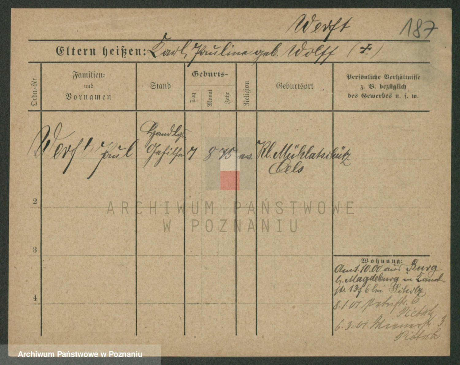 Werner z d. Zaft, Wilhelmine