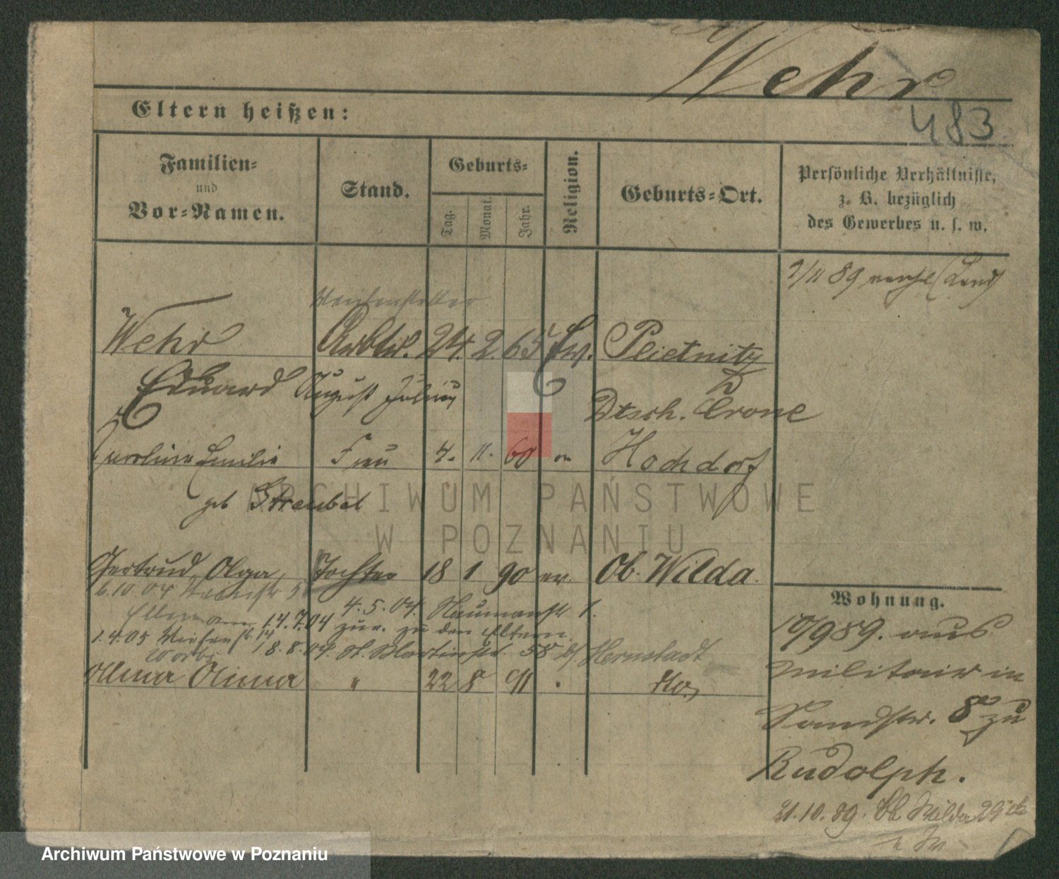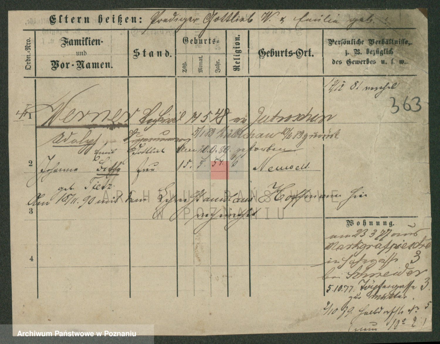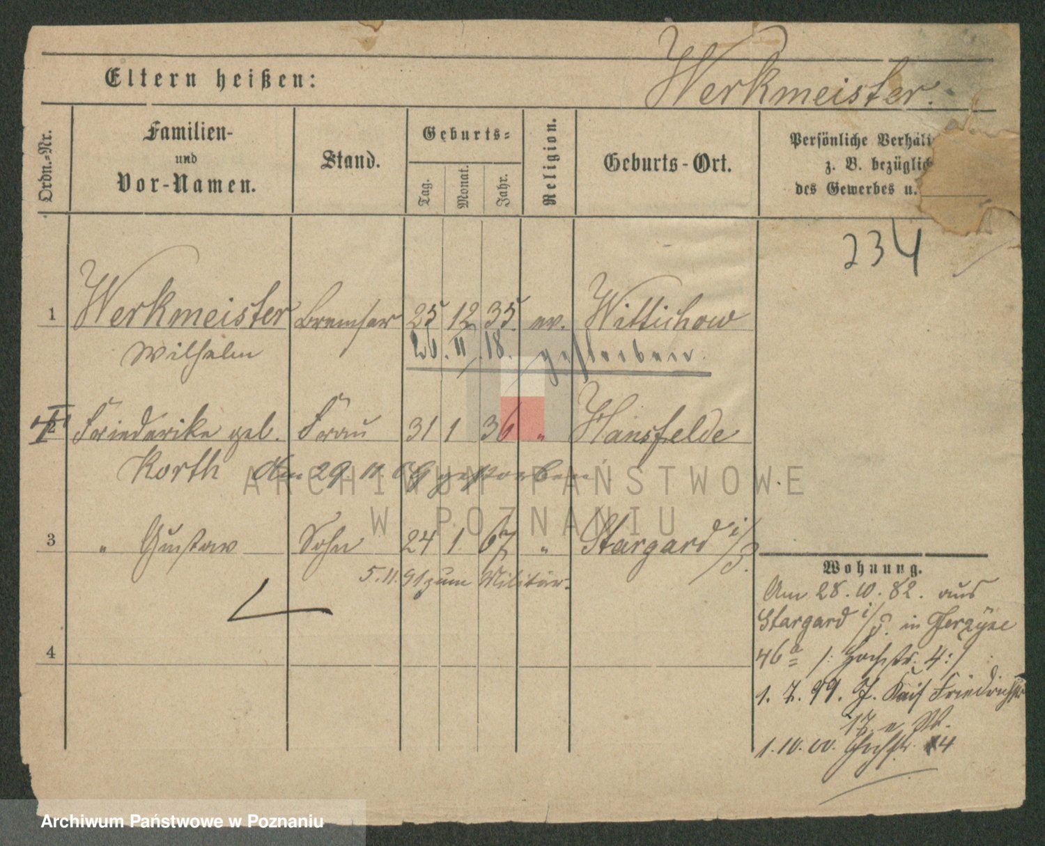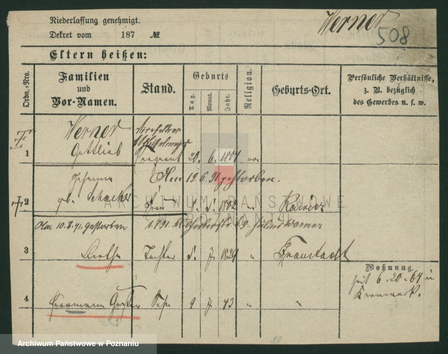 Werner z d. Zaft, Wilhelmine