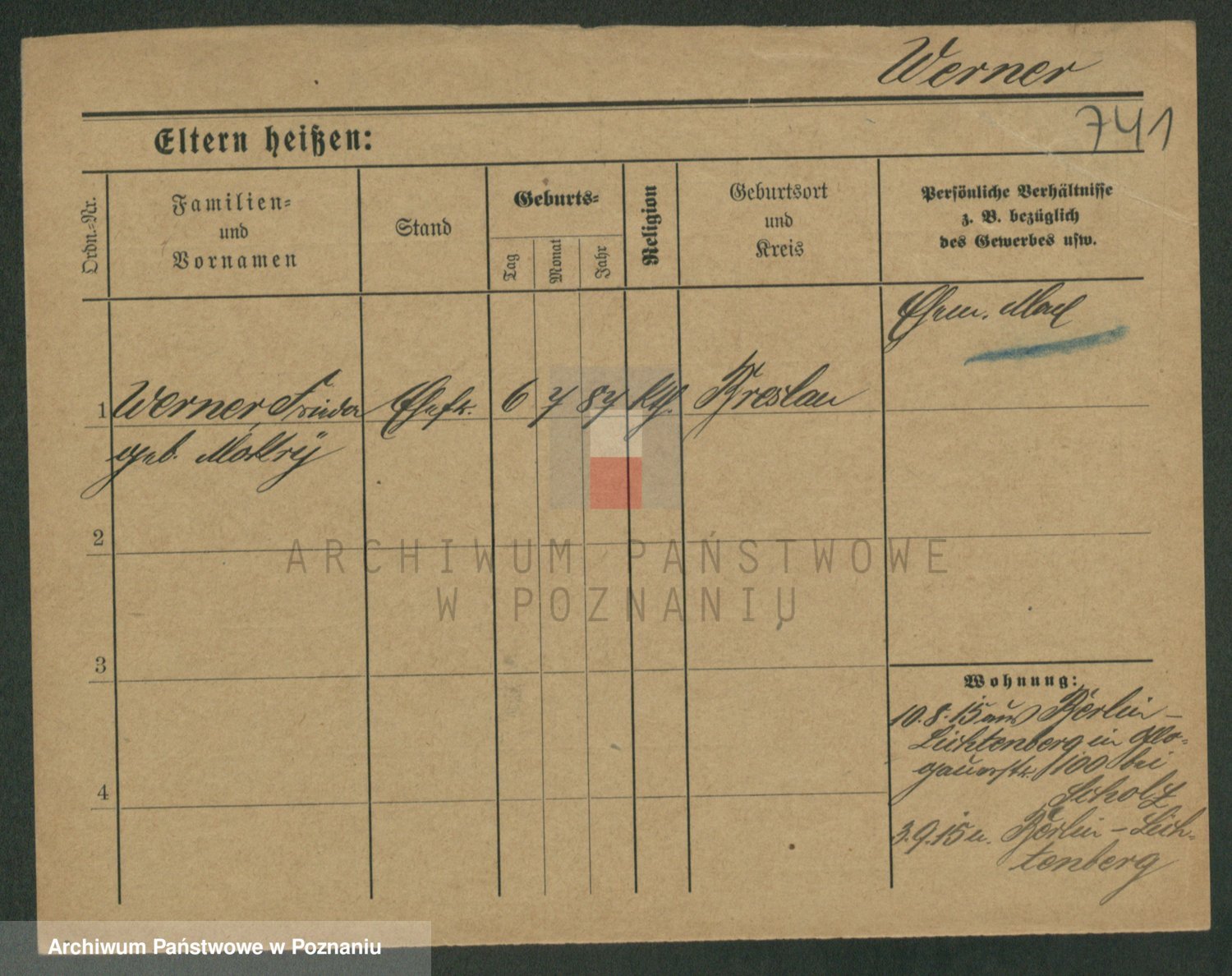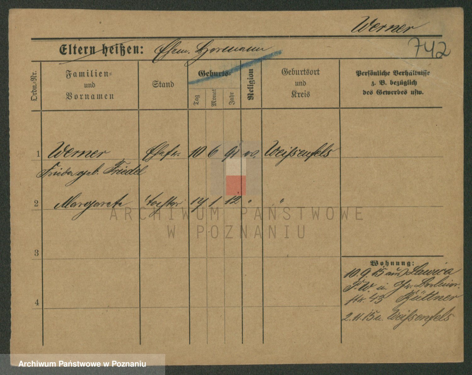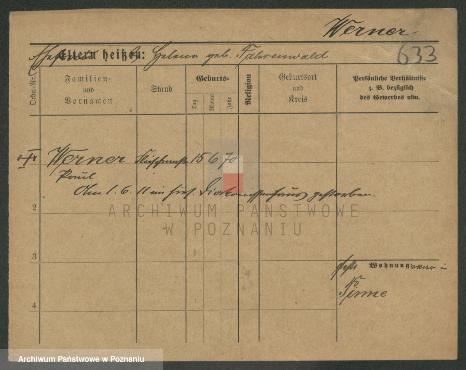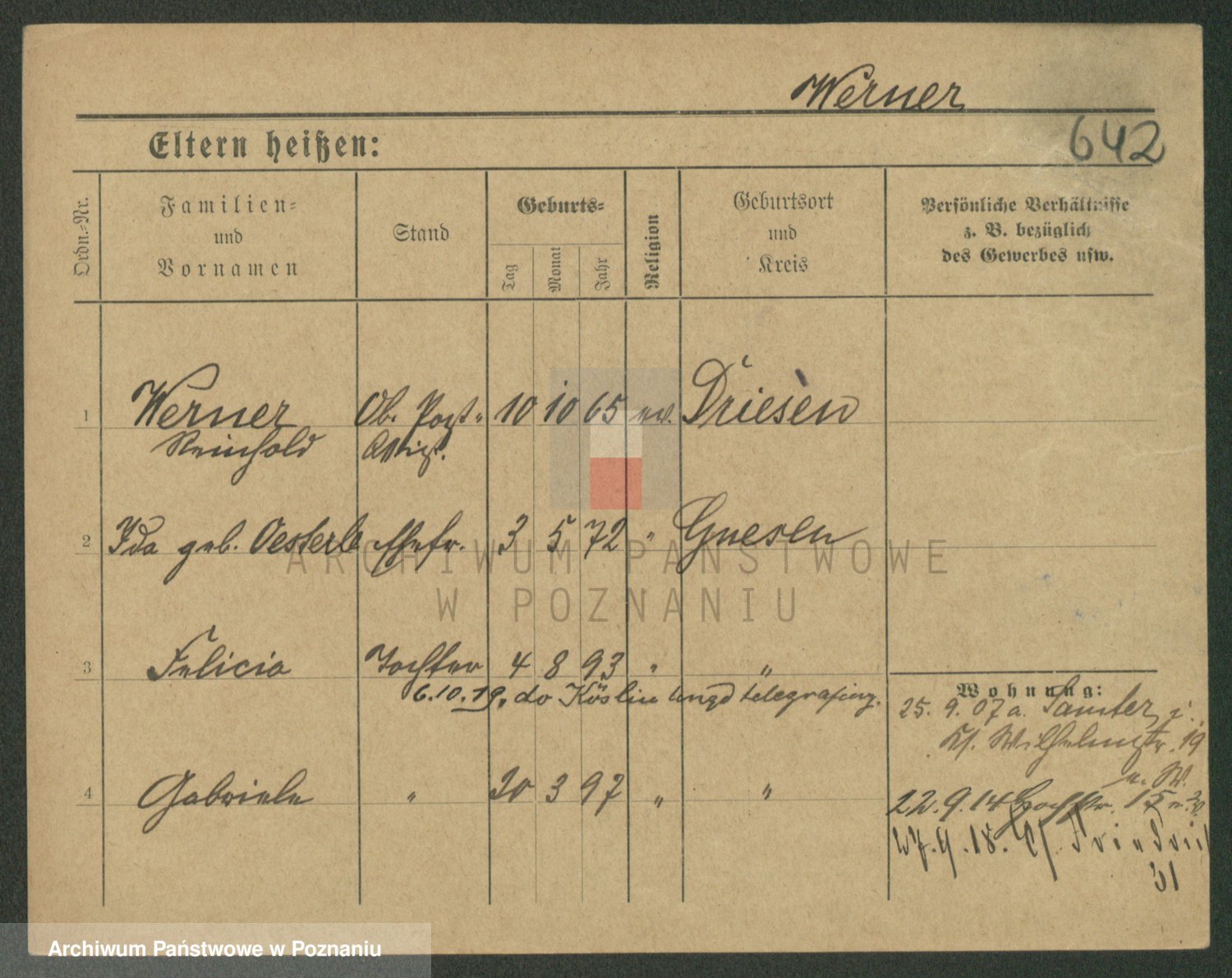 Werner z d. Mokry, Frieda