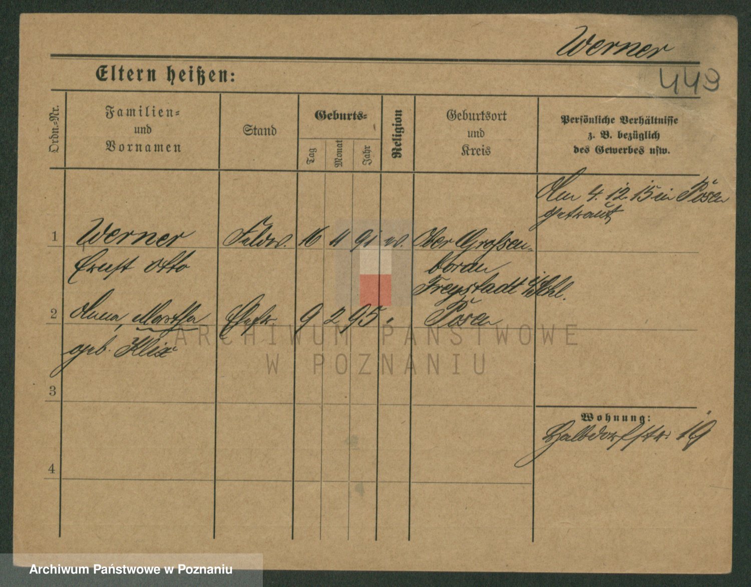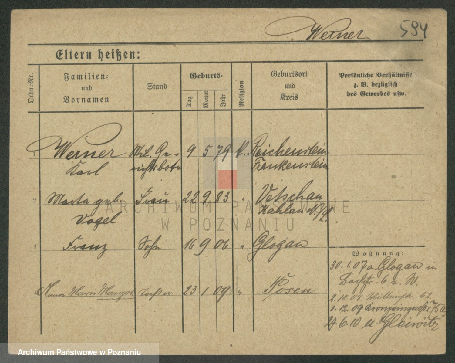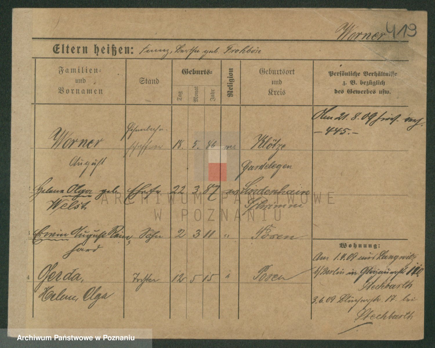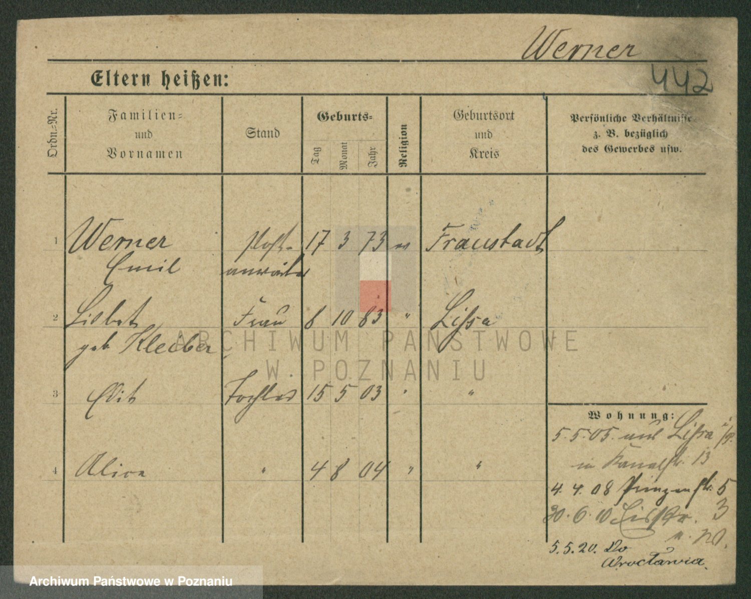 Werner z d. Mokry, Frieda