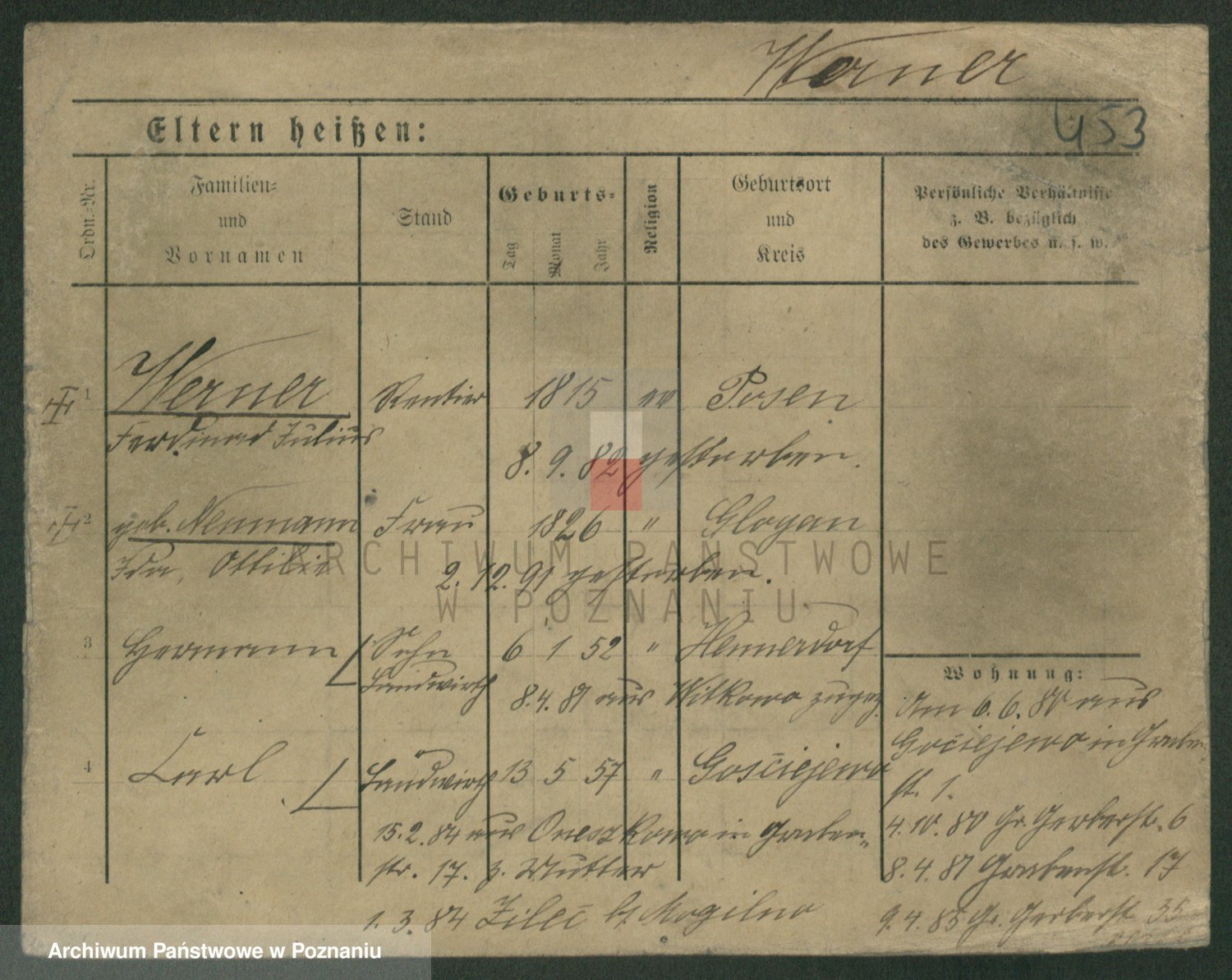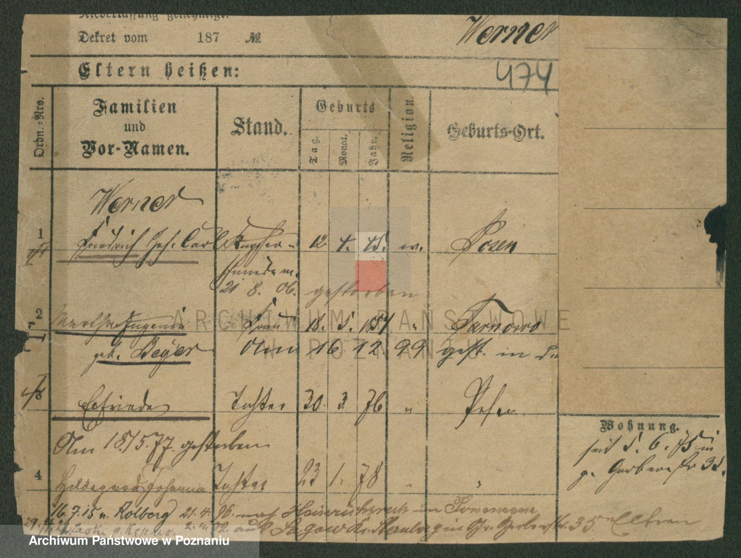Werner z d. Jahns, Emilie