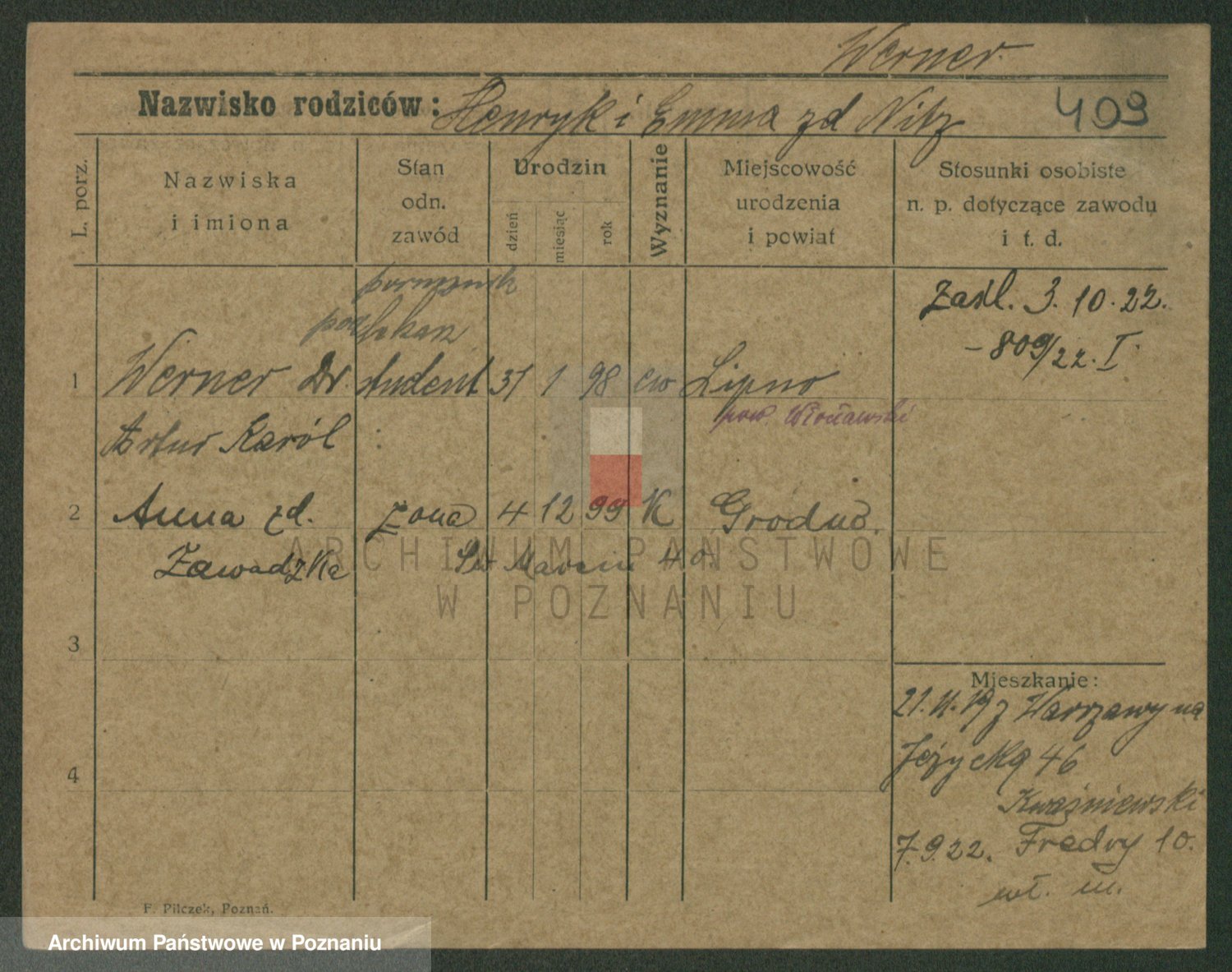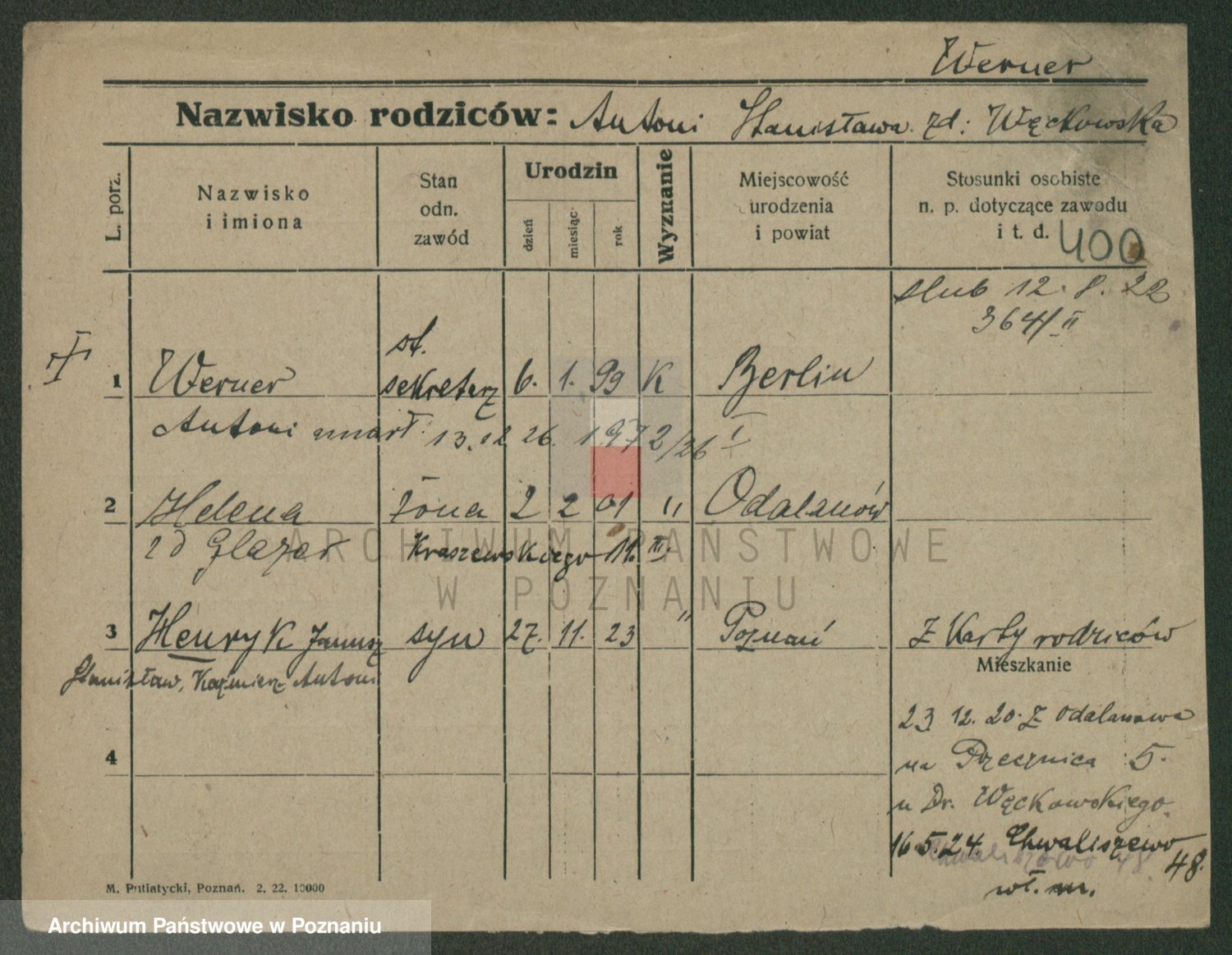 Werner z d. Trawinska, Wladislawa