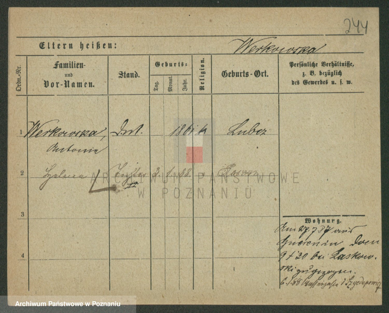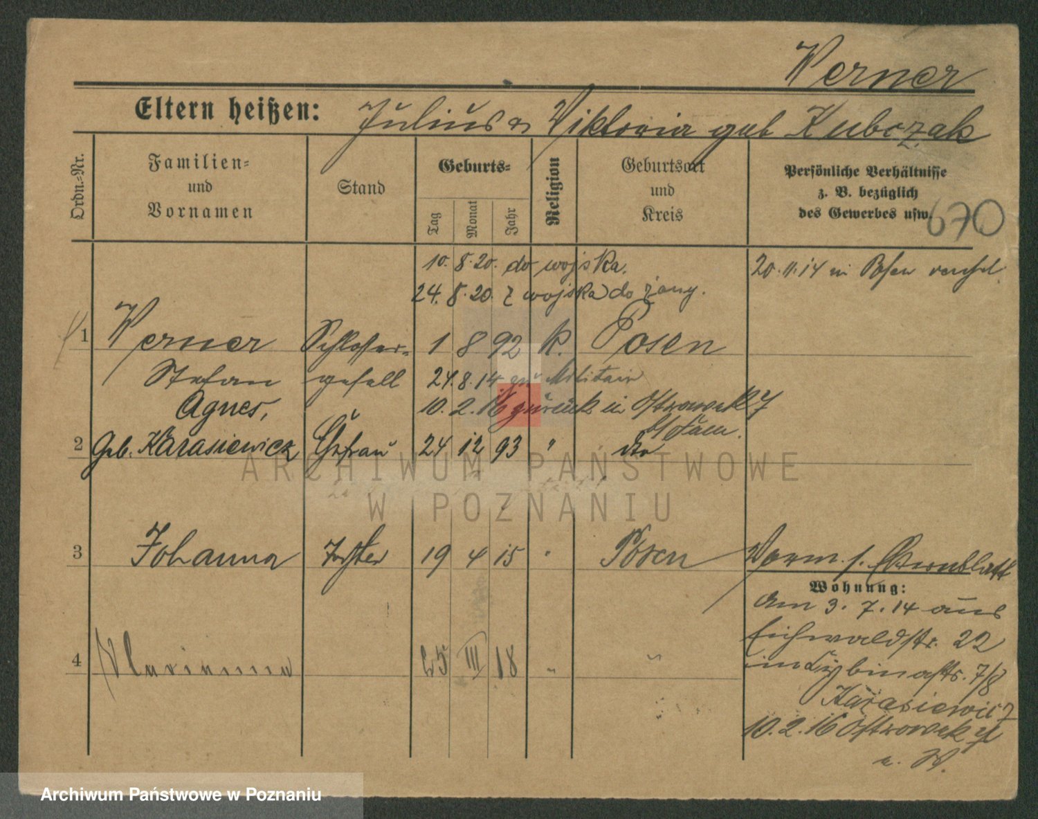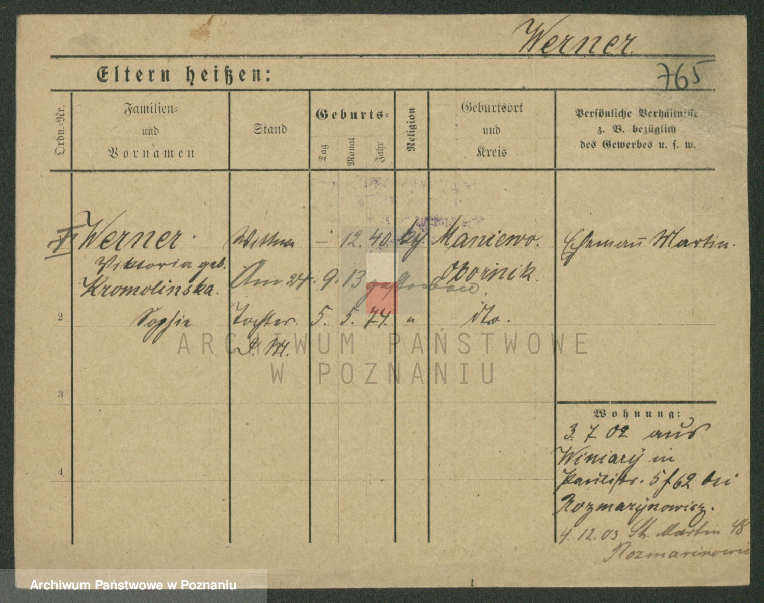 Werner z d. Kromolinska, Wiktoria