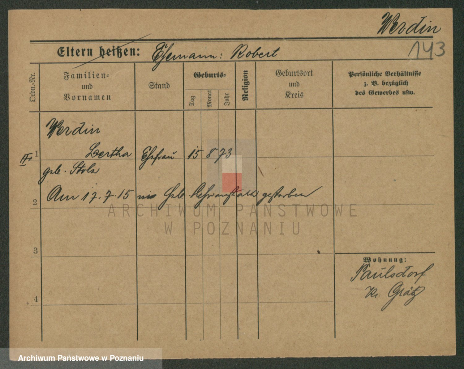 Werner z d. Wiesner, Bertha