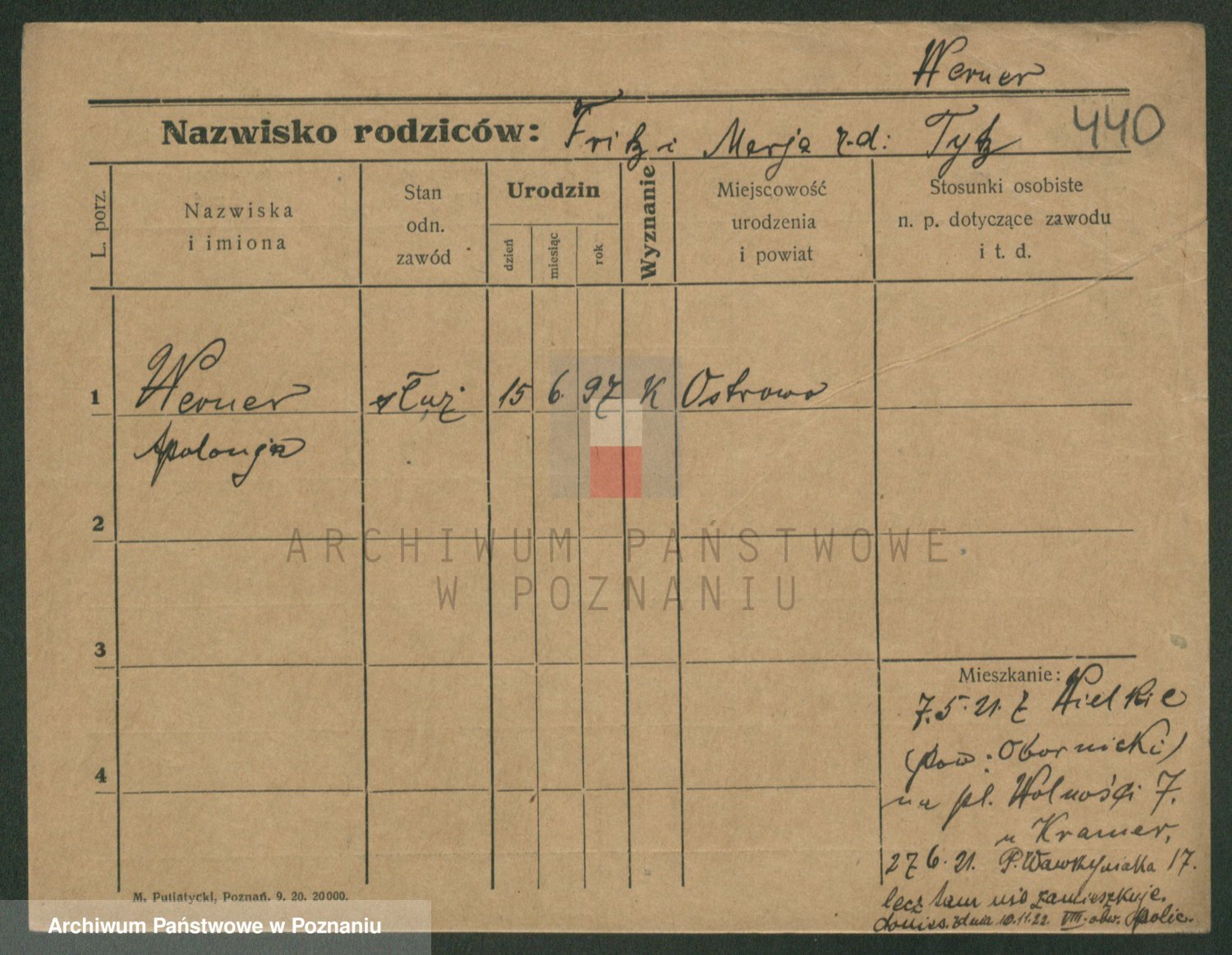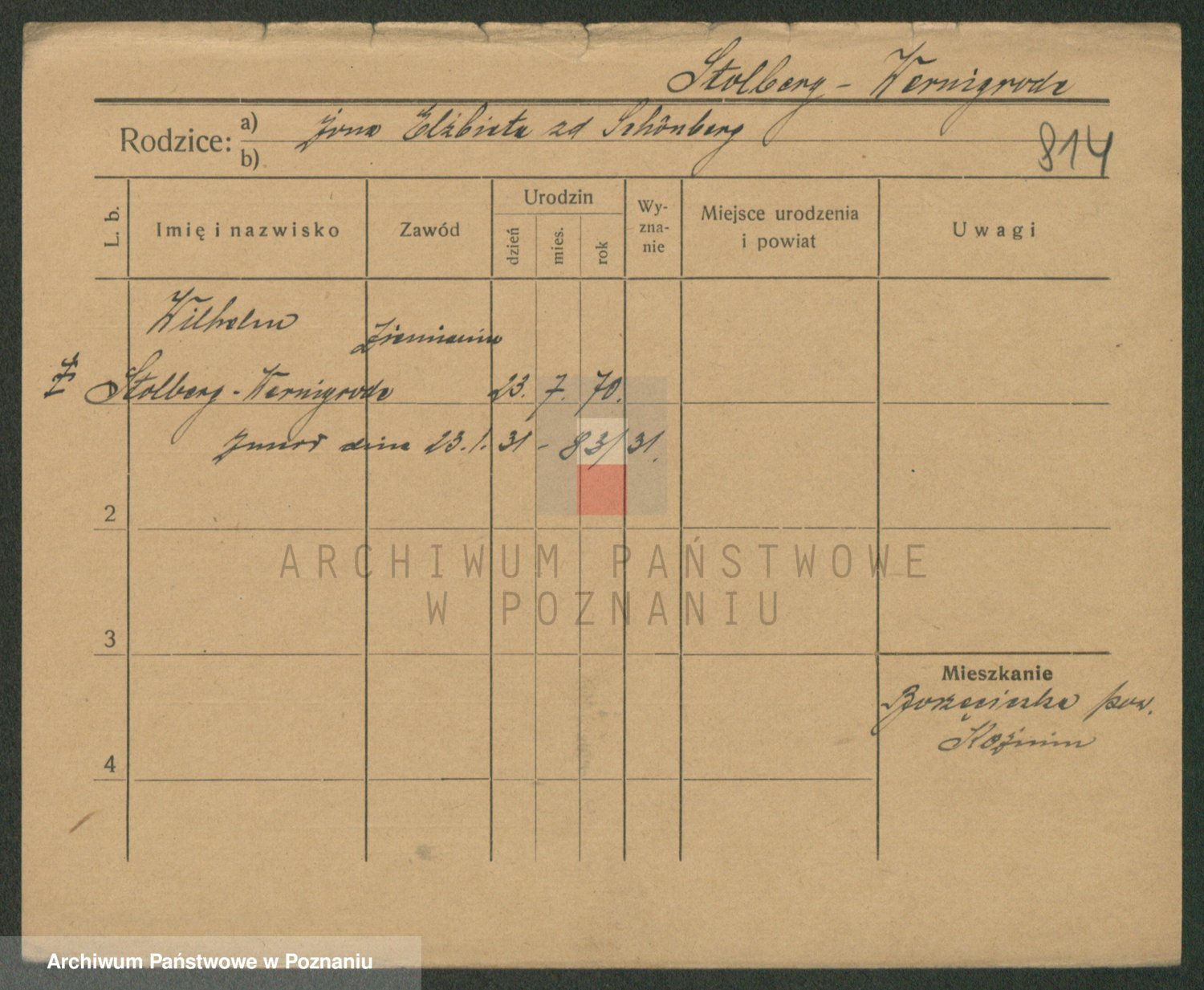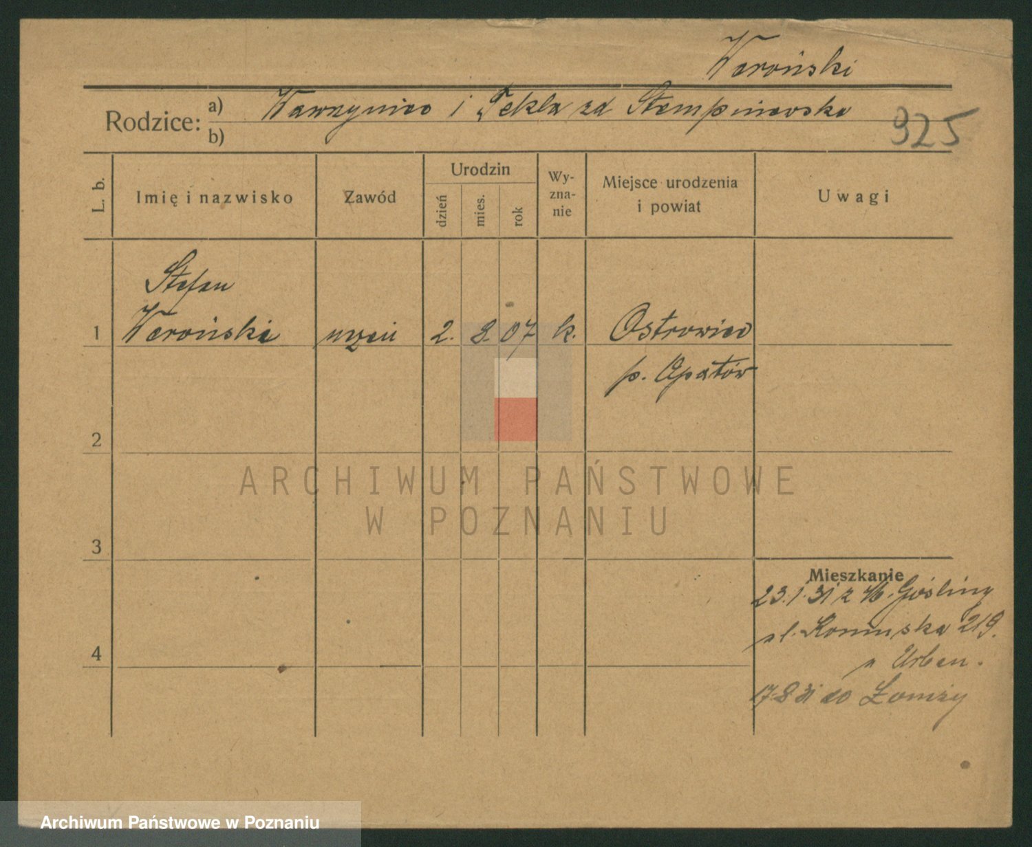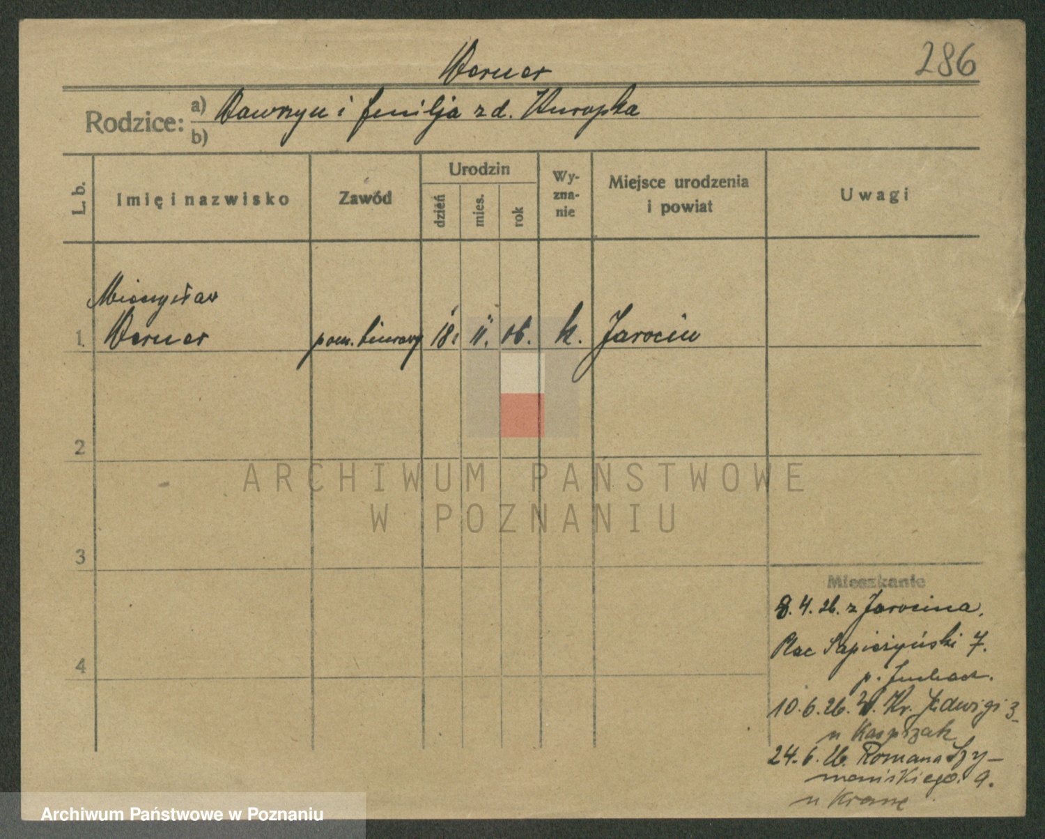 Podgląd karty osobowej dostępny jest po kliknięciu na nazwisko lub ikonkę karty. Można dokonywać powiększenia (ikony na górze) lub przechodzić między kolejnymi skanami (strzałki po bokach).