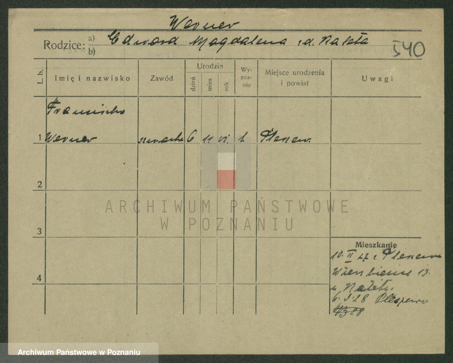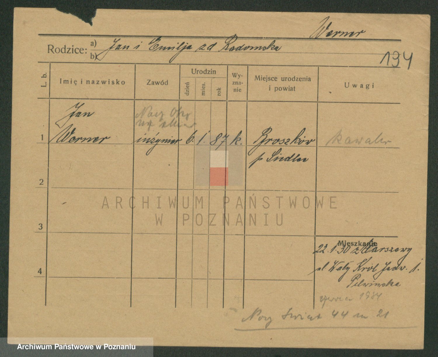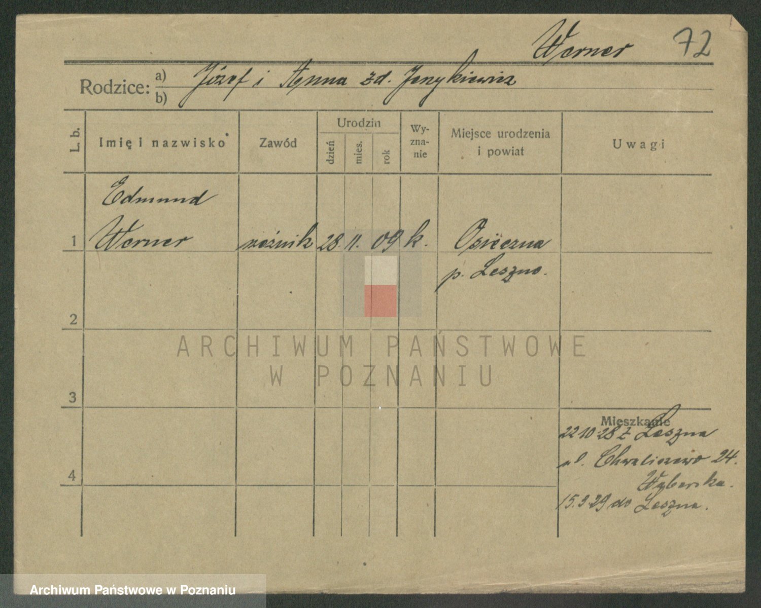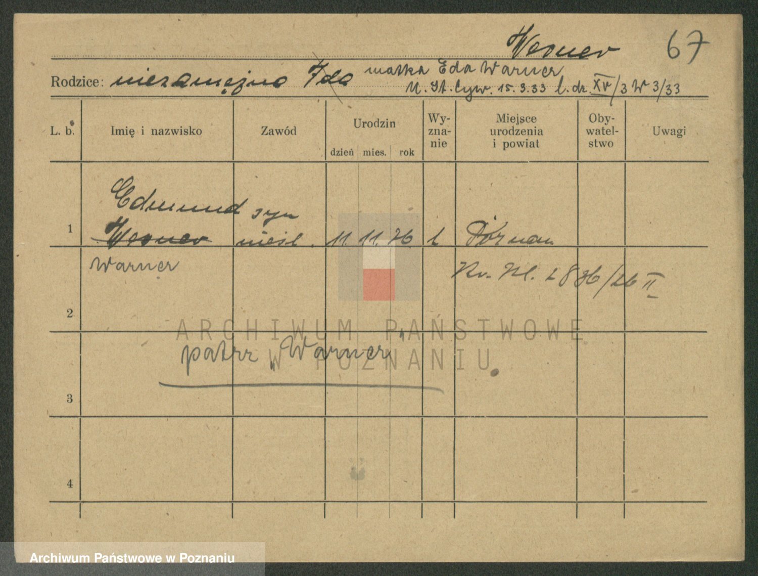 Werner nazwisko poprawione na Warner, Edmund