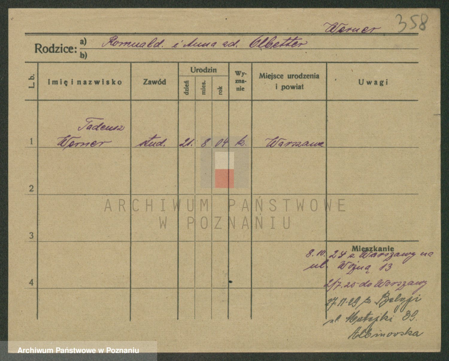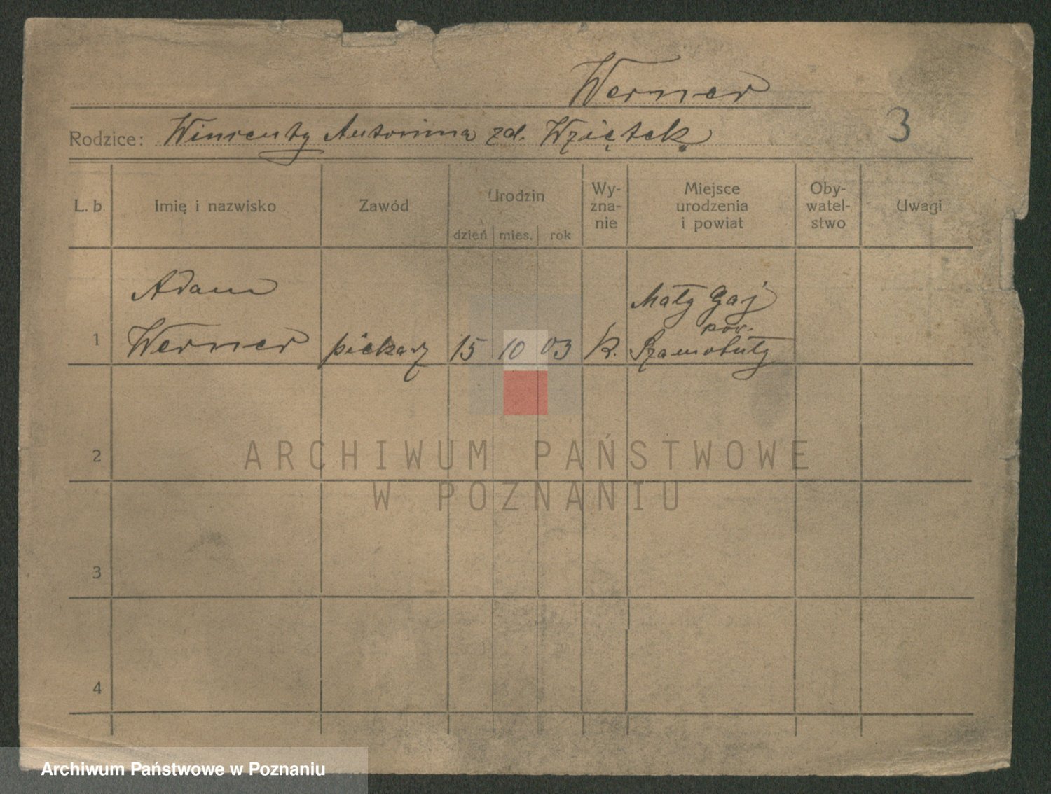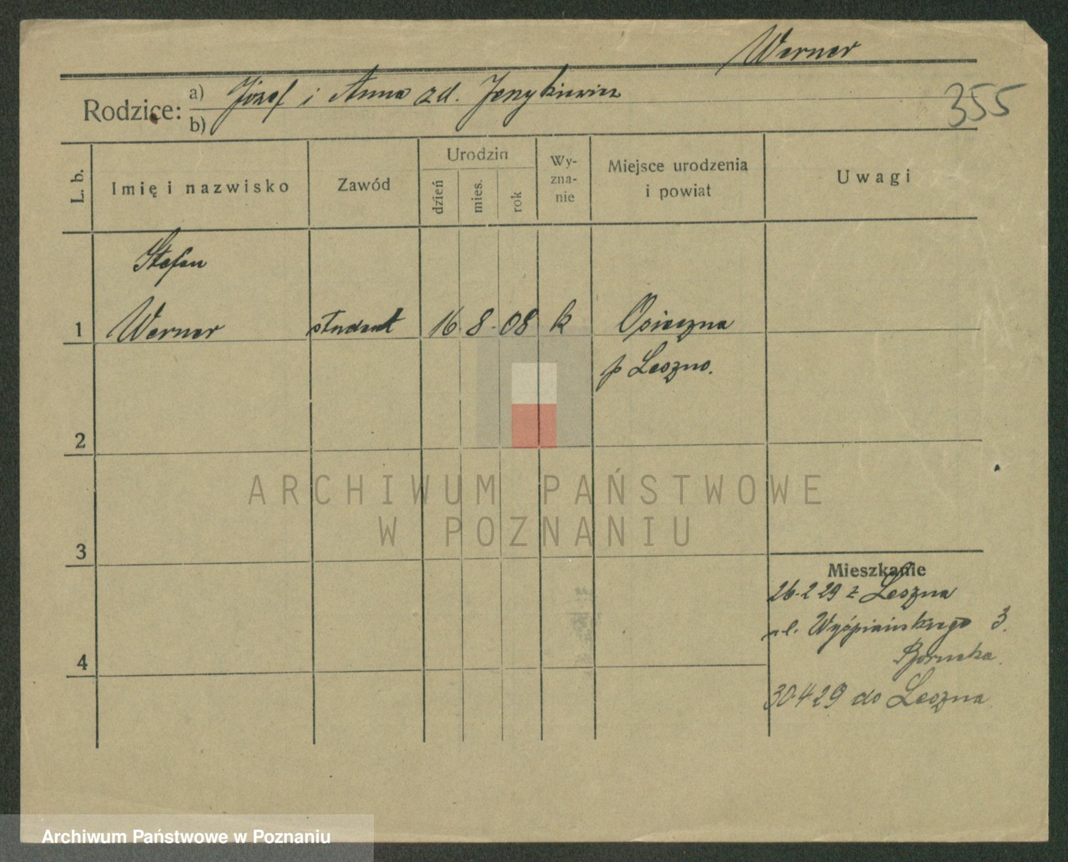 Werner nazwisko poprawione na Warner, Edmund