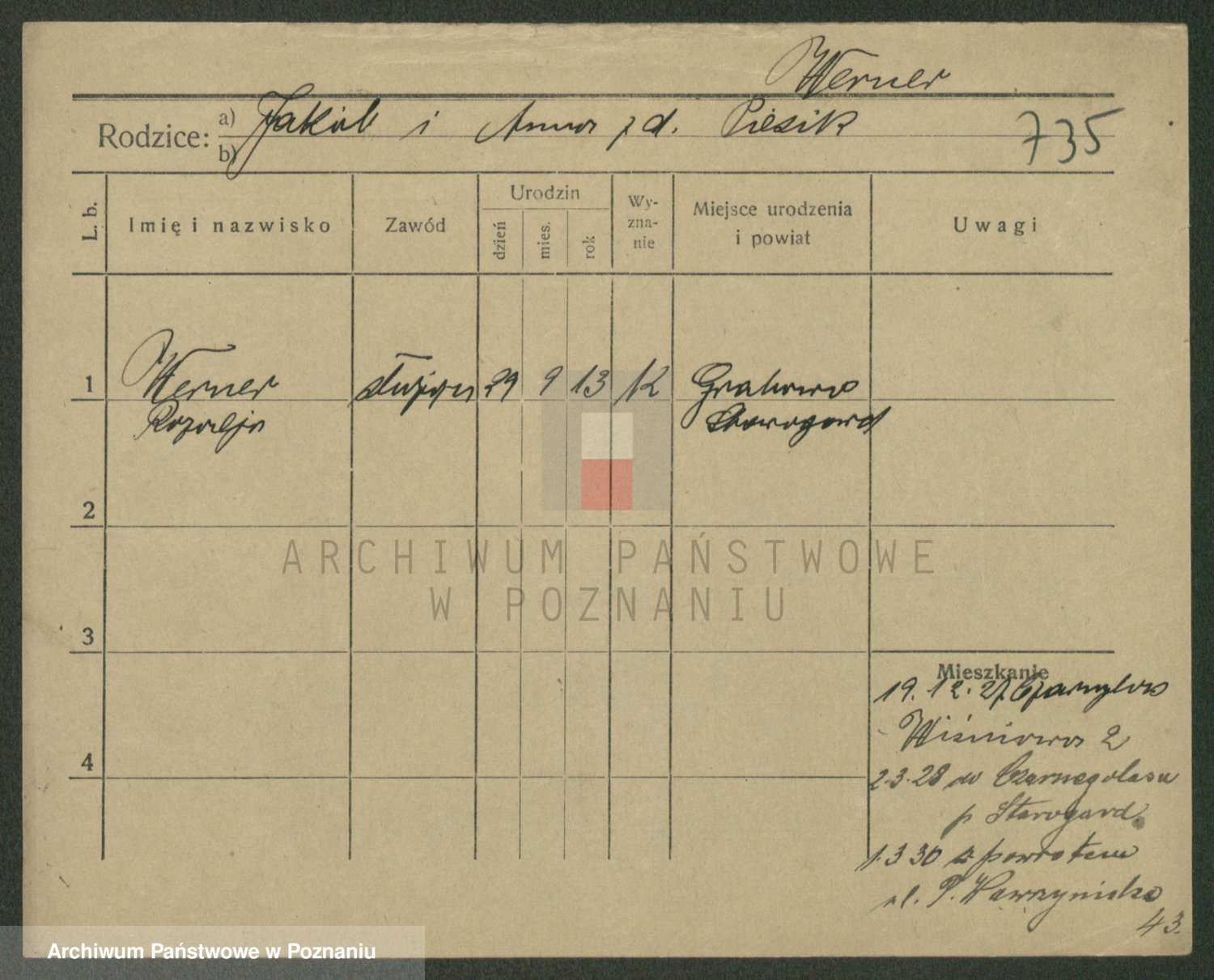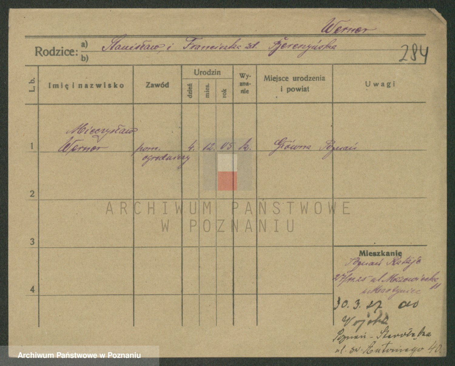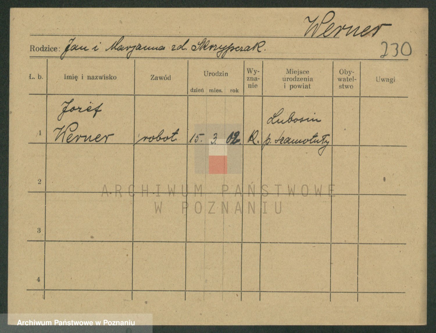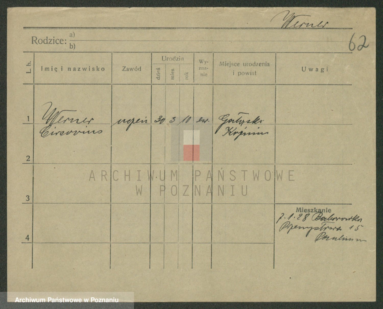 Werner nazwisko poprawione na Warner, Edmund
