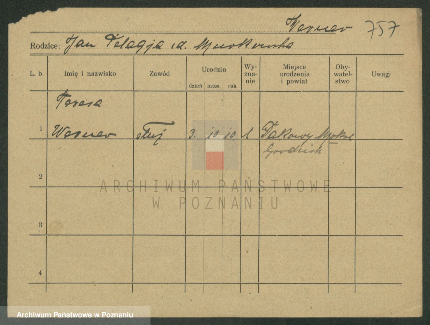 Weroniczak później zam. Sawarzynski, Catharina