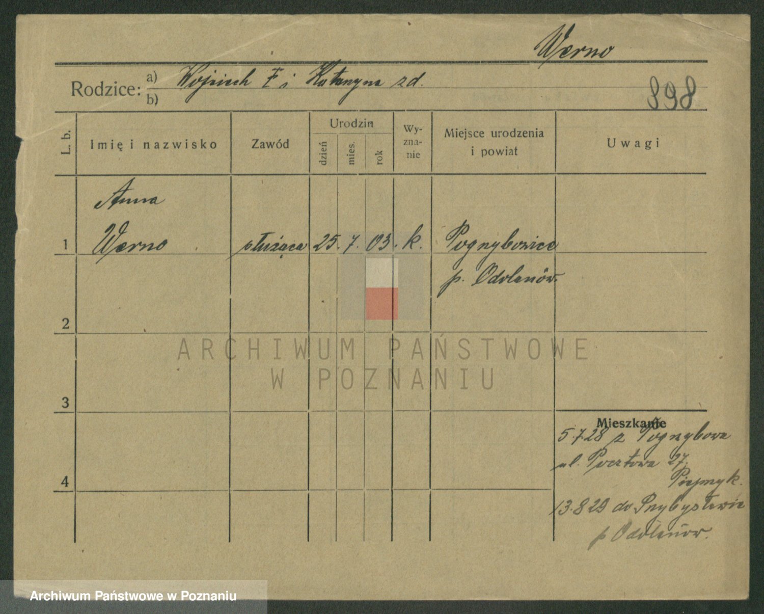 Werno zd. Przybył, Wiktorja