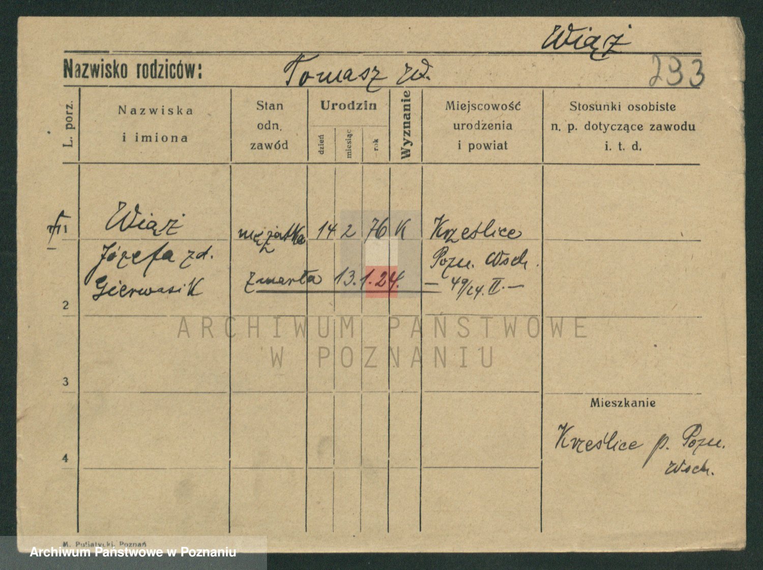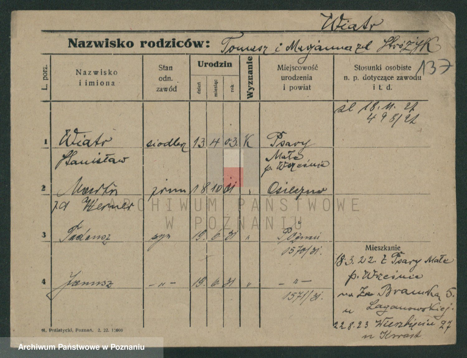 Wiatr z.d. Plucinska I voto Blasius, Stanislawa