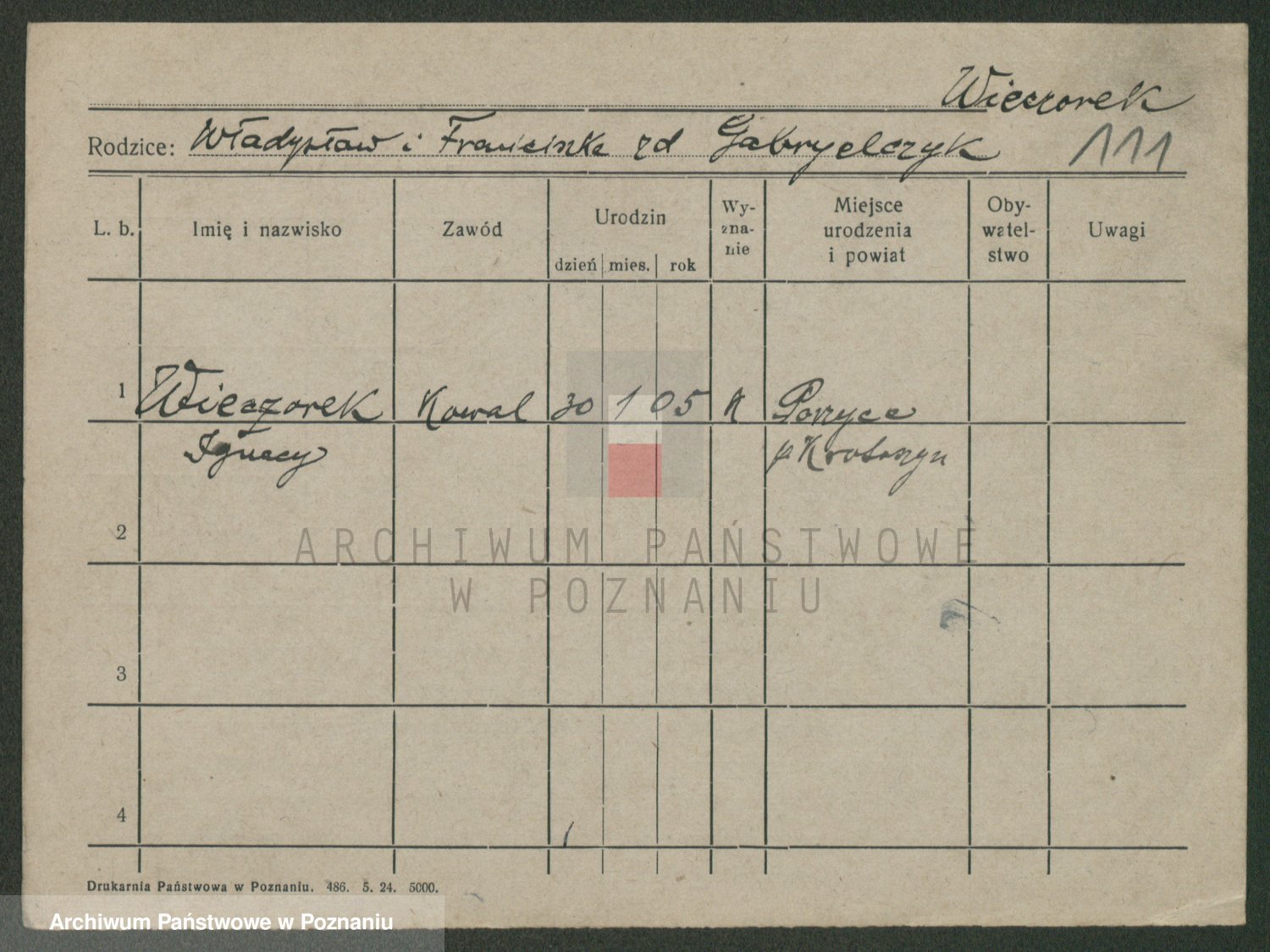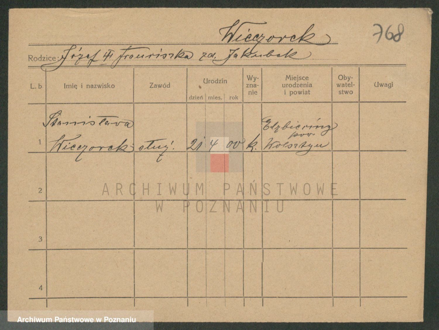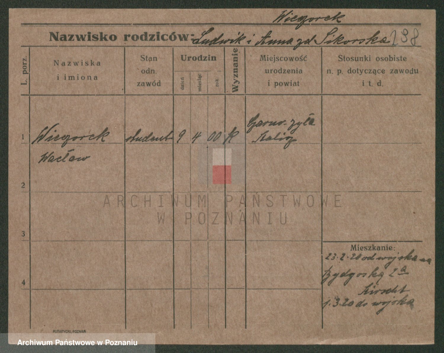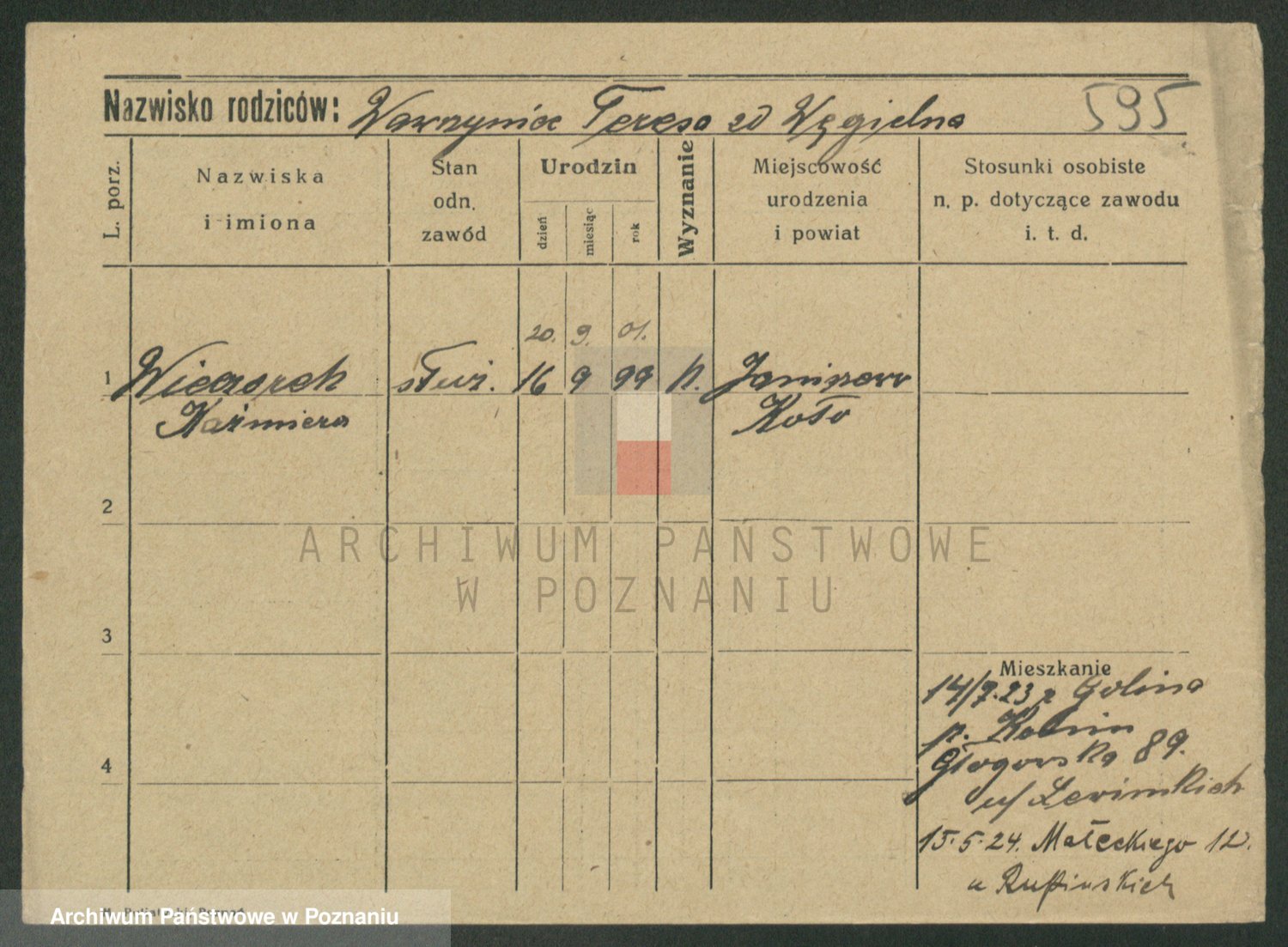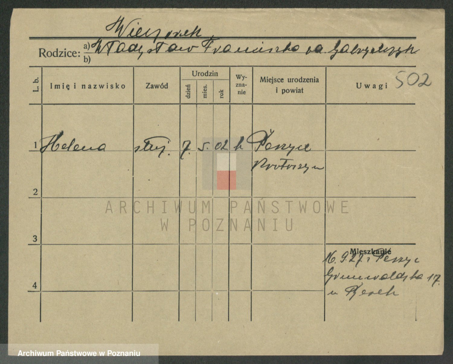 Podgląd karty osobowej dostępny jest po kliknięciu na nazwisko lub ikonkę karty. Można dokonywać powiększenia (ikony na górze) lub przechodzić między kolejnymi skanami (strzałki po bokach).