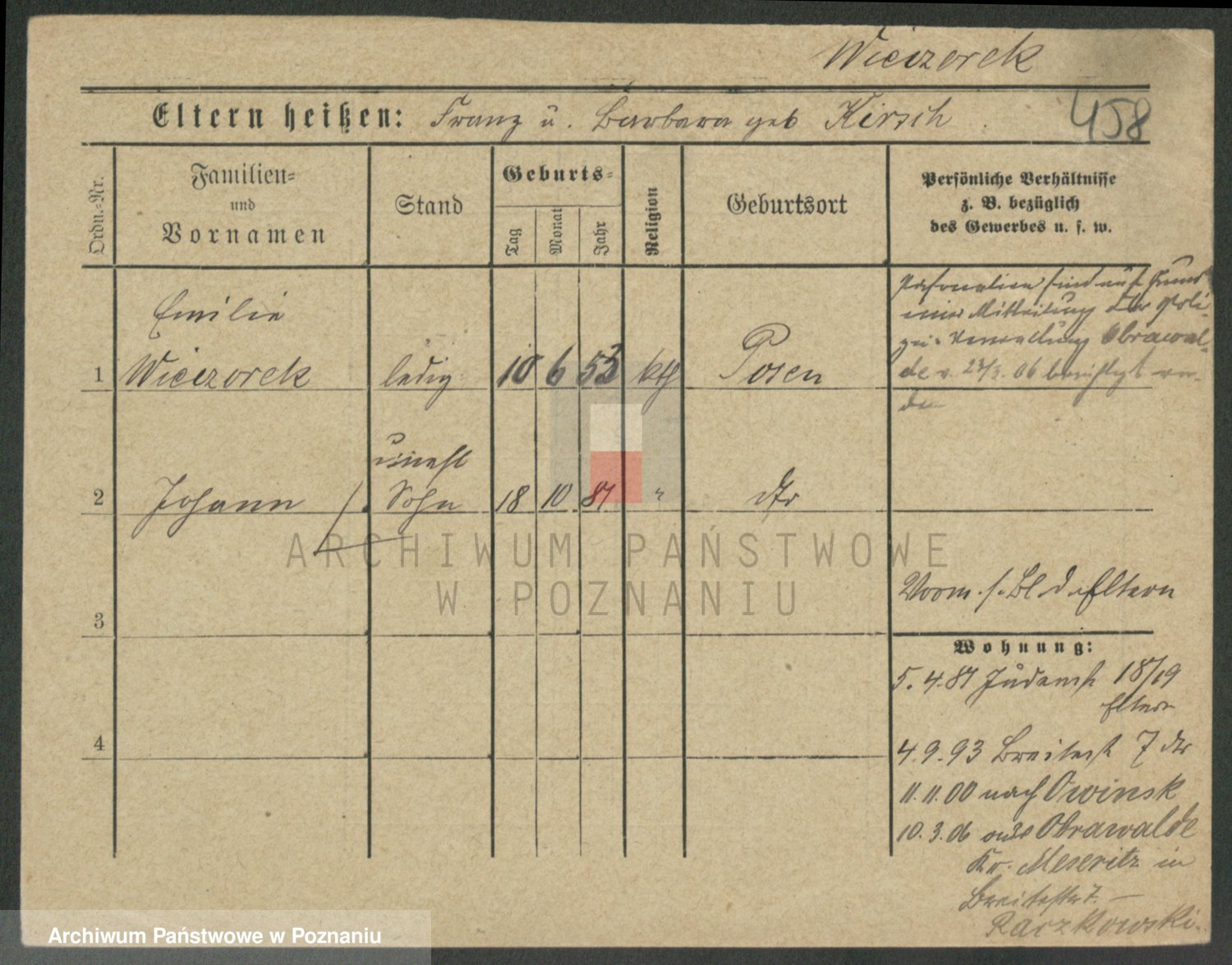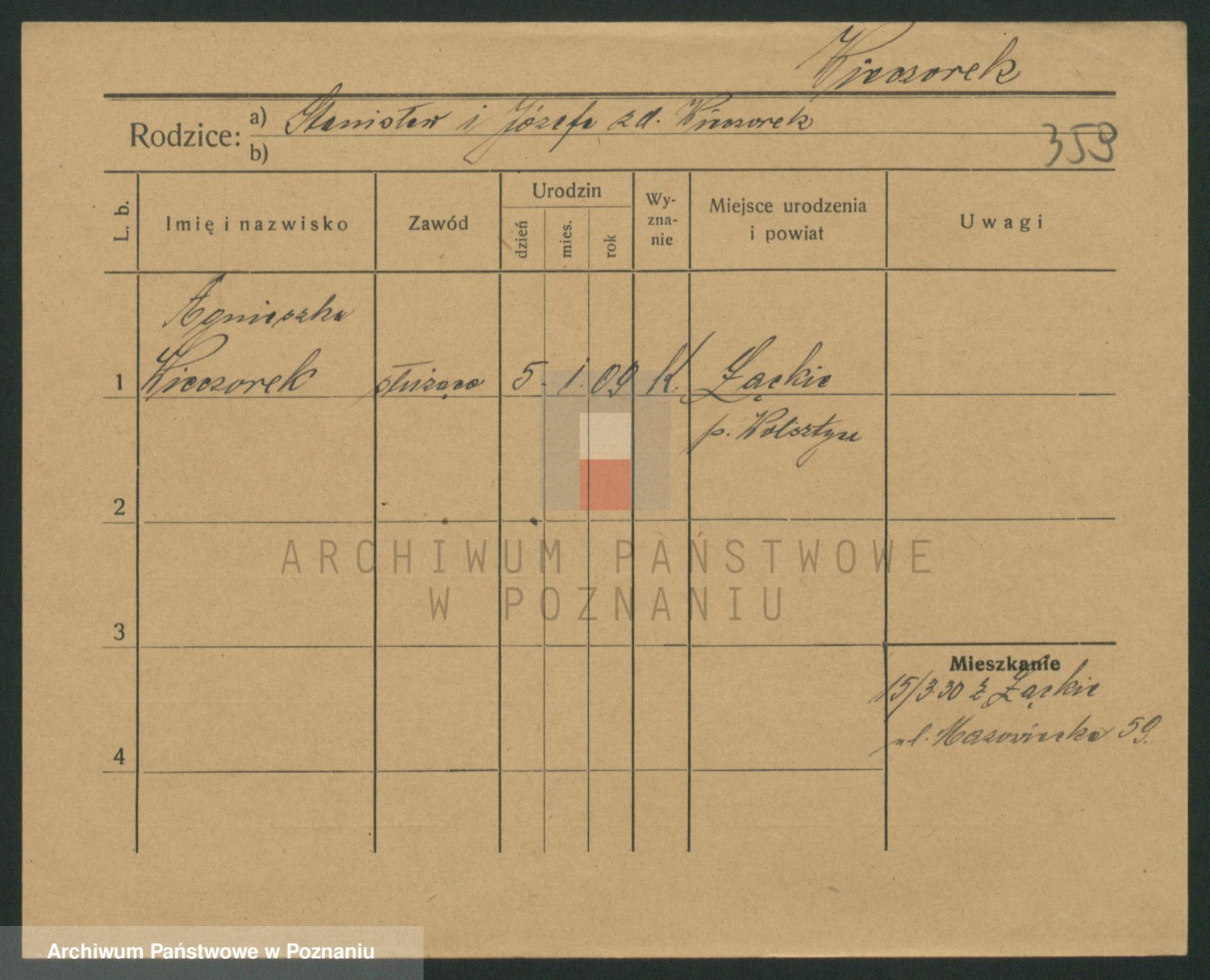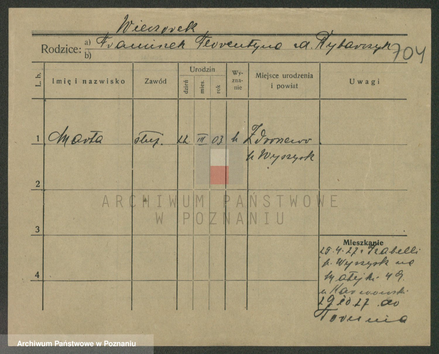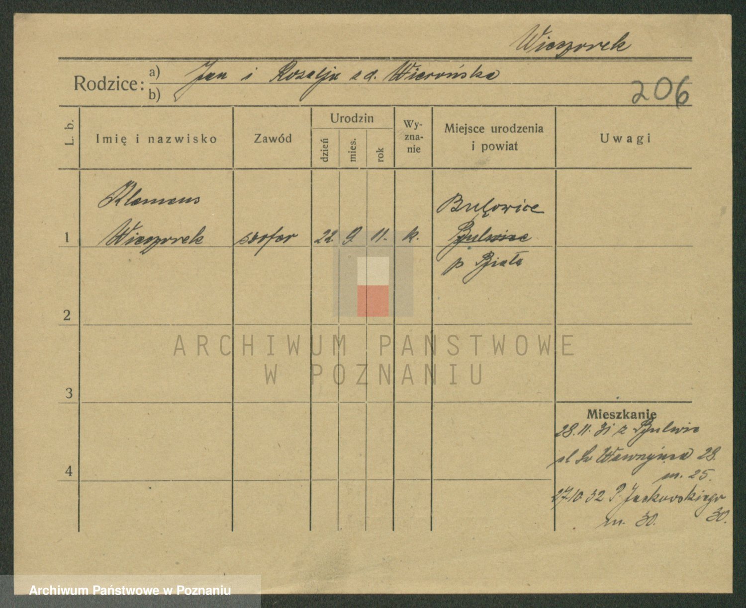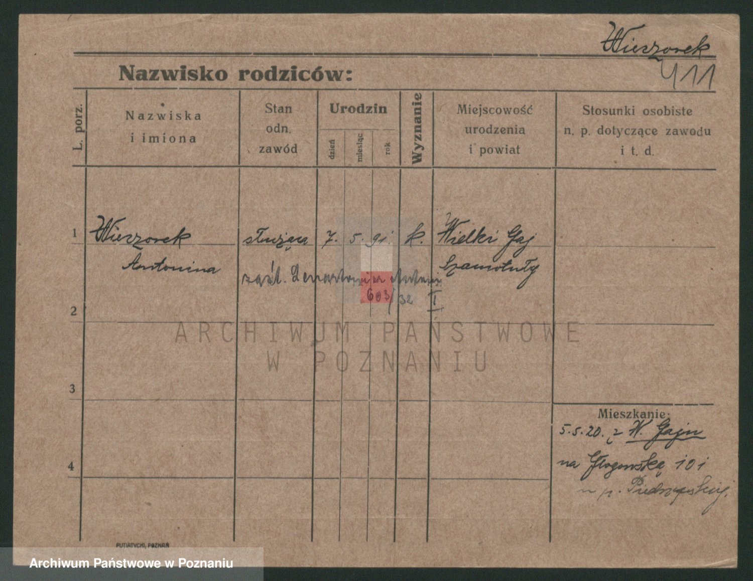 Podgląd karty osobowej dostępny jest po kliknięciu na nazwisko lub ikonkę karty. Można dokonywać powiększenia (ikony na górze) lub przechodzić między kolejnymi skanami (strzałki po bokach).