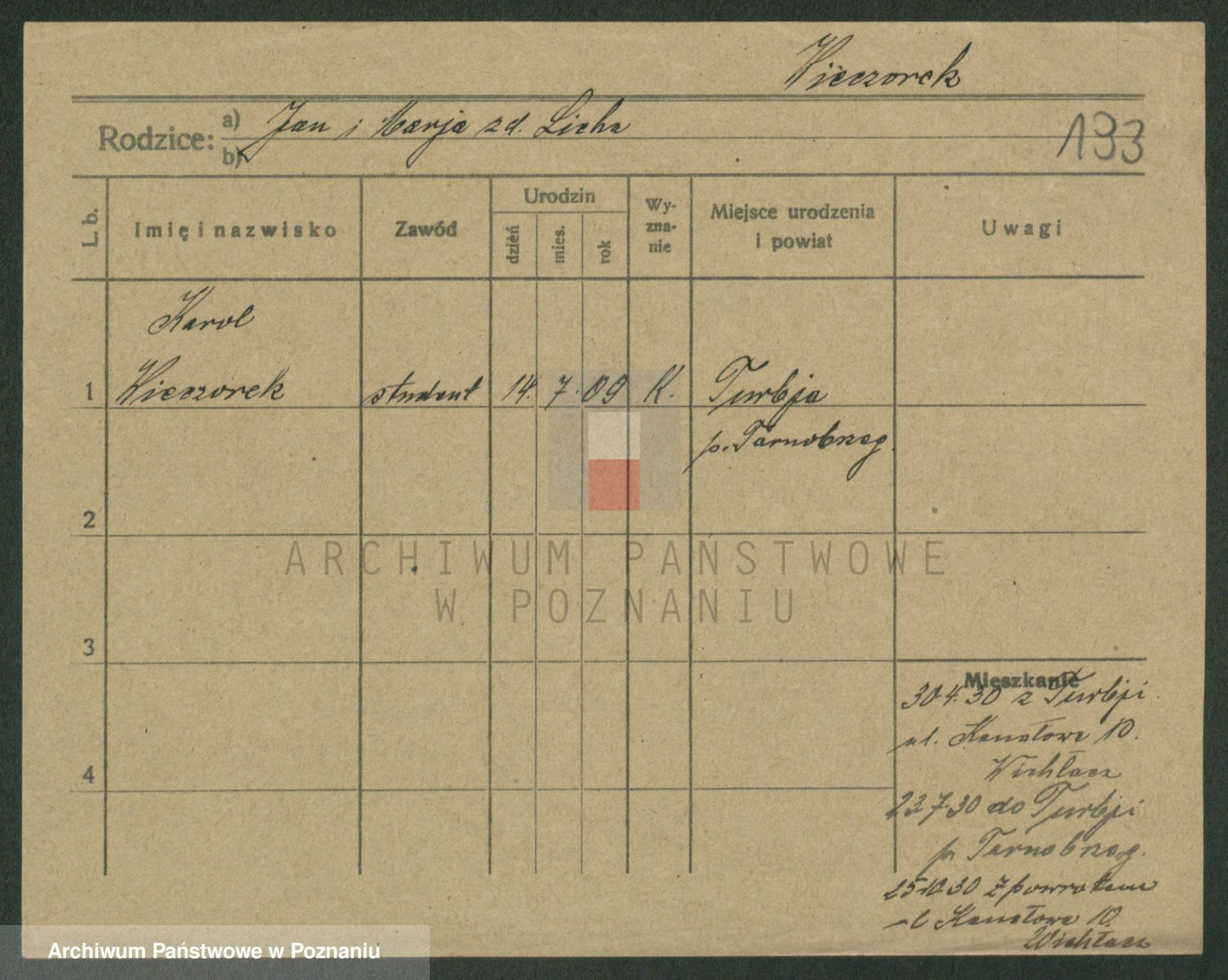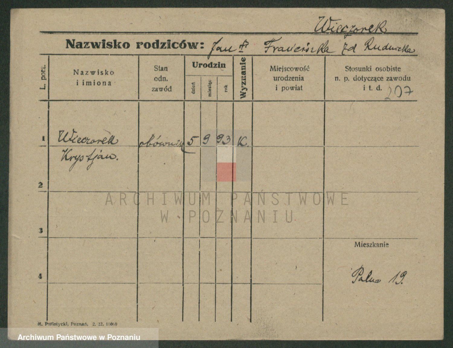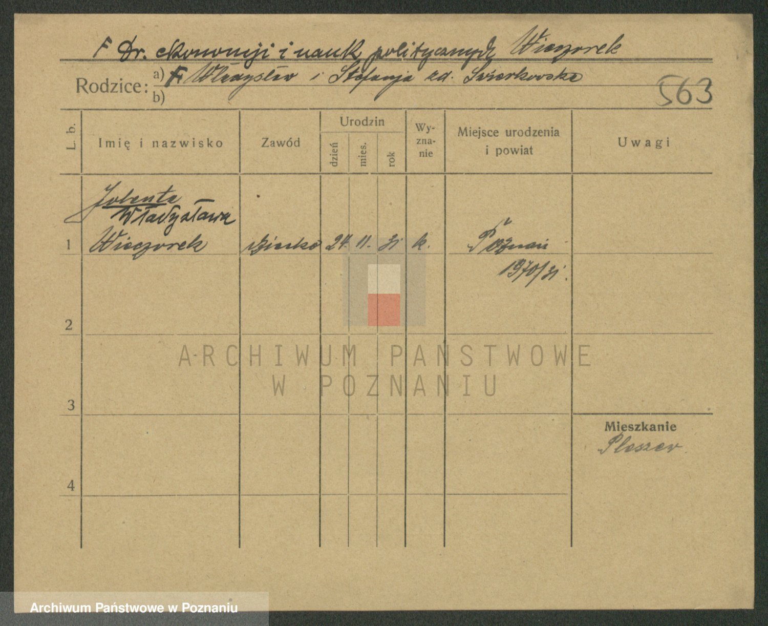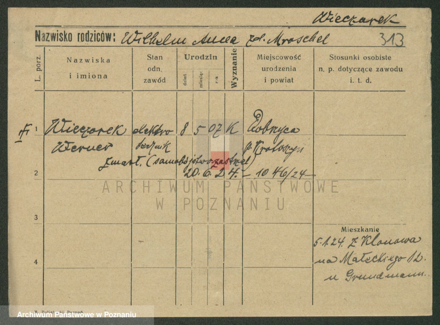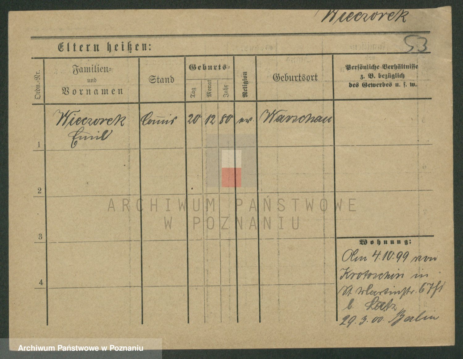 Podgląd karty osobowej dostępny jest po kliknięciu na nazwisko lub ikonkę karty. Można dokonywać powiększenia (ikony na górze) lub przechodzić między kolejnymi skanami (strzałki po bokach).