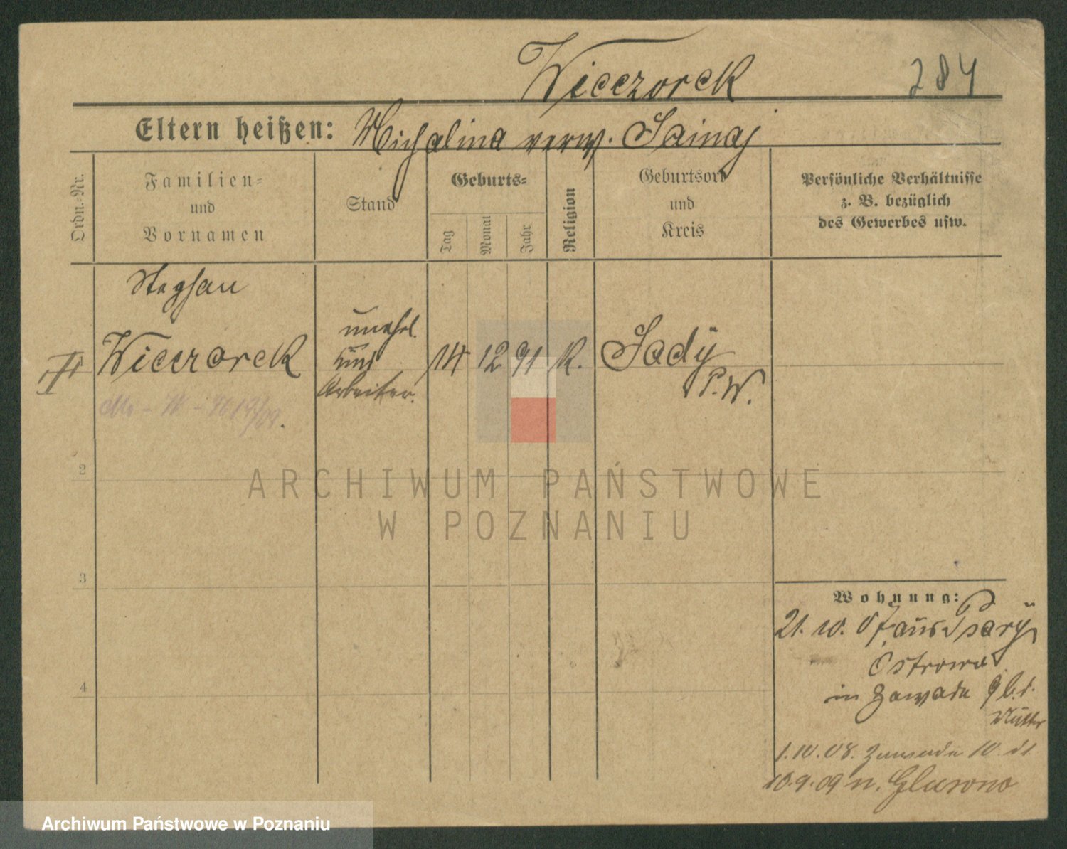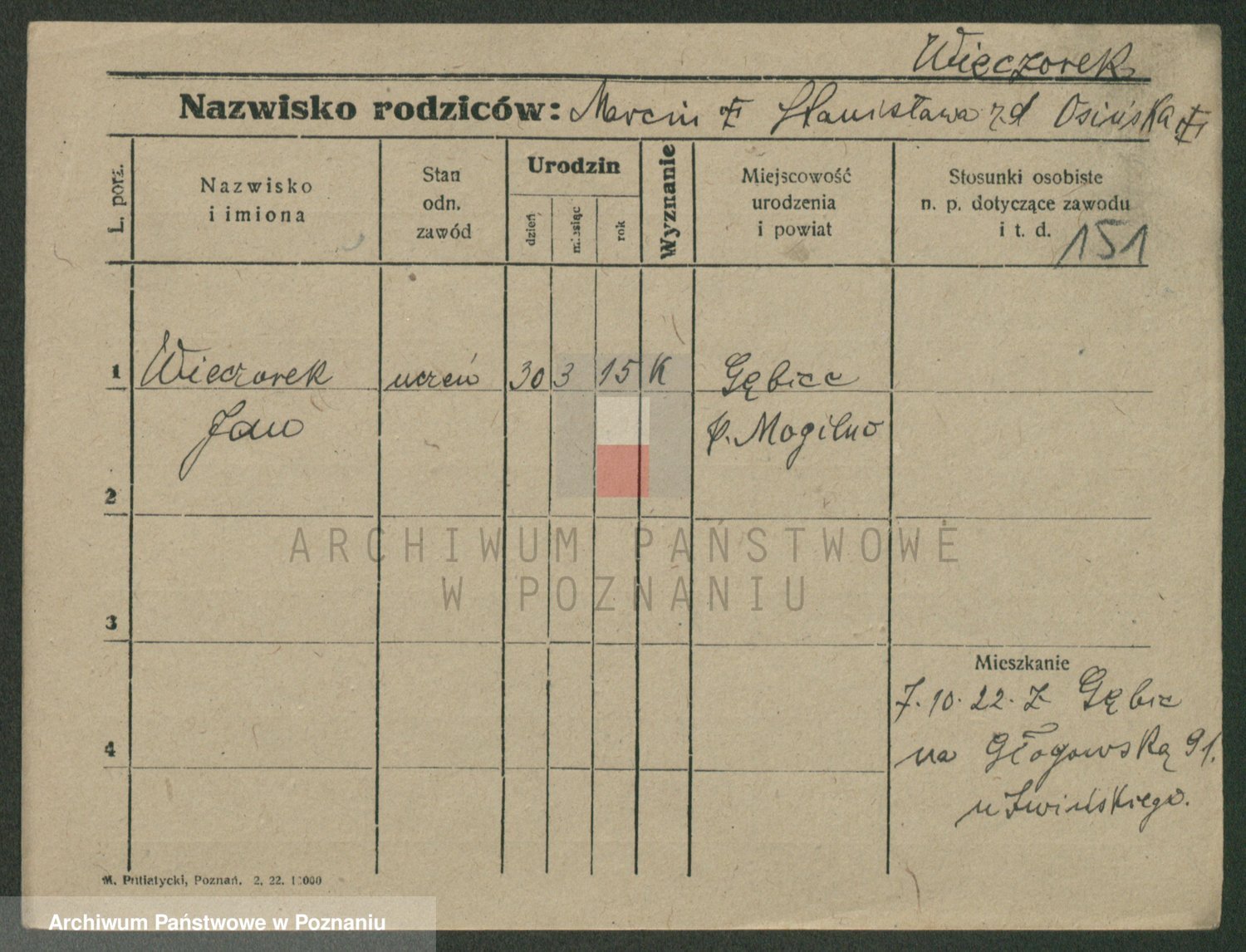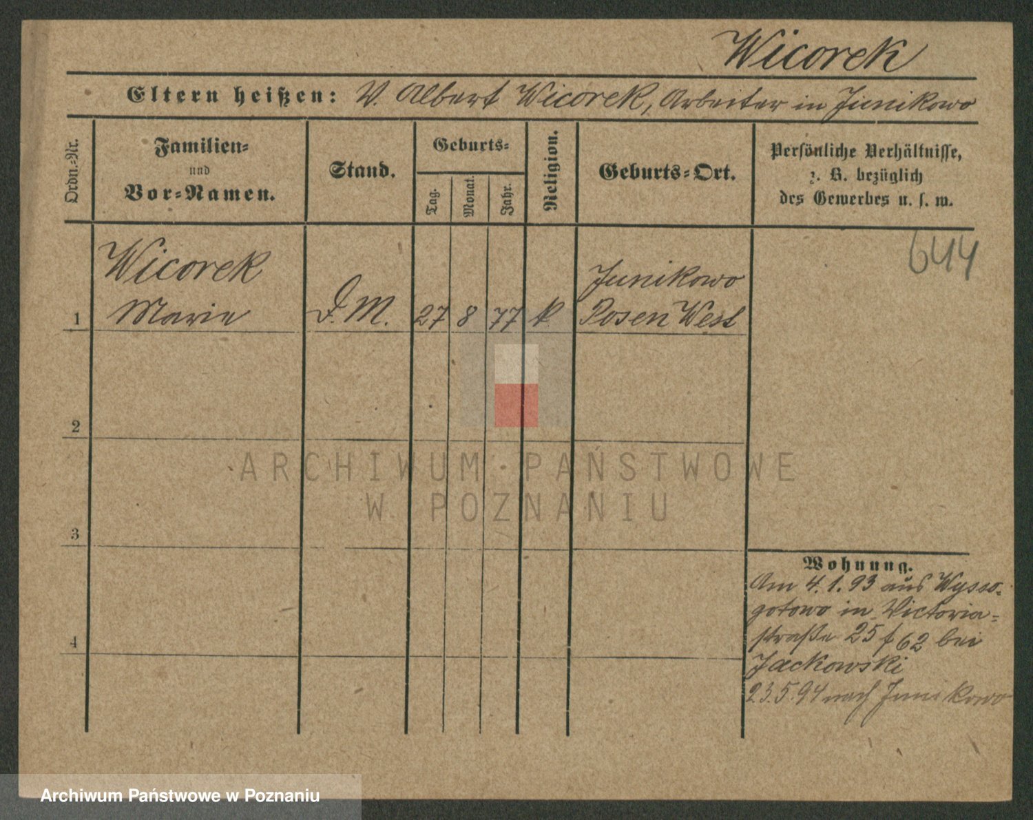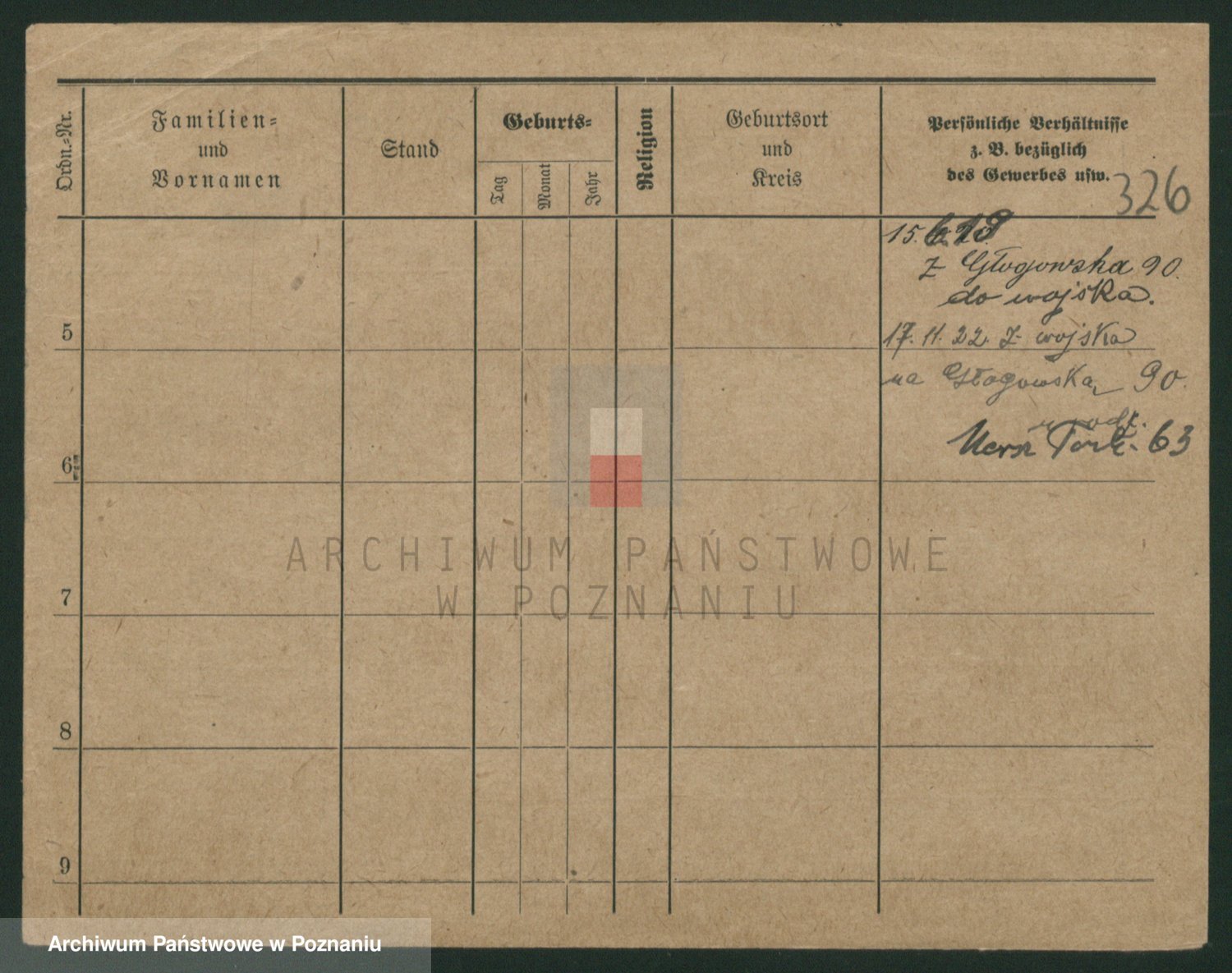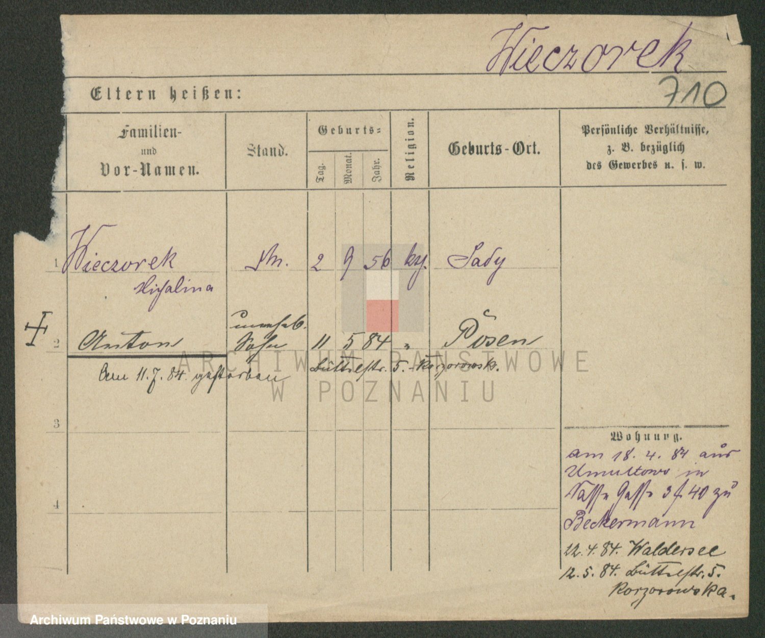 Podgląd karty osobowej dostępny jest po kliknięciu na nazwisko lub ikonkę karty. Można dokonywać powiększenia (ikony na górze) lub przechodzić między kolejnymi skanami (strzałki po bokach).