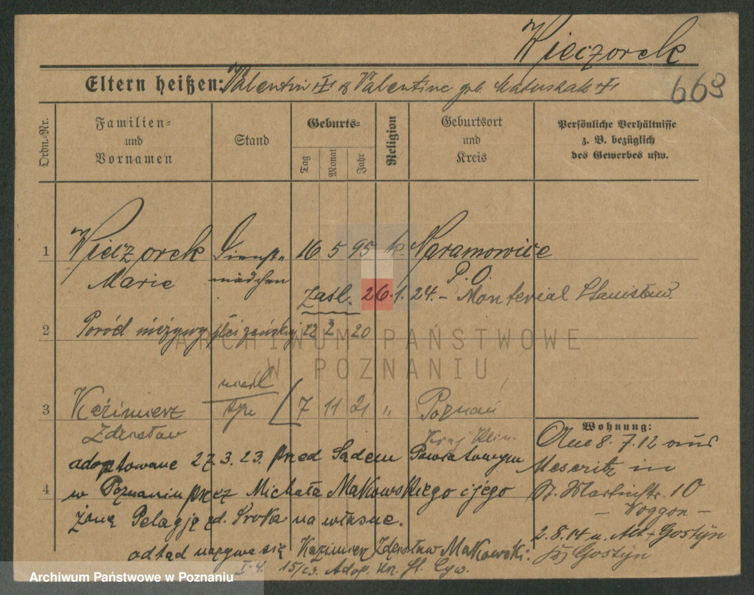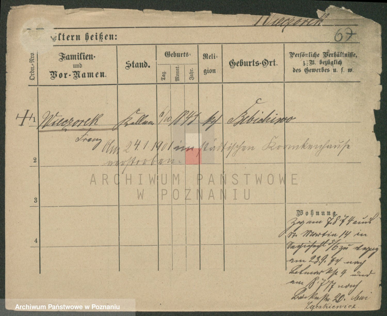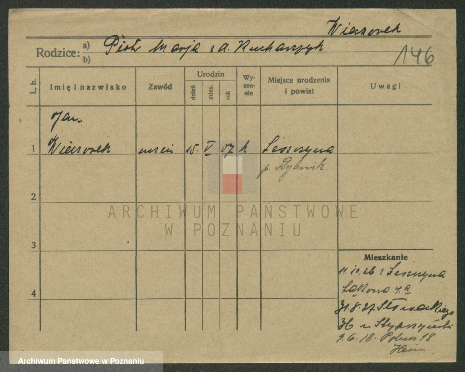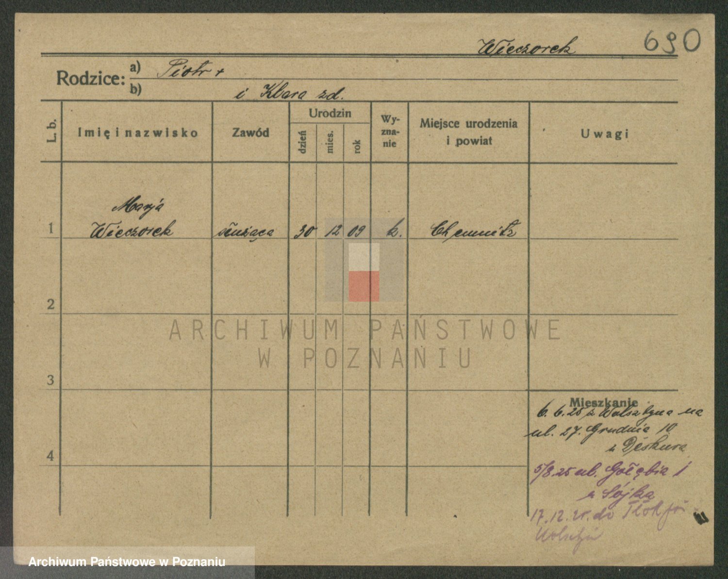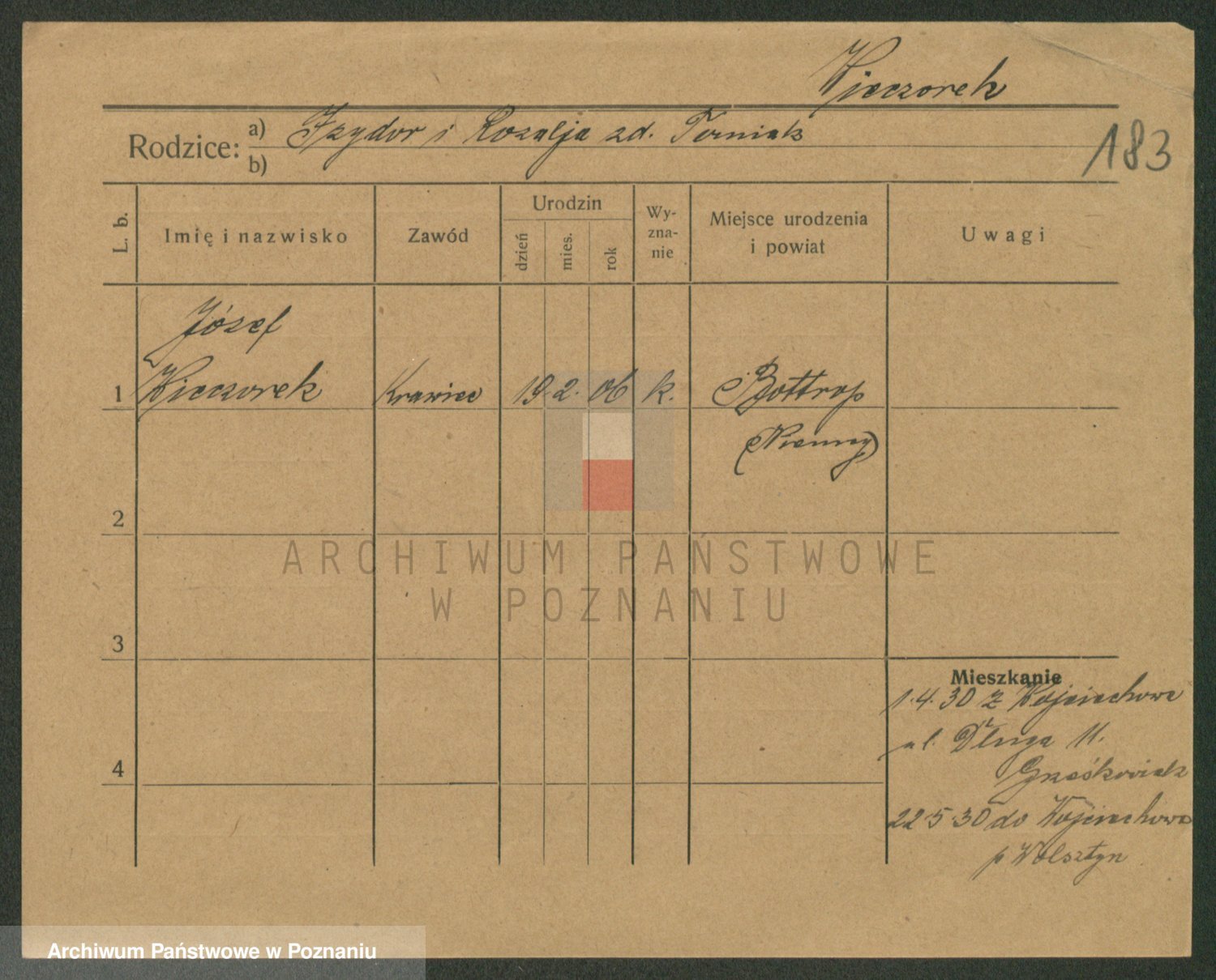 Podgląd karty osobowej dostępny jest po kliknięciu na nazwisko lub ikonkę karty. Można dokonywać powiększenia (ikony na górze) lub przechodzić między kolejnymi skanami (strzałki po bokach).