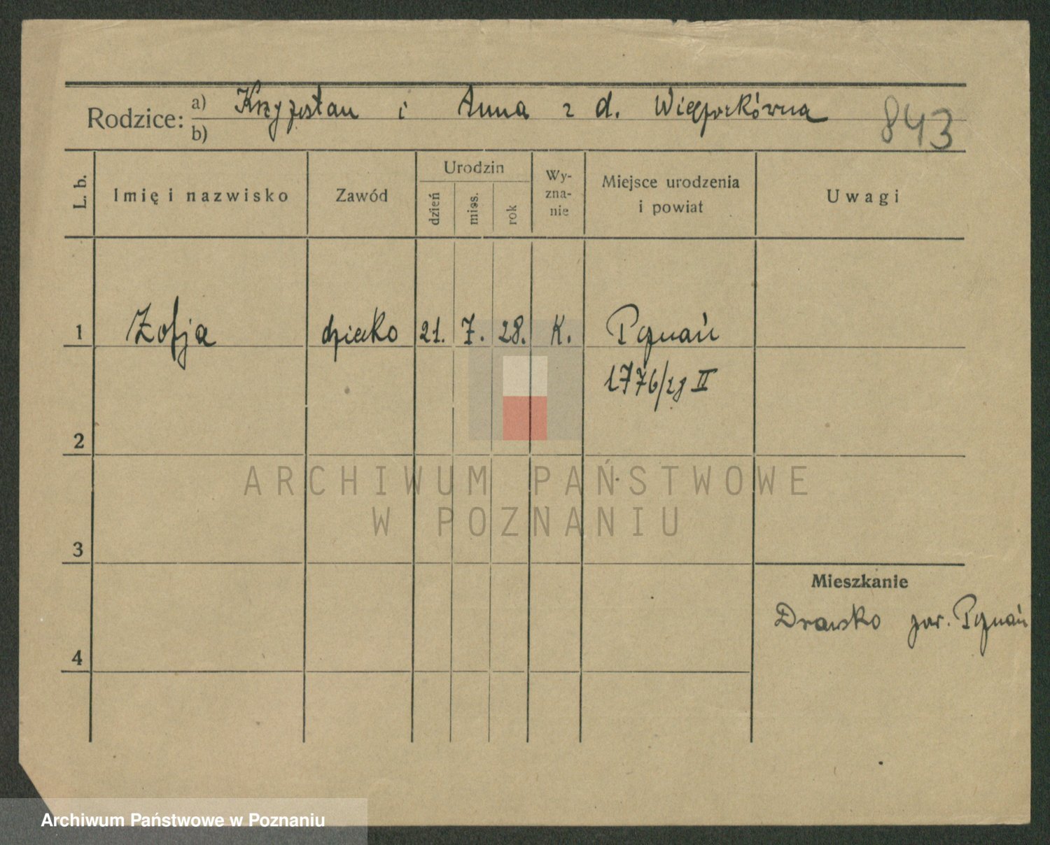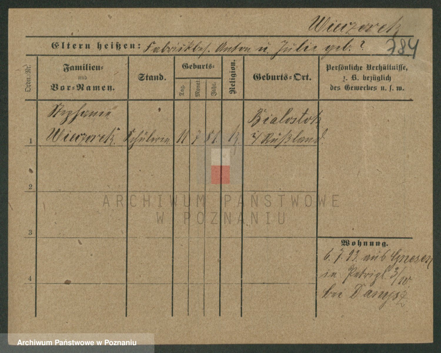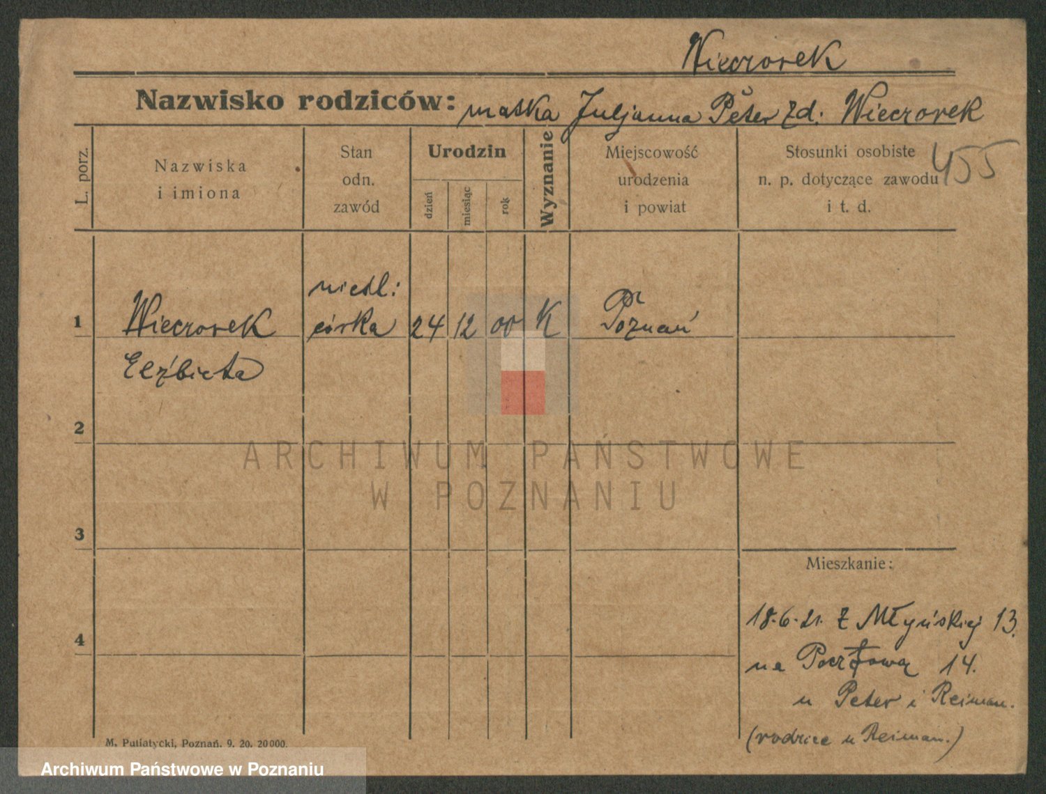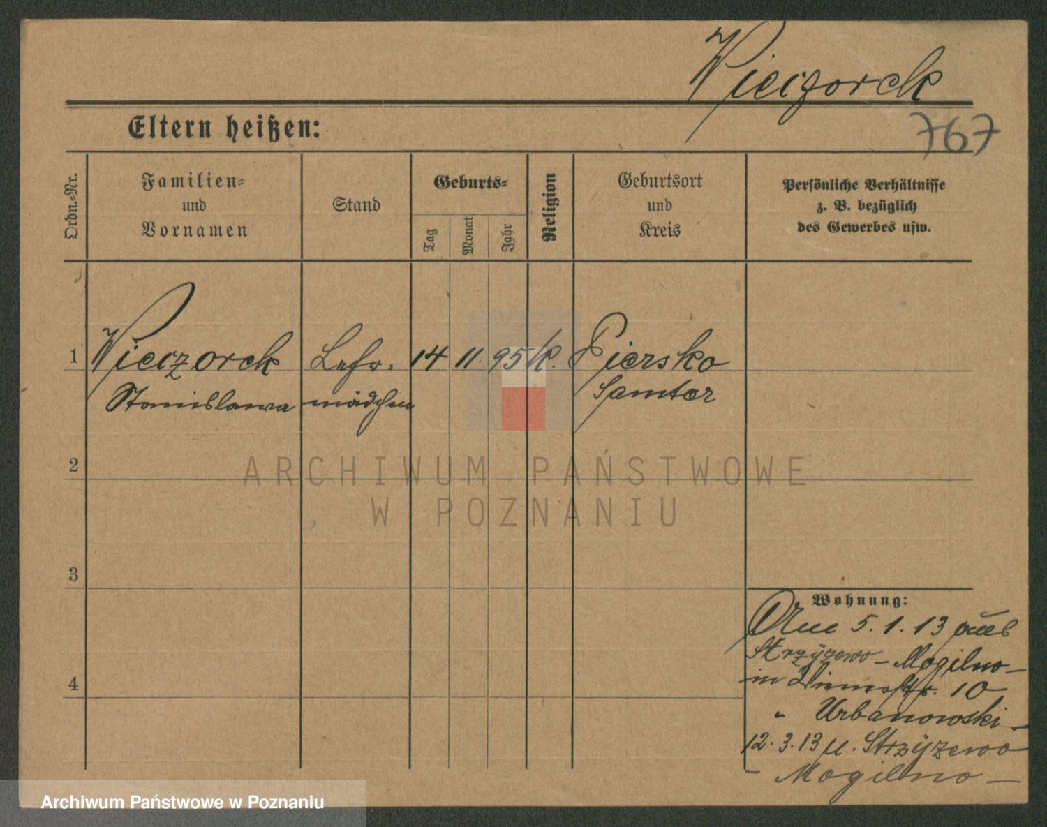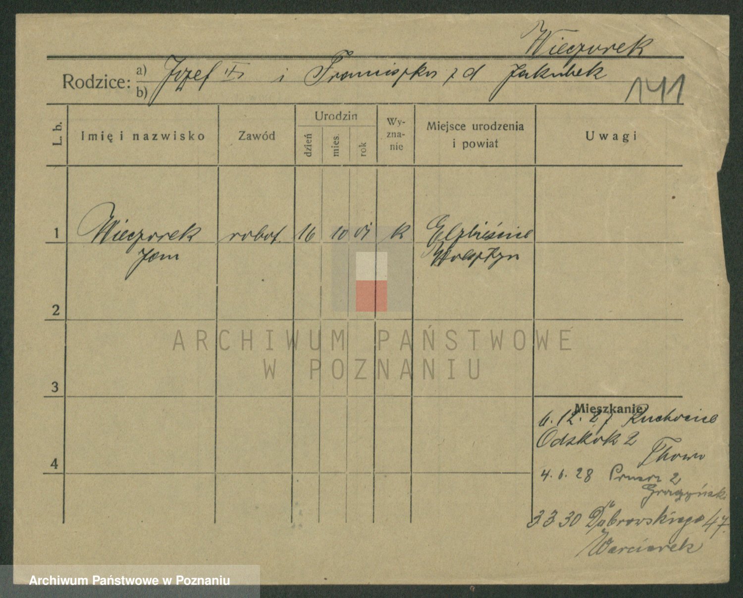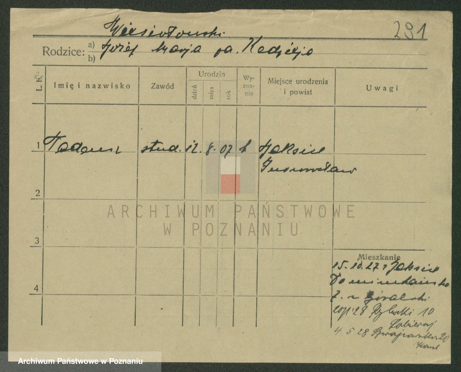 Podgląd karty osobowej dostępny jest po kliknięciu na nazwisko lub ikonkę karty. Można dokonywać powiększenia (ikony na górze) lub przechodzić między kolejnymi skanami (strzałki po bokach).