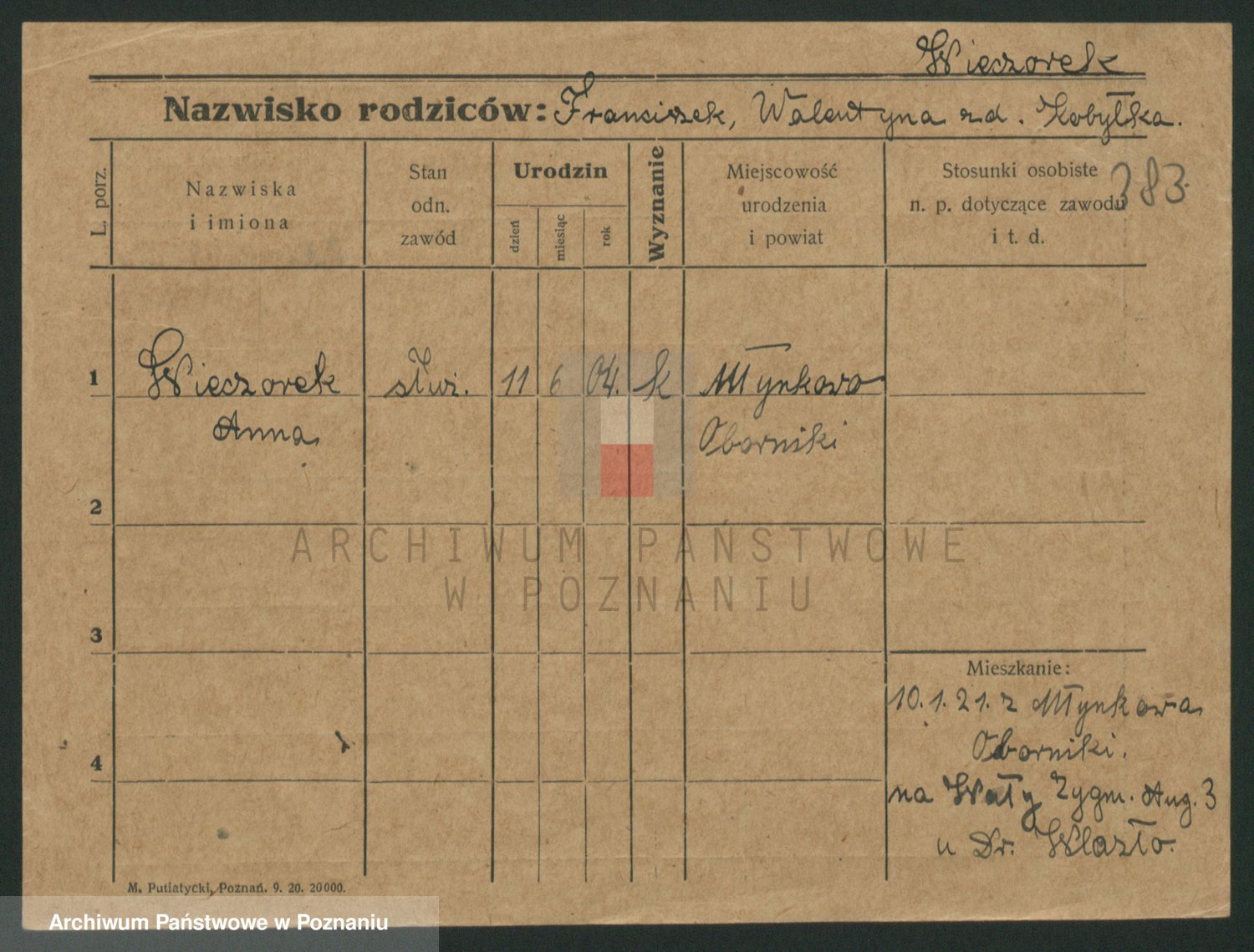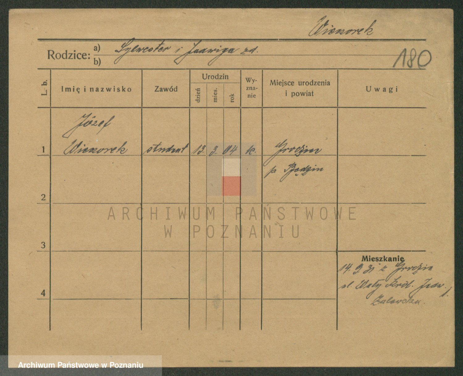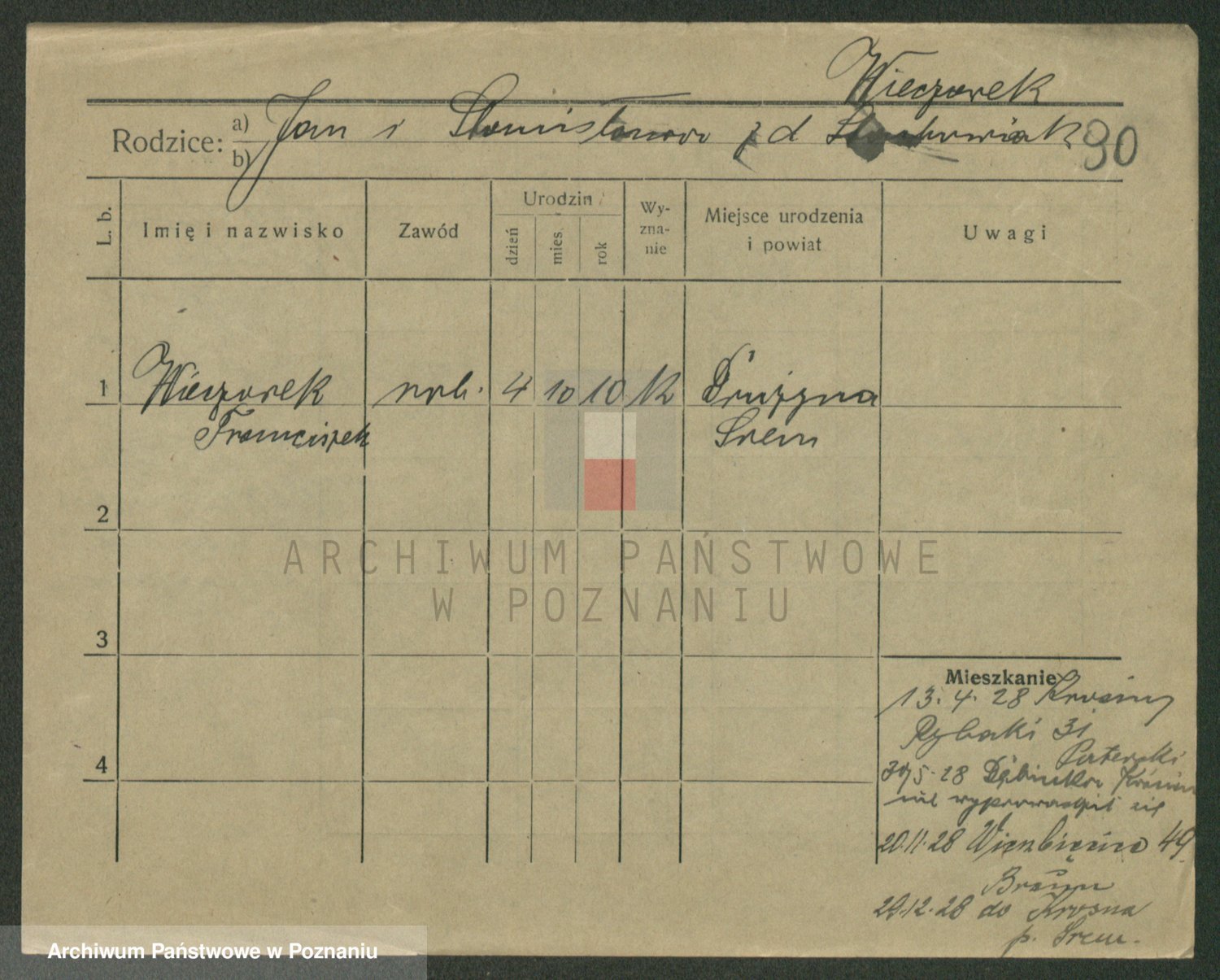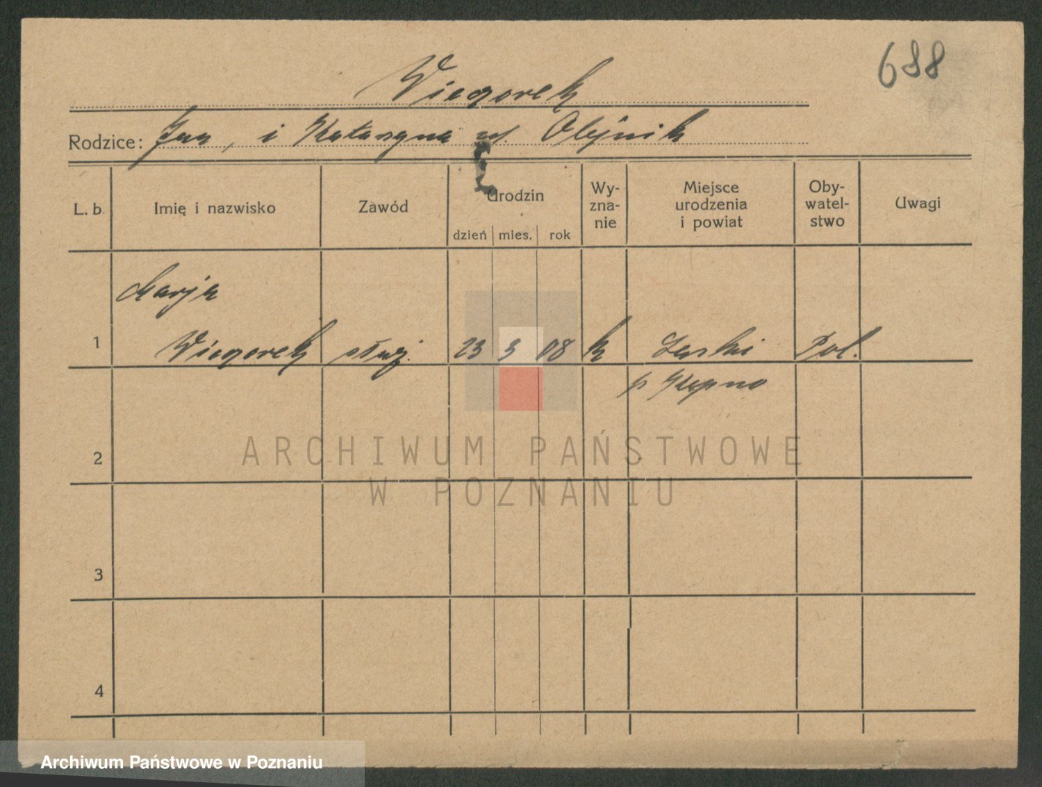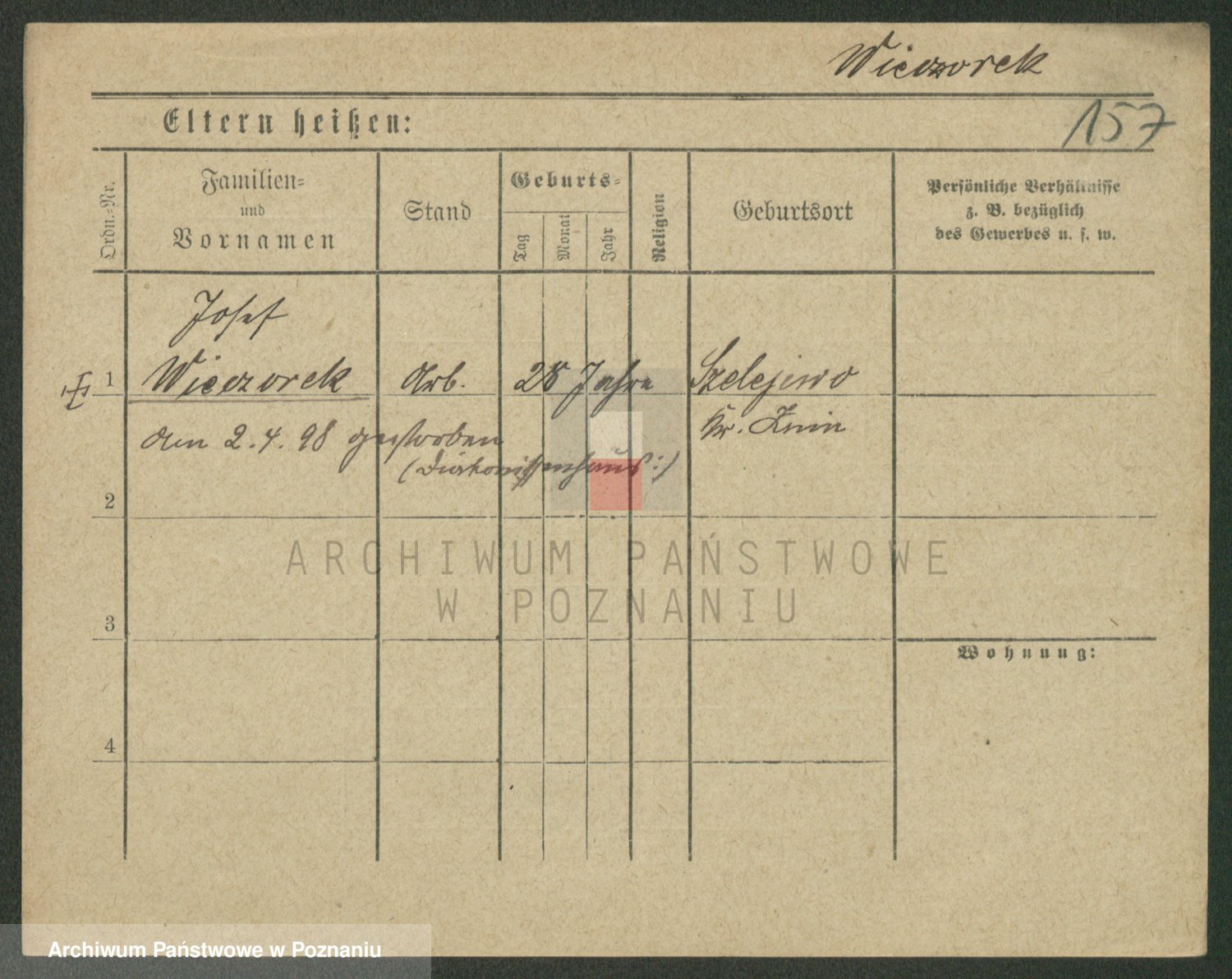 Podgląd karty osobowej dostępny jest po kliknięciu na nazwisko lub ikonkę karty. Można dokonywać powiększenia (ikony na górze) lub przechodzić między kolejnymi skanami (strzałki po bokach).