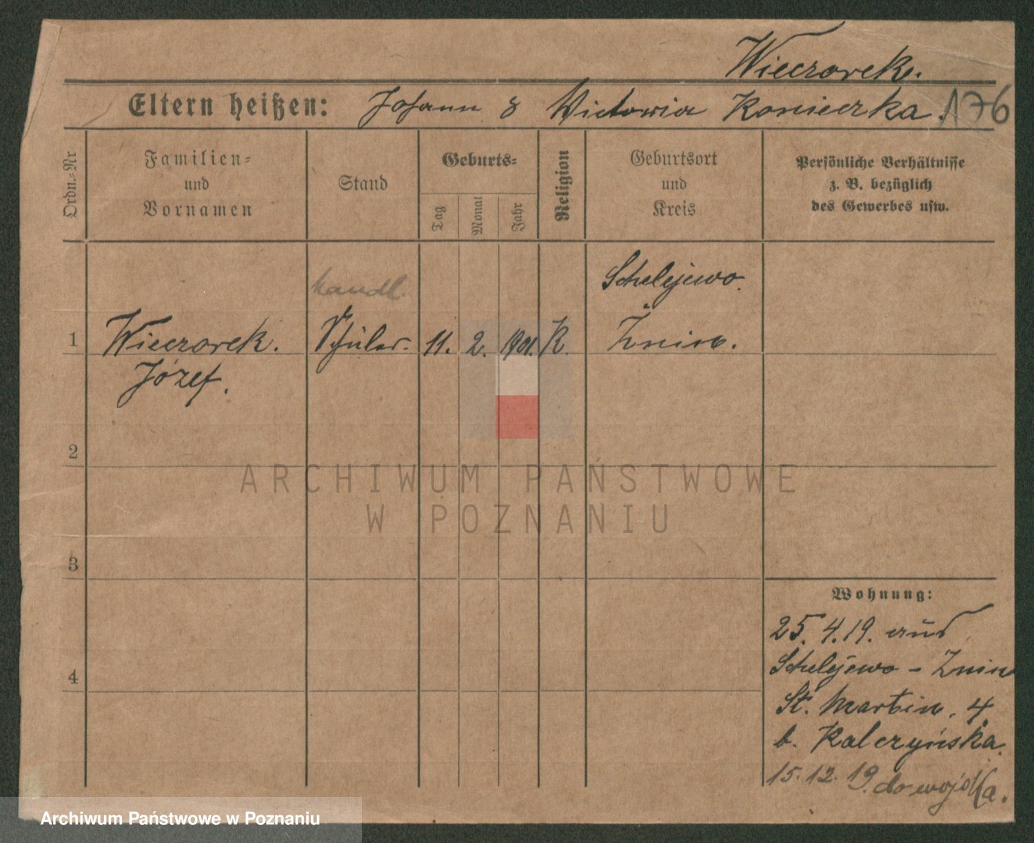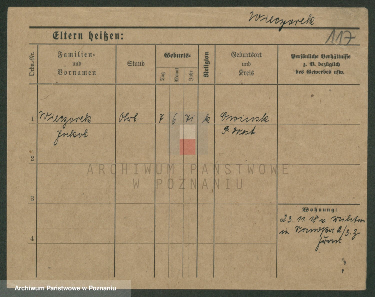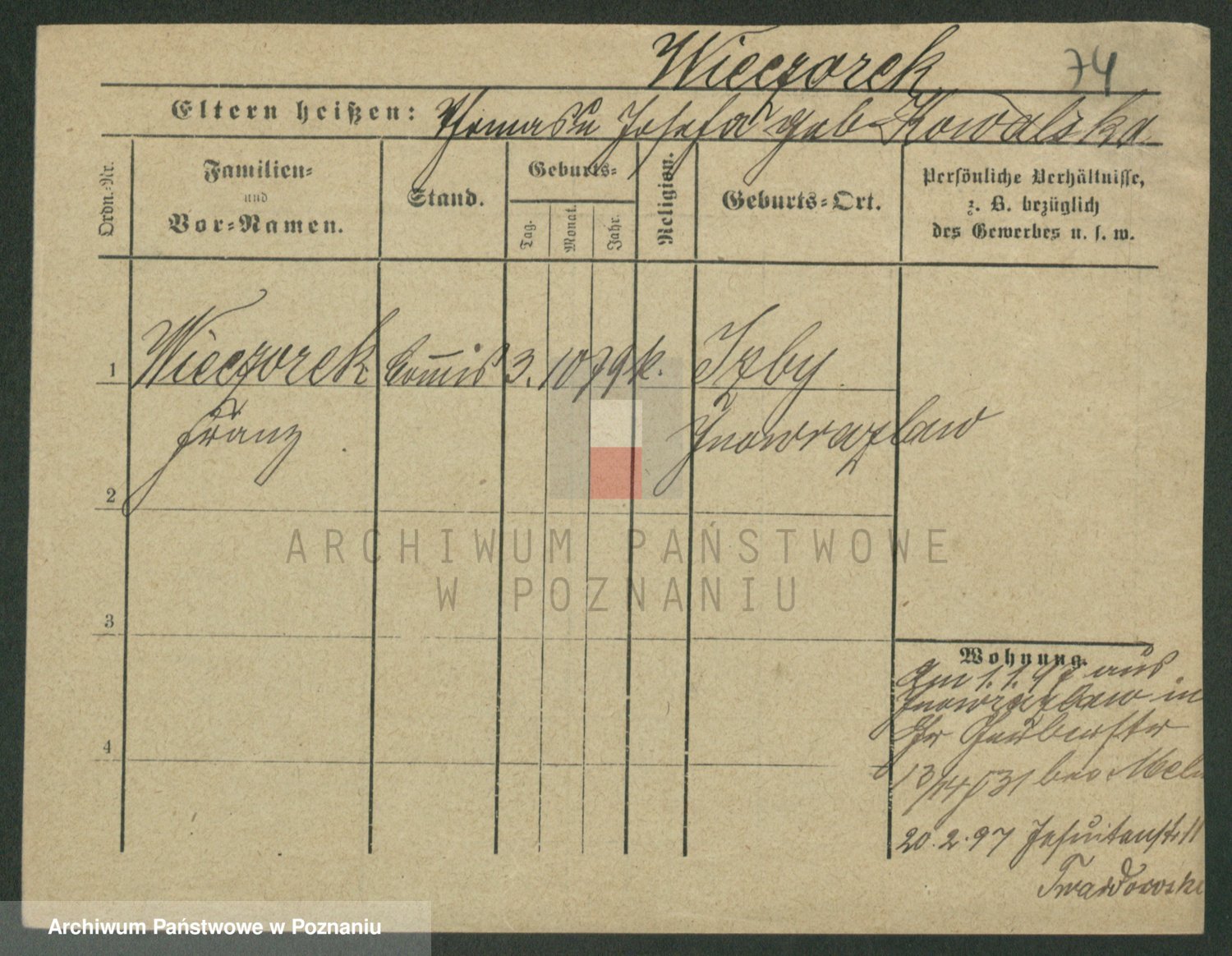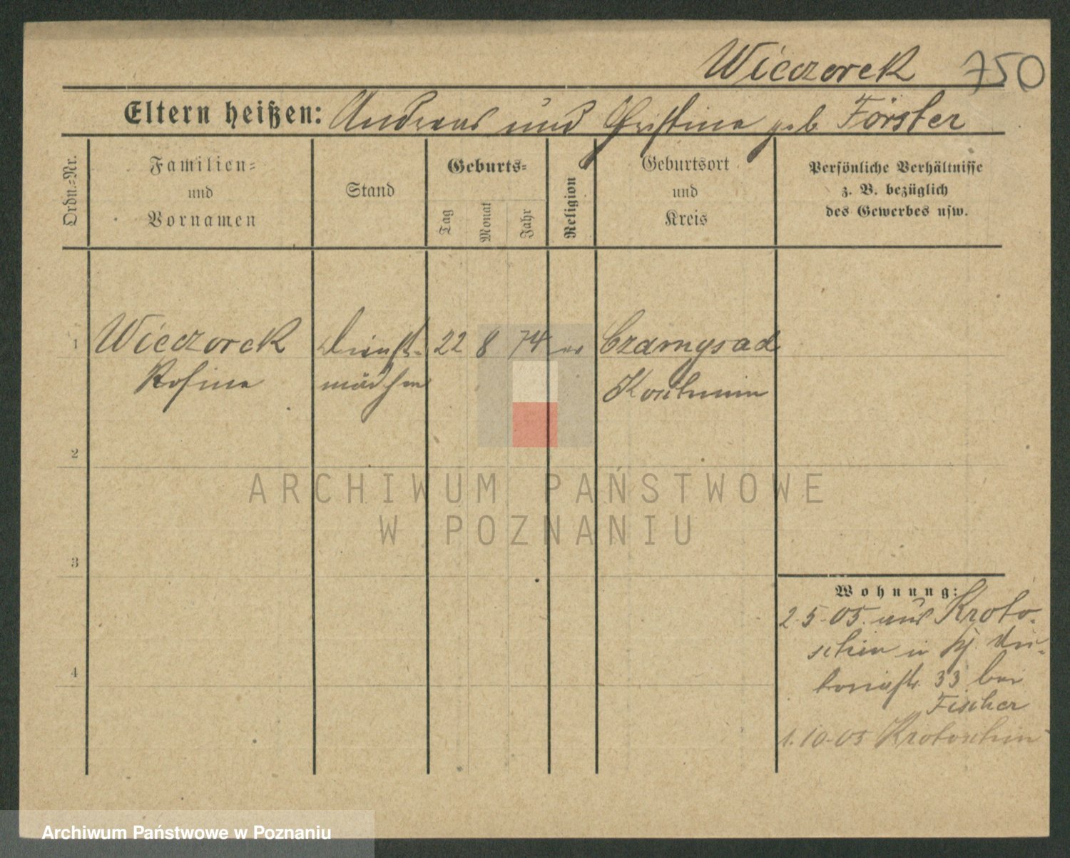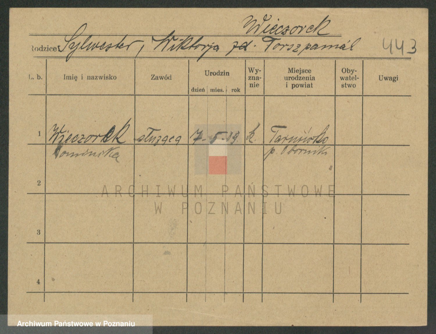 Podgląd karty osobowej dostępny jest po kliknięciu na nazwisko lub ikonkę karty. Można dokonywać powiększenia (ikony na górze) lub przechodzić między kolejnymi skanami (strzałki po bokach).