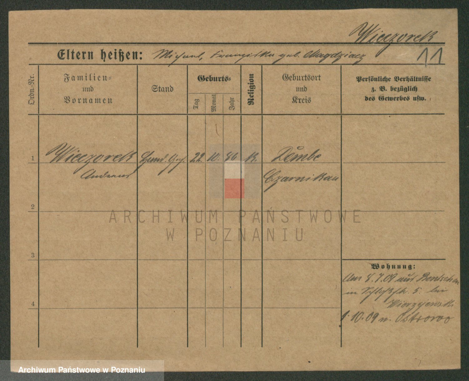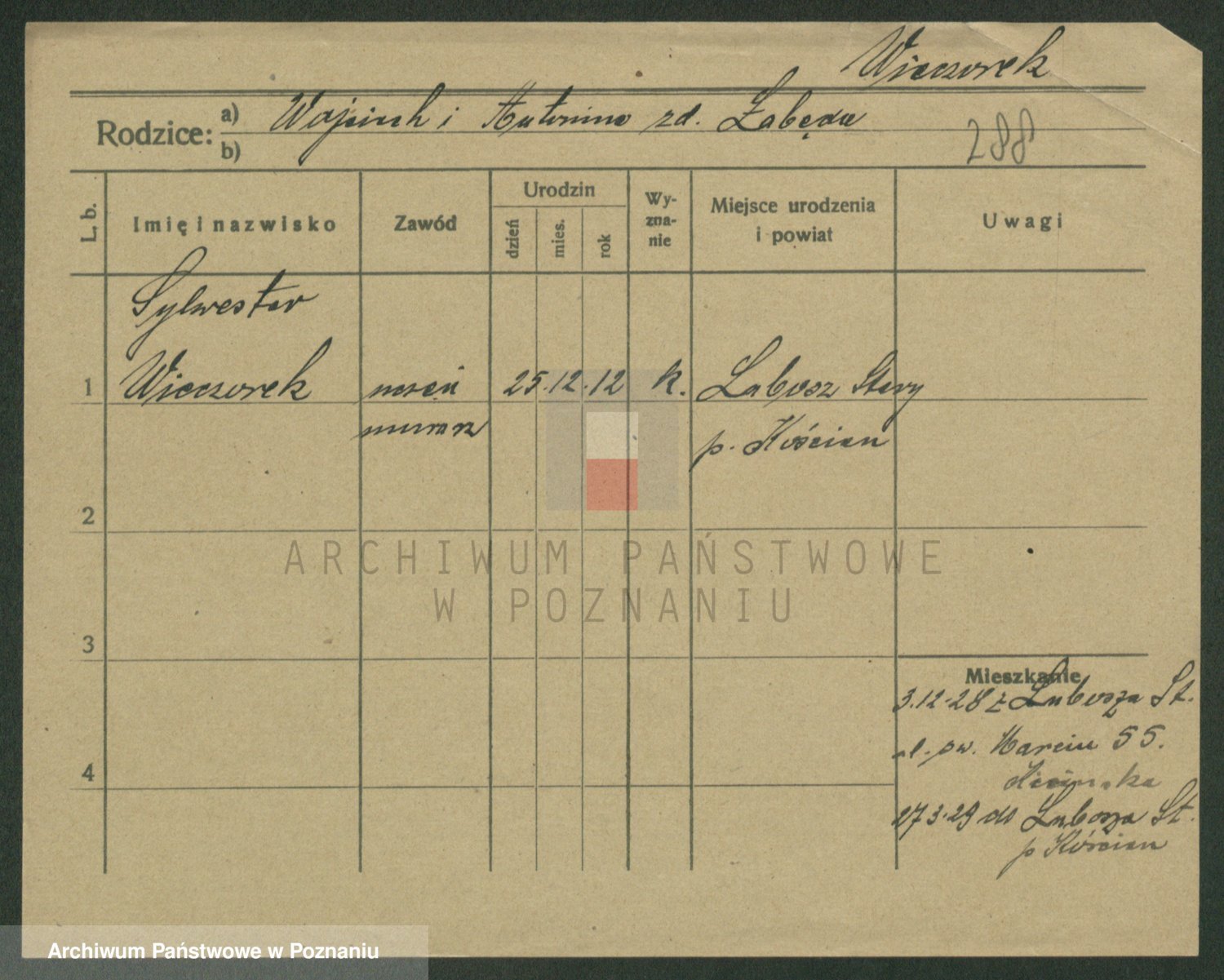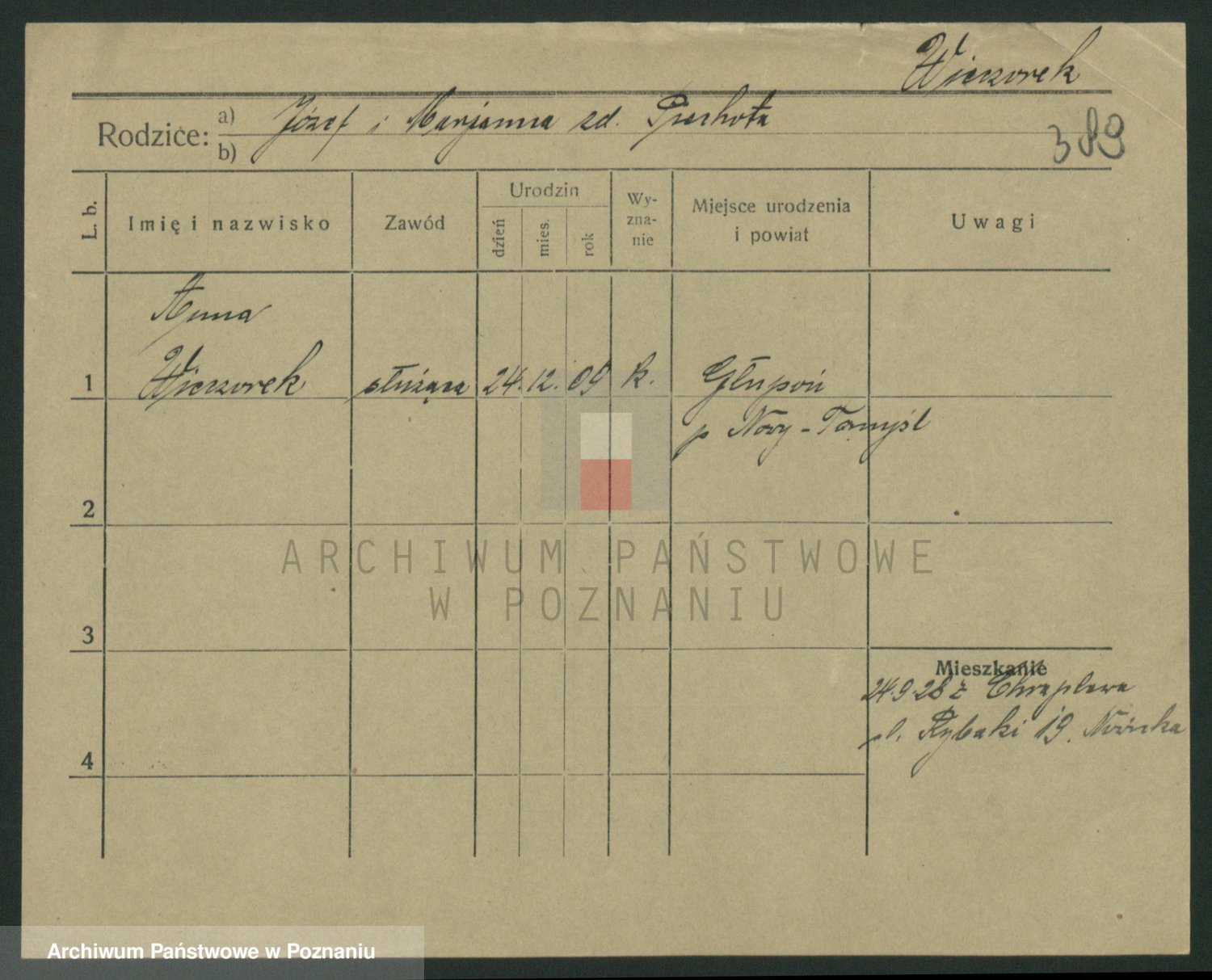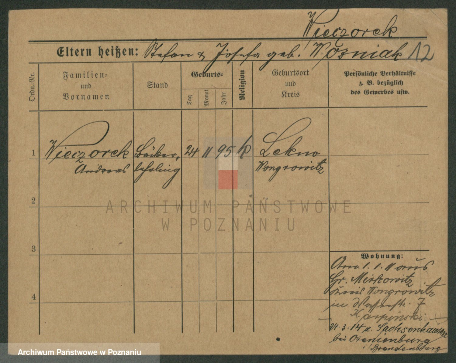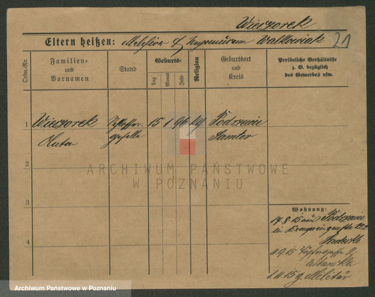 Podgląd karty osobowej dostępny jest po kliknięciu na nazwisko lub ikonkę karty. Można dokonywać powiększenia (ikony na górze) lub przechodzić między kolejnymi skanami (strzałki po bokach).