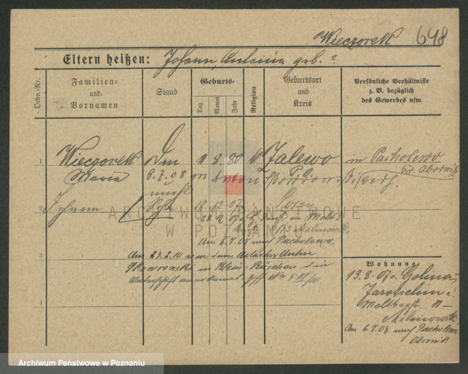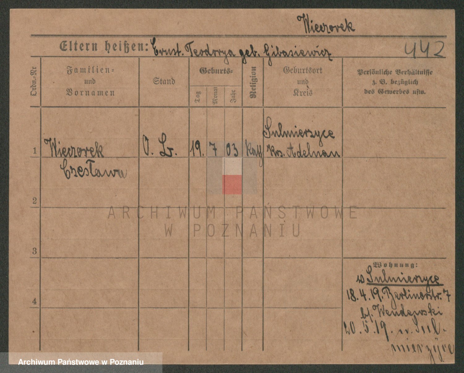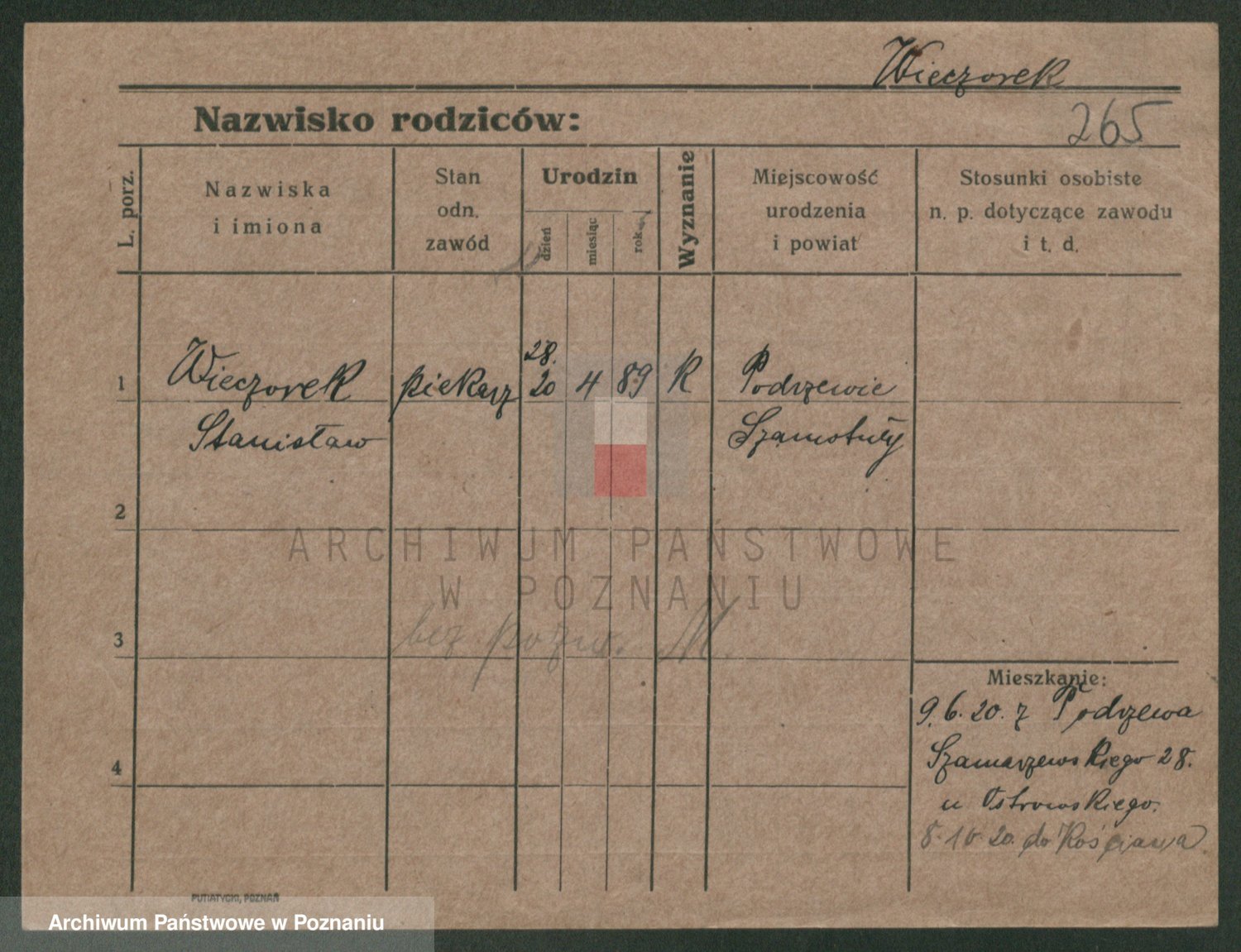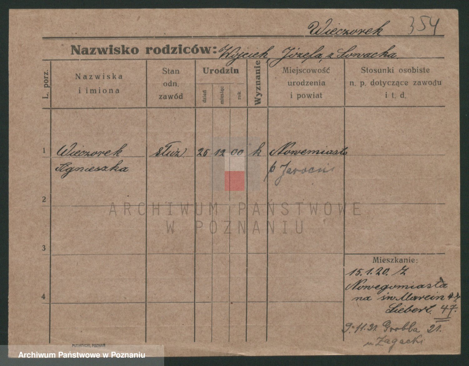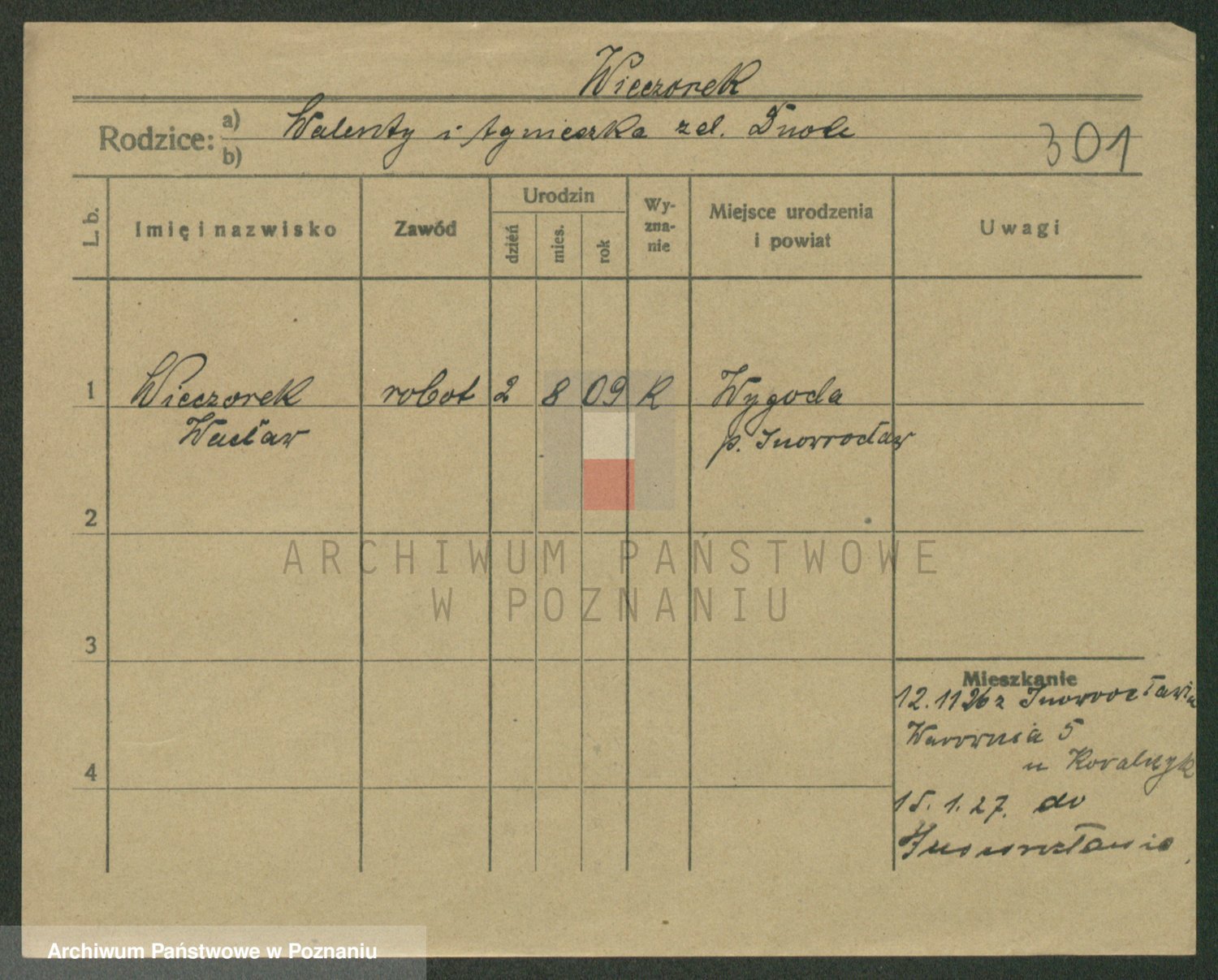 Podgląd karty osobowej dostępny jest po kliknięciu na nazwisko lub ikonkę karty. Można dokonywać powiększenia (ikony na górze) lub przechodzić między kolejnymi skanami (strzałki po bokach).