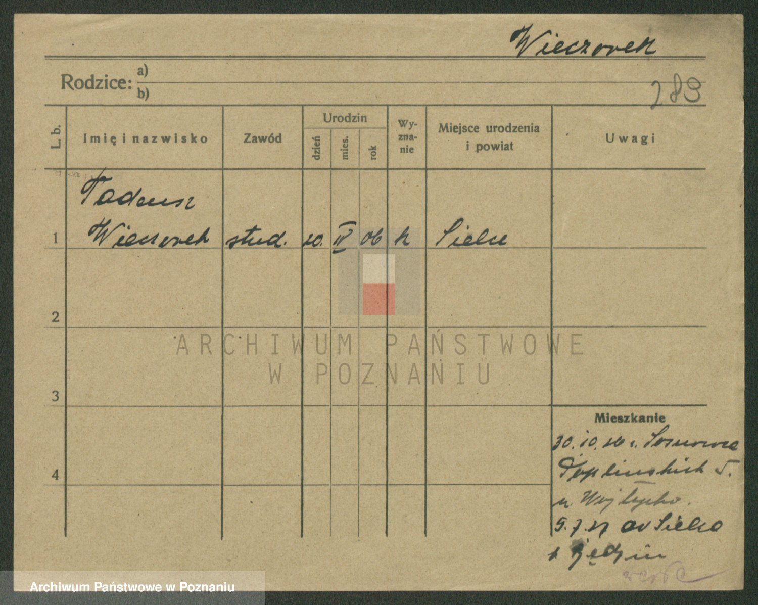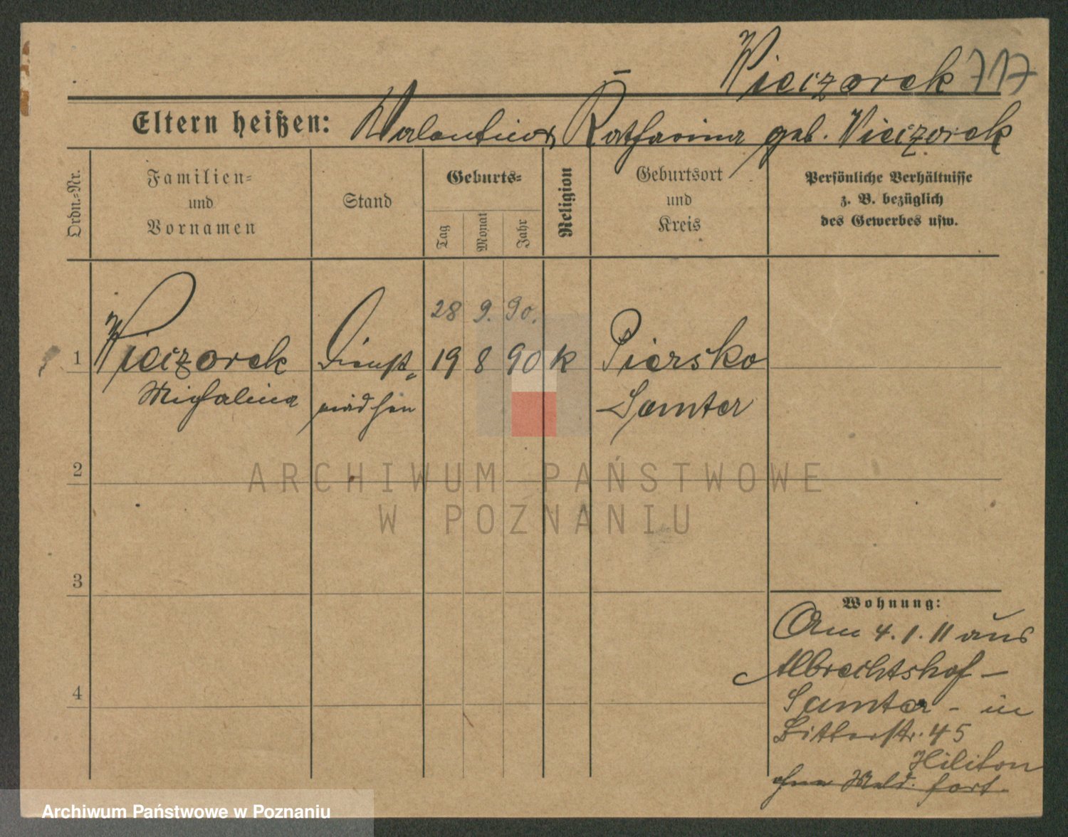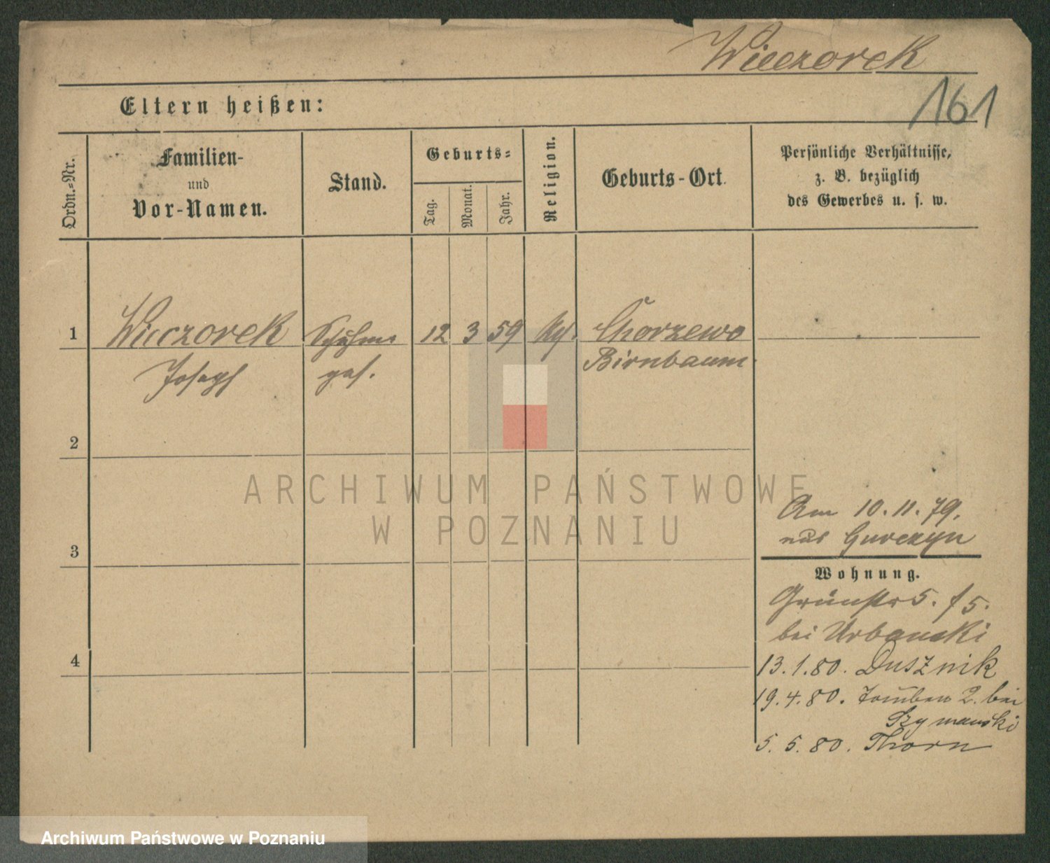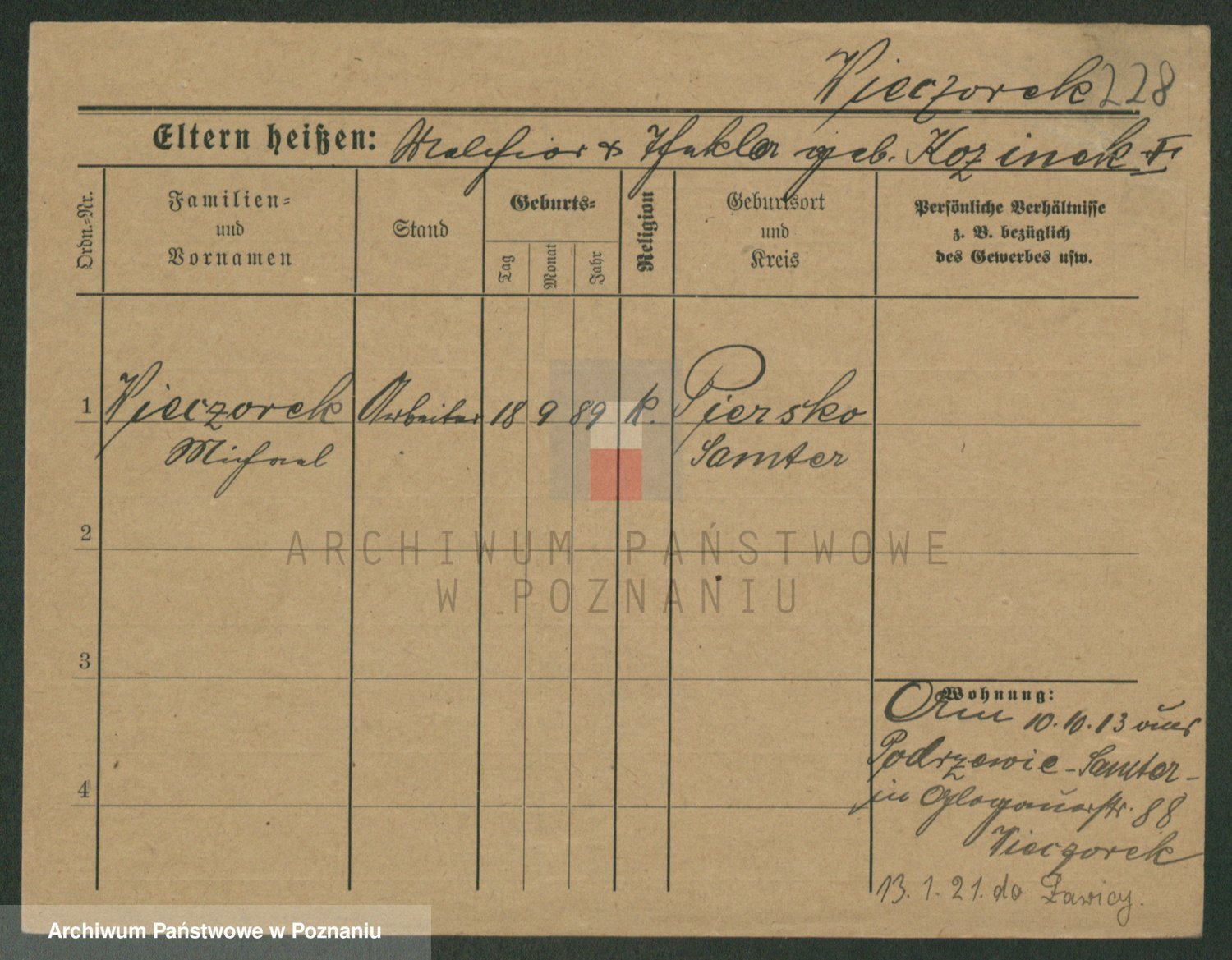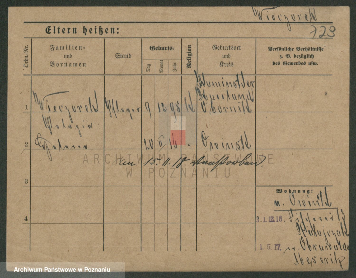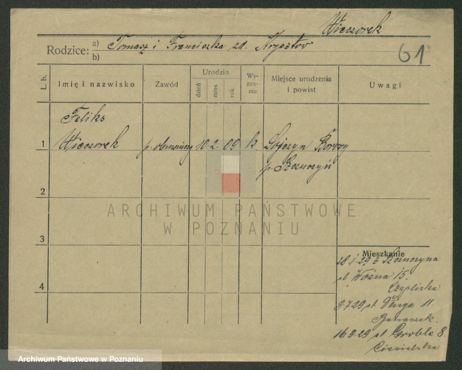 Podgląd karty osobowej dostępny jest po kliknięciu na nazwisko lub ikonkę karty. Można dokonywać powiększenia (ikony na górze) lub przechodzić między kolejnymi skanami (strzałki po bokach).