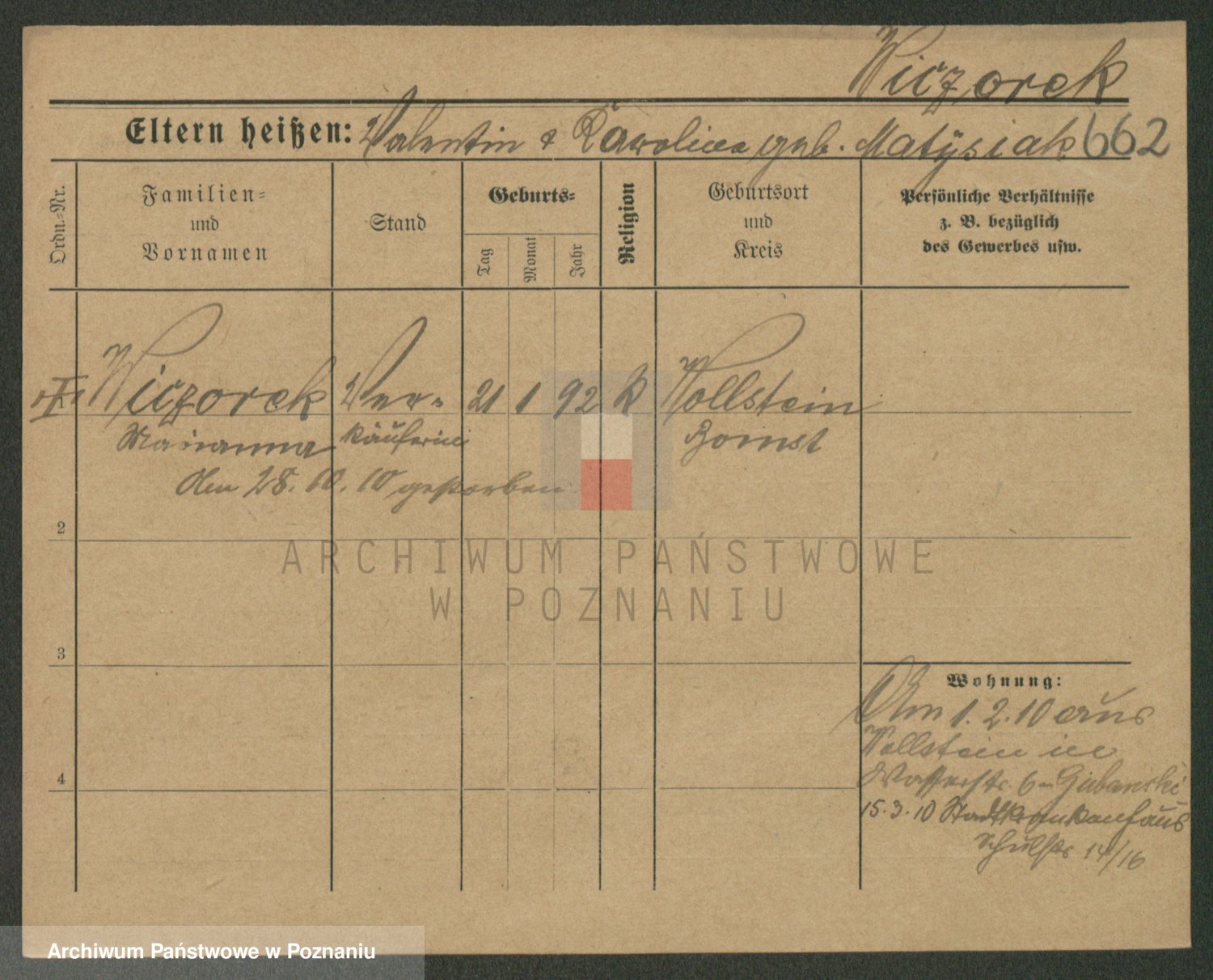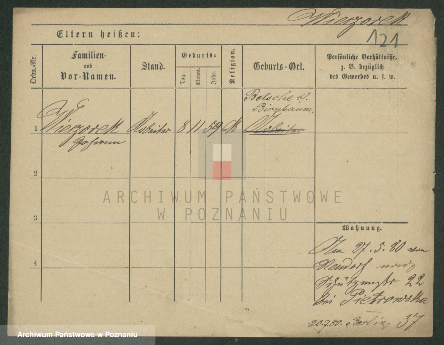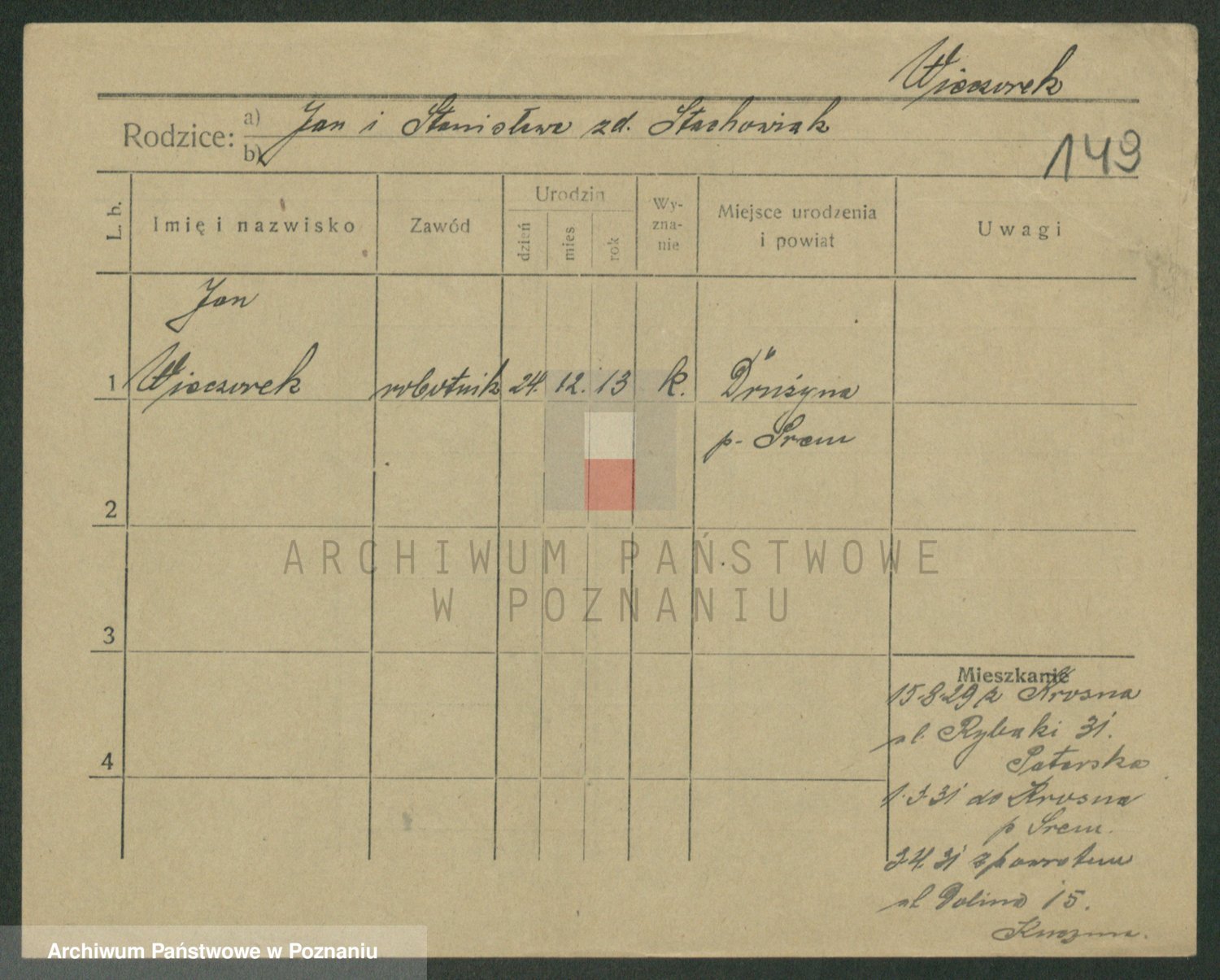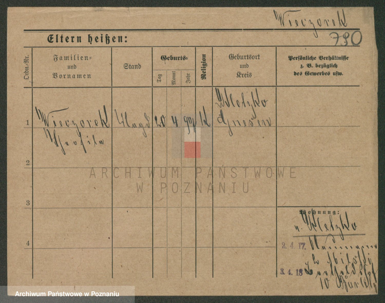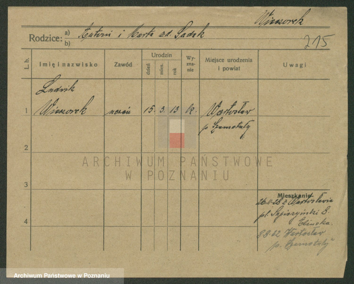 Podgląd karty osobowej dostępny jest po kliknięciu na nazwisko lub ikonkę karty. Można dokonywać powiększenia (ikony na górze) lub przechodzić między kolejnymi skanami (strzałki po bokach).
