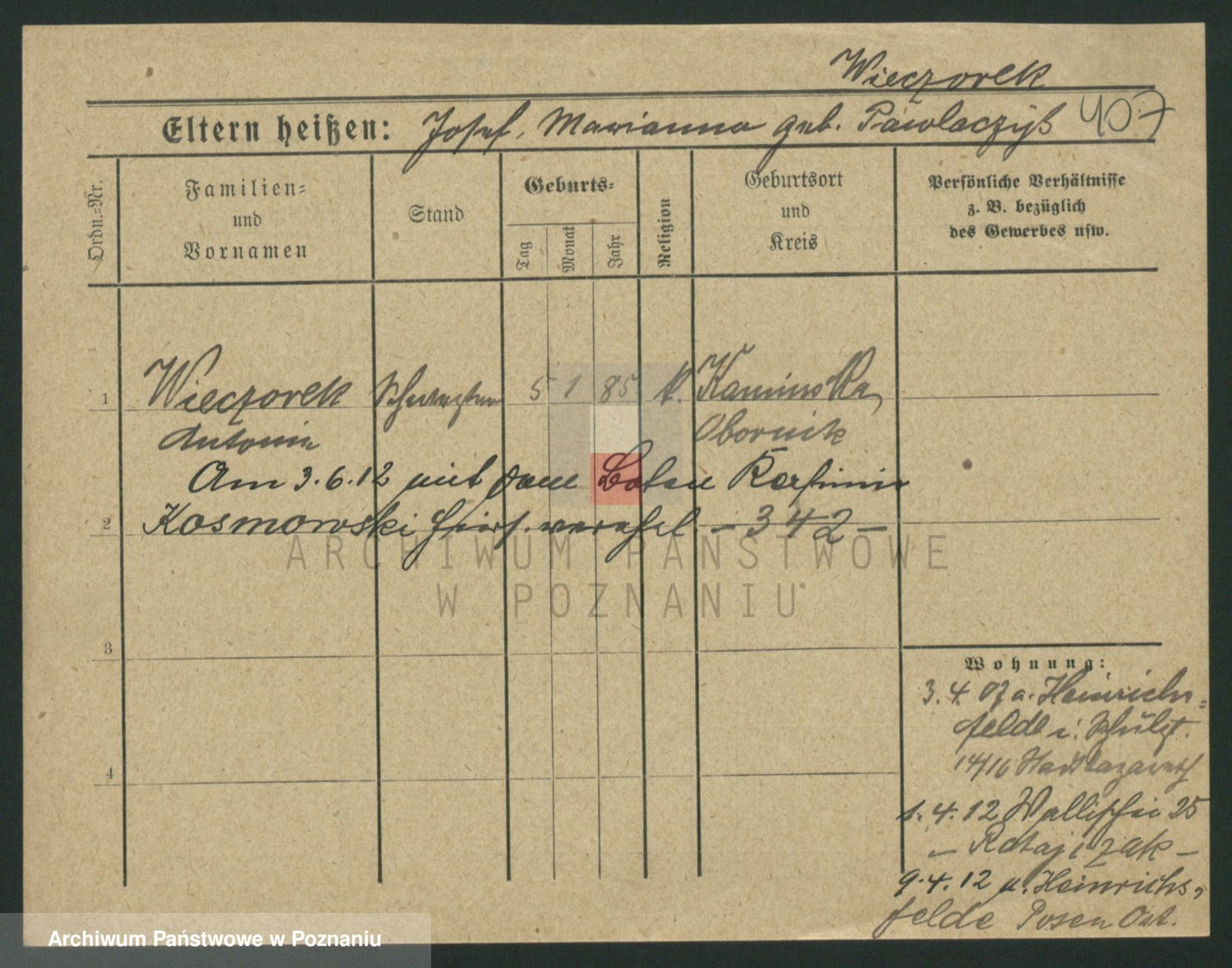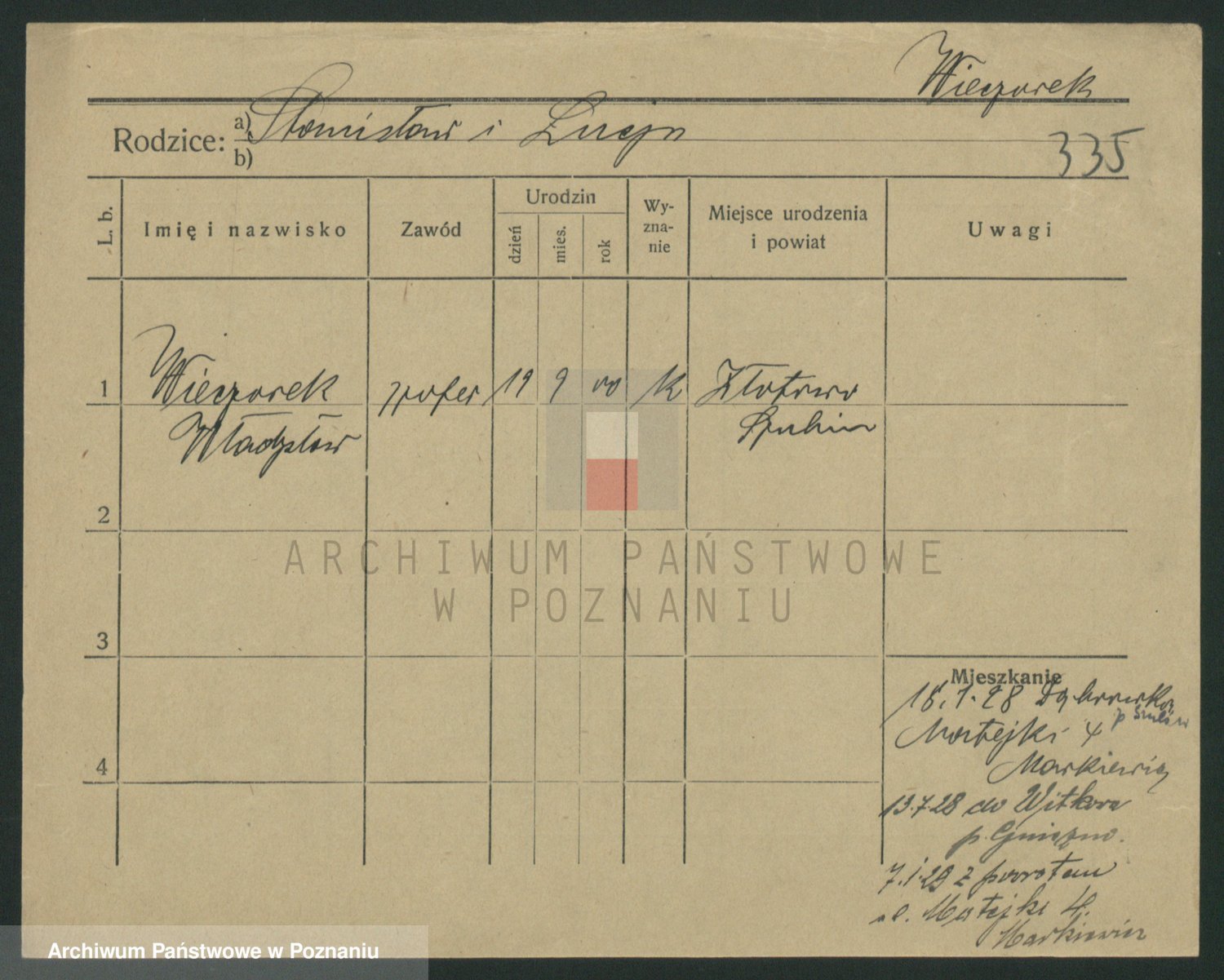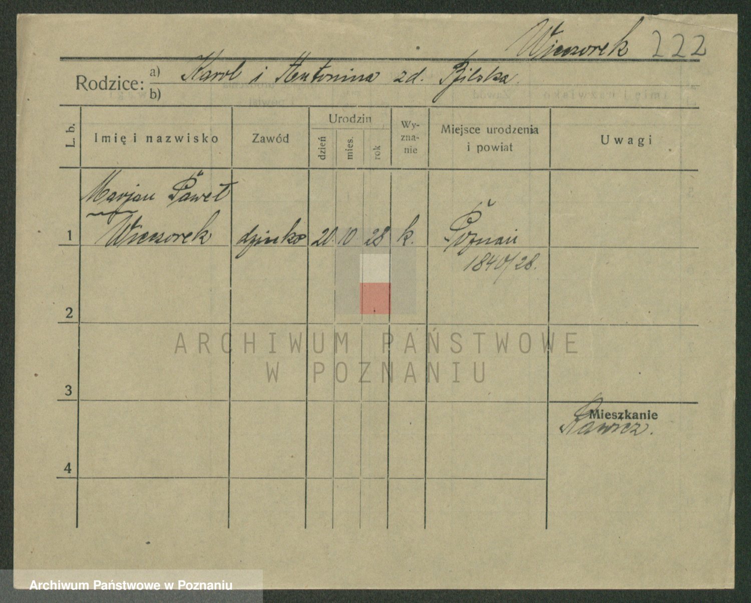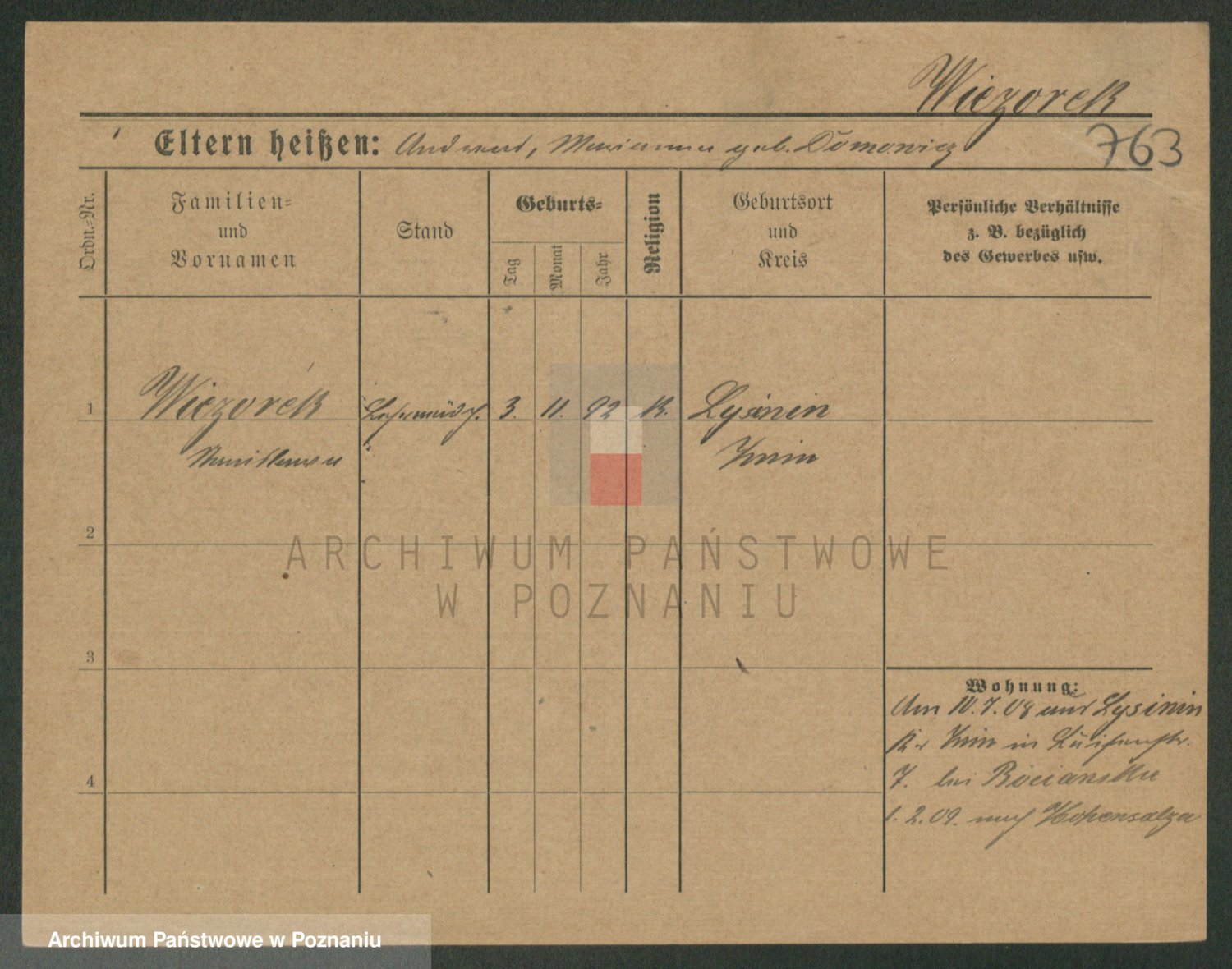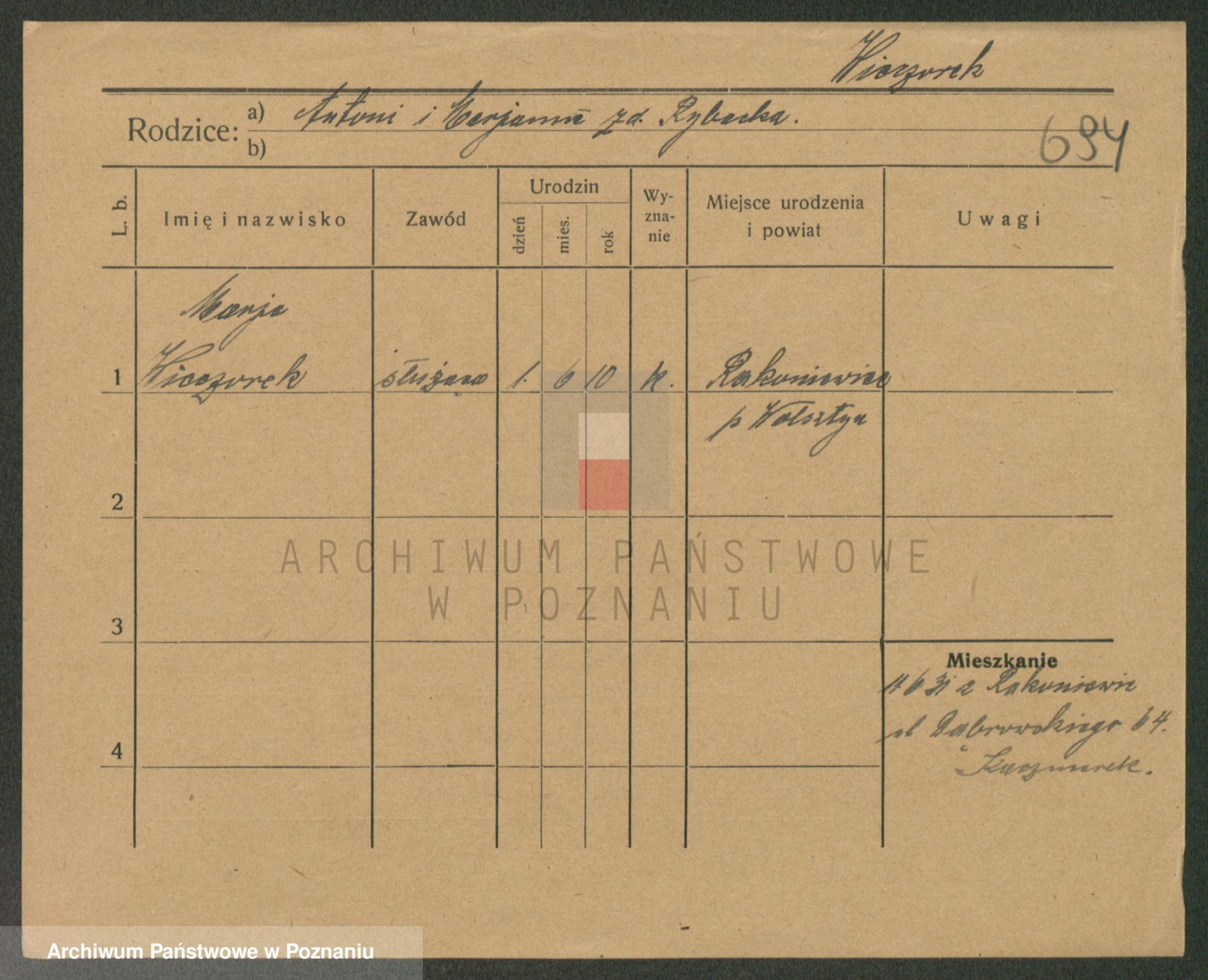 Podgląd karty osobowej dostępny jest po kliknięciu na nazwisko lub ikonkę karty. Można dokonywać powiększenia (ikony na górze) lub przechodzić między kolejnymi skanami (strzałki po bokach).