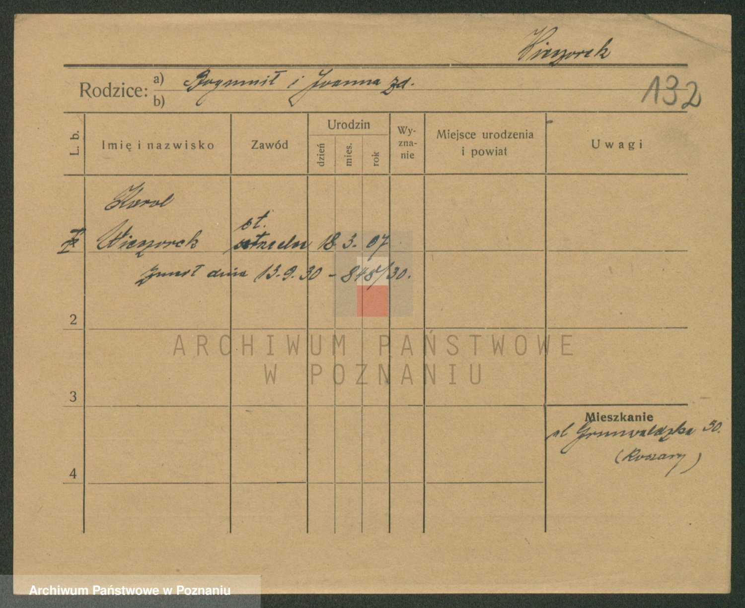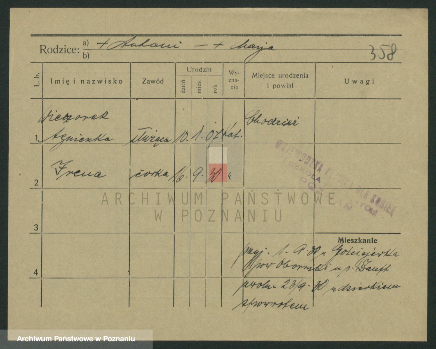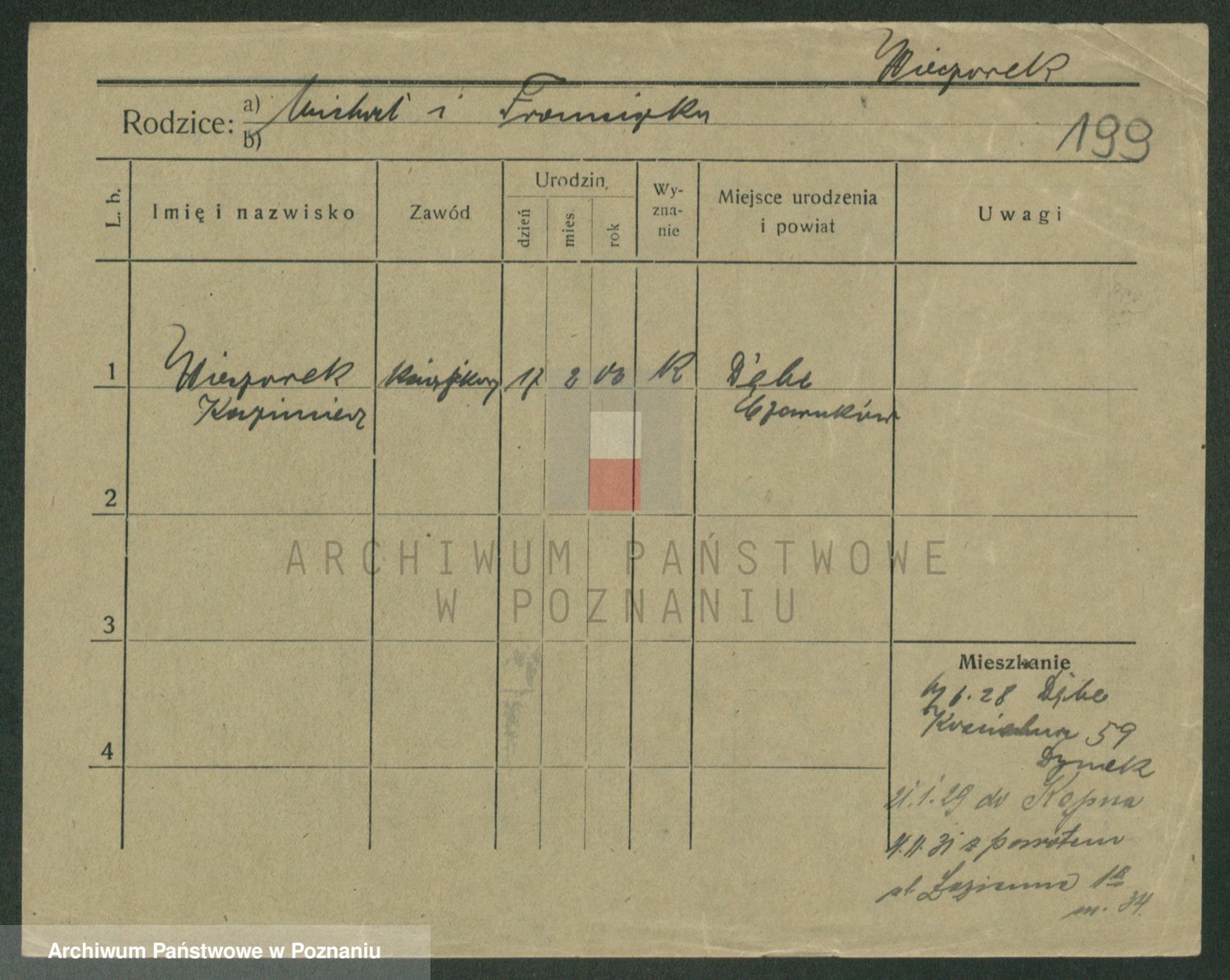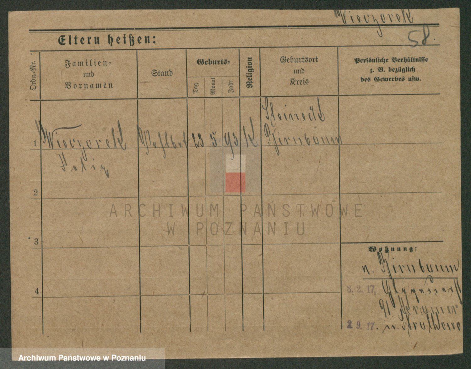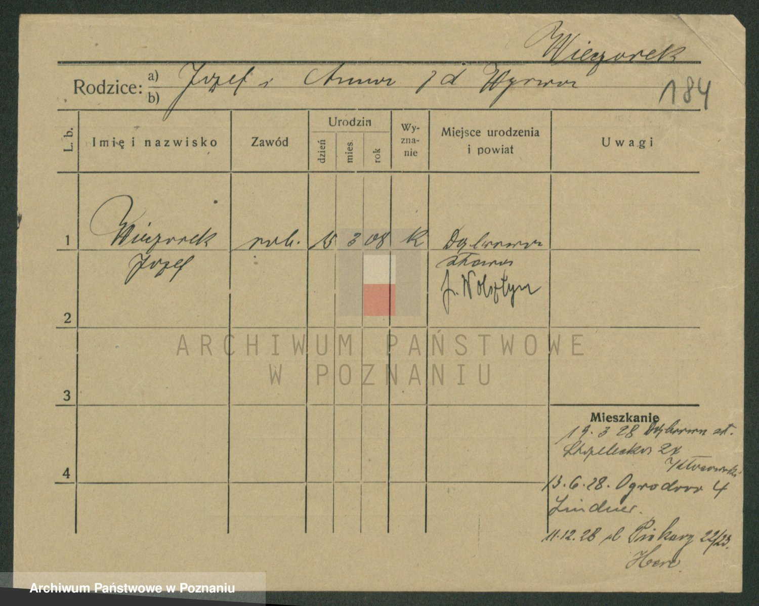 Podgląd karty osobowej dostępny jest po kliknięciu na nazwisko lub ikonkę karty. Można dokonywać powiększenia (ikony na górze) lub przechodzić między kolejnymi skanami (strzałki po bokach).