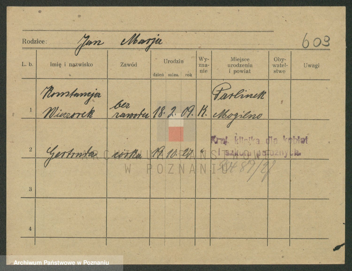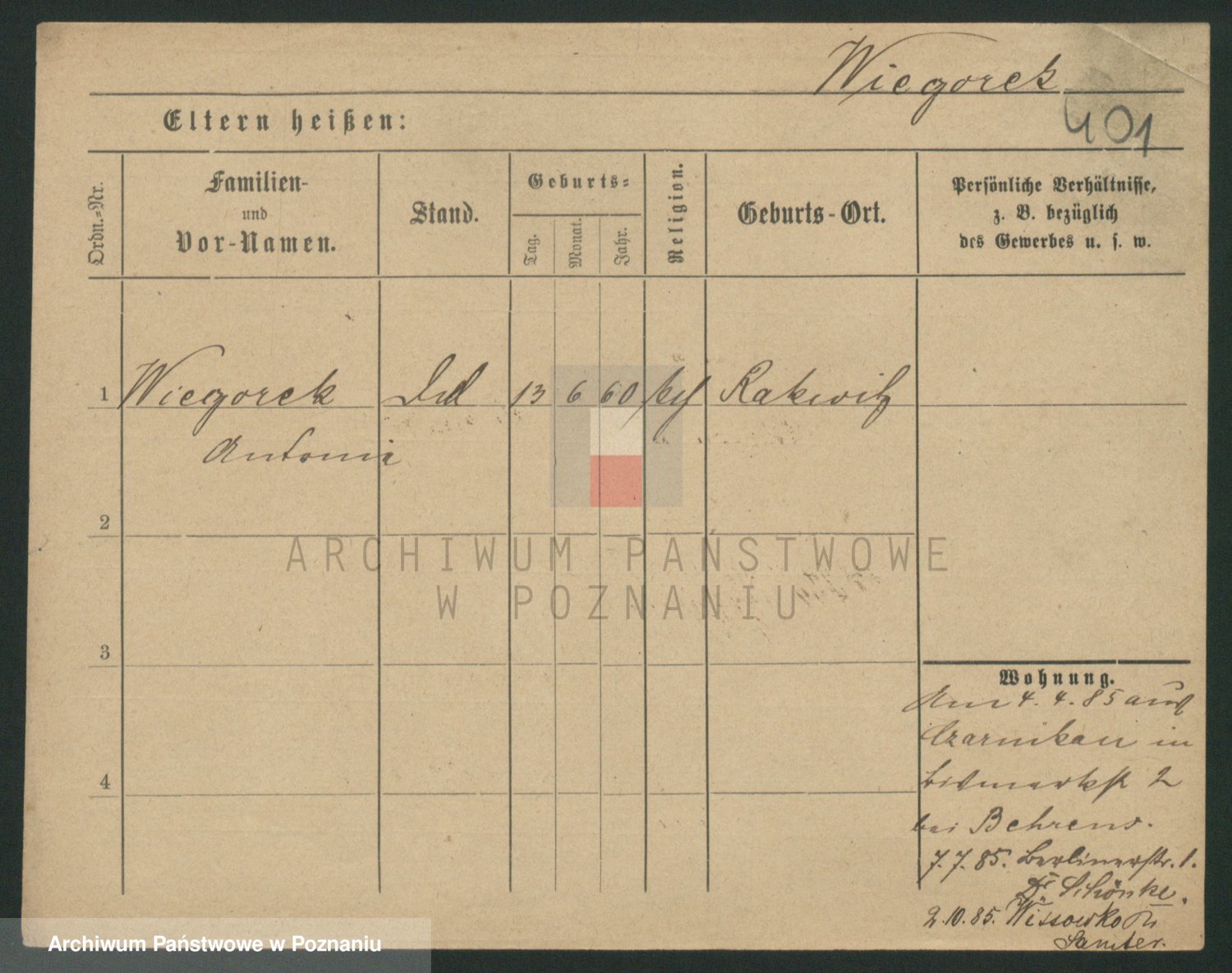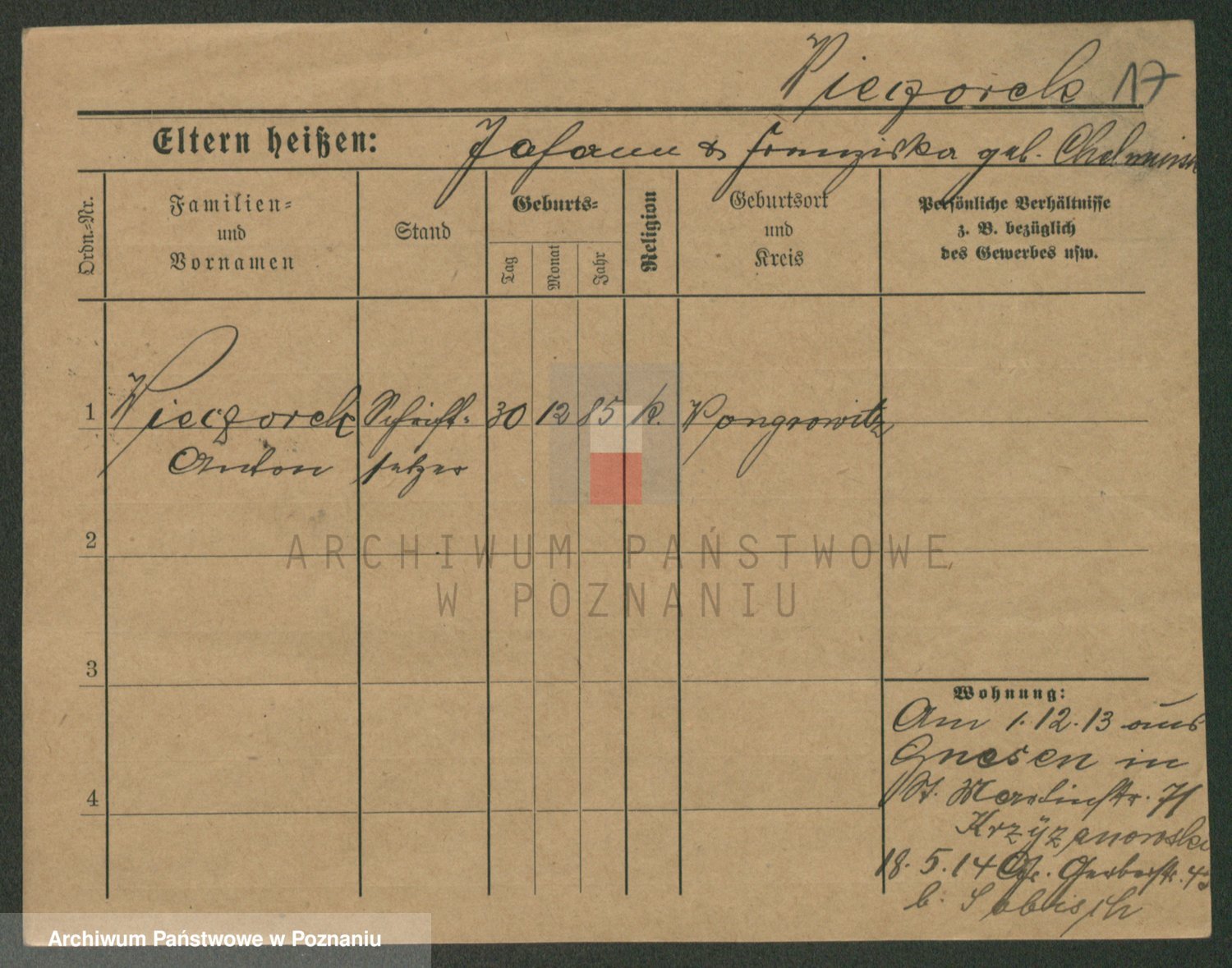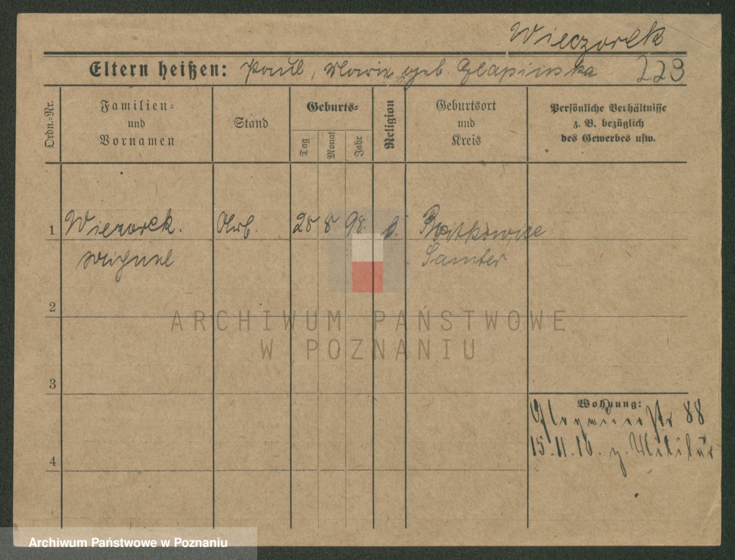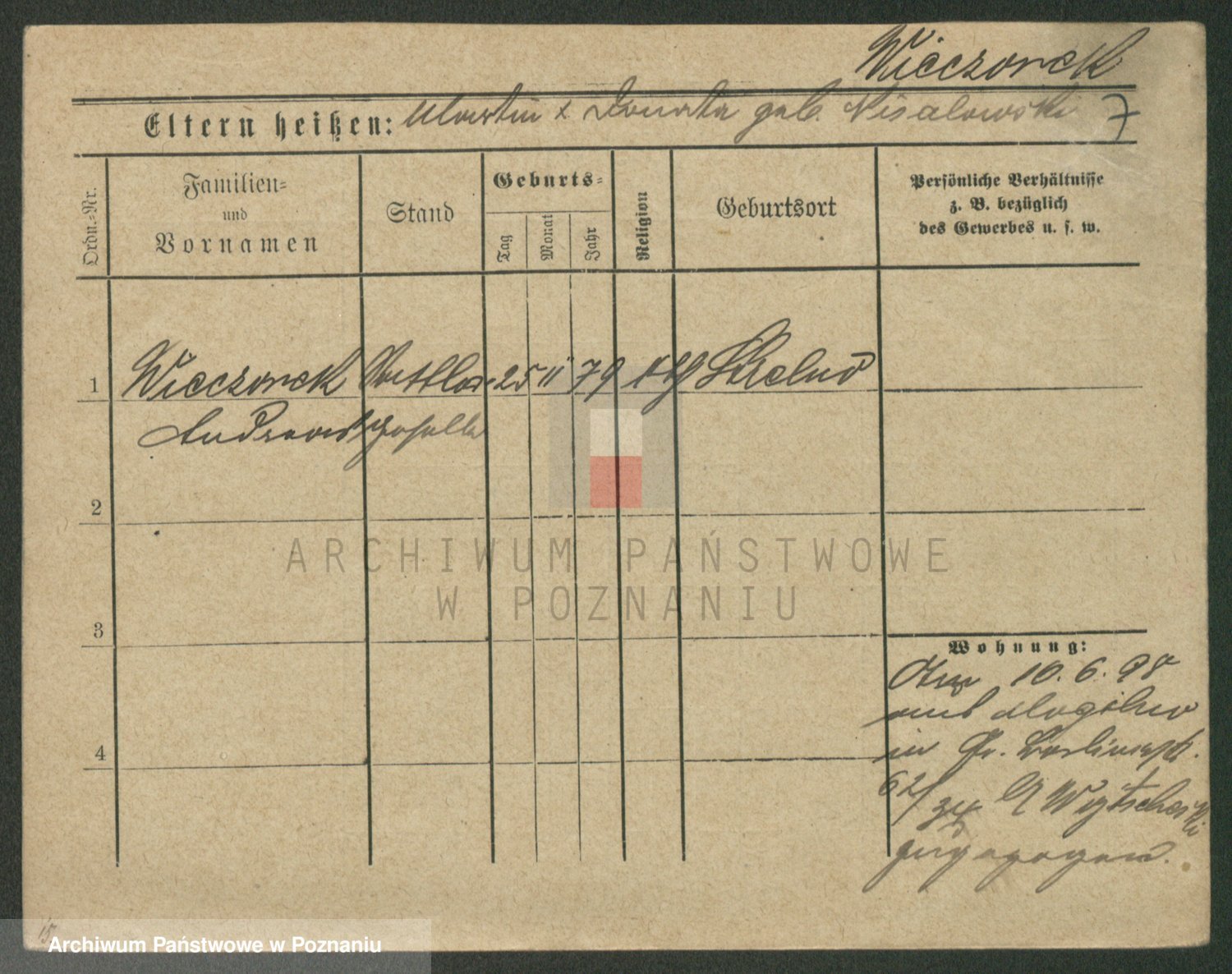 Podgląd karty osobowej dostępny jest po kliknięciu na nazwisko lub ikonkę karty. Można dokonywać powiększenia (ikony na górze) lub przechodzić między kolejnymi skanami (strzałki po bokach).