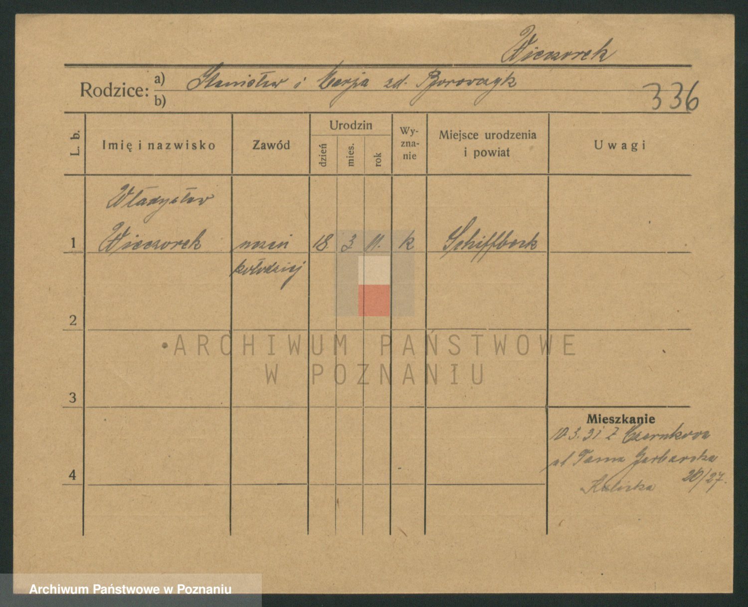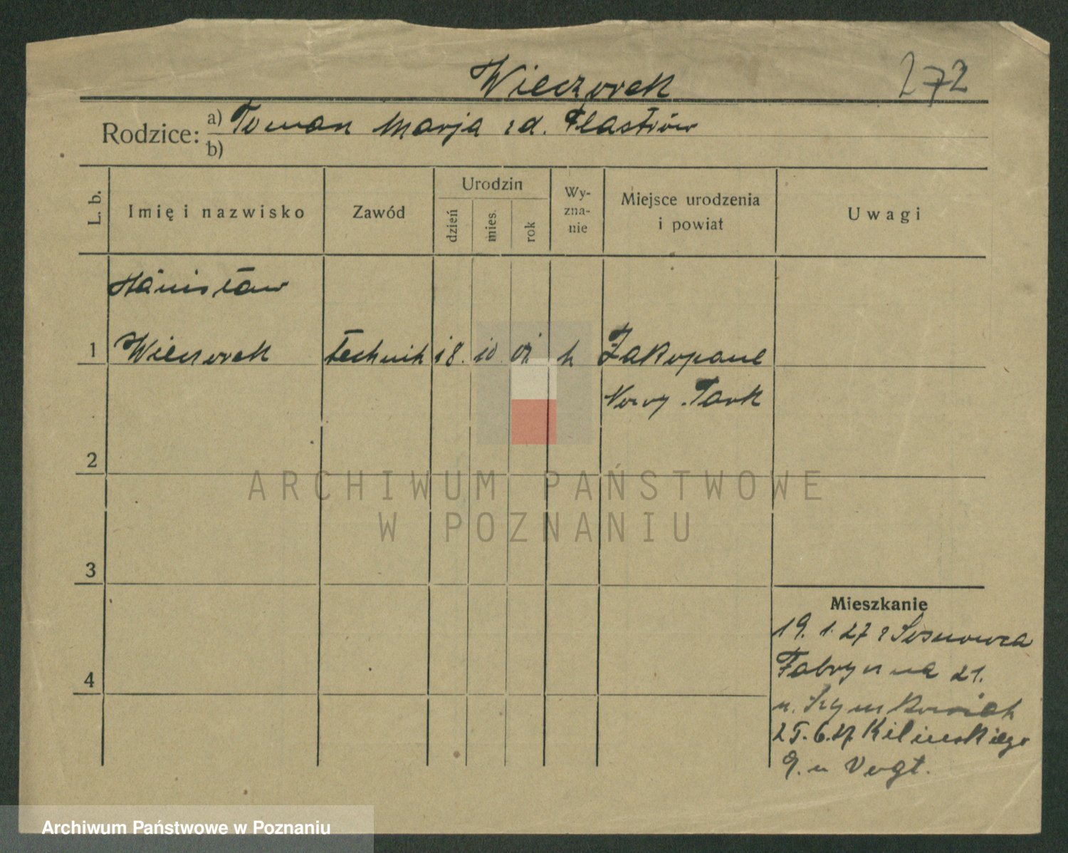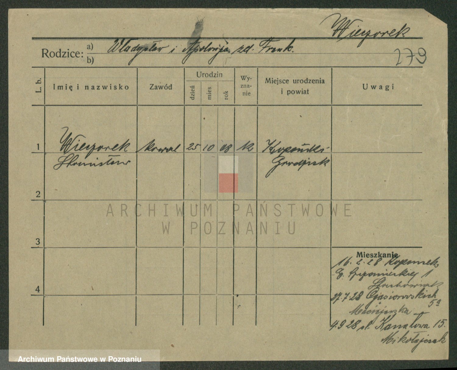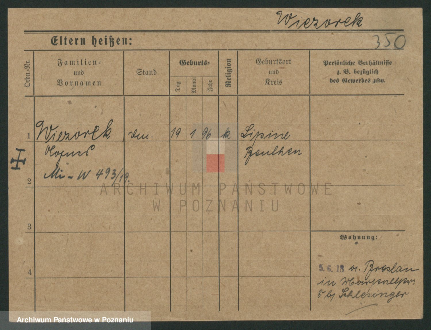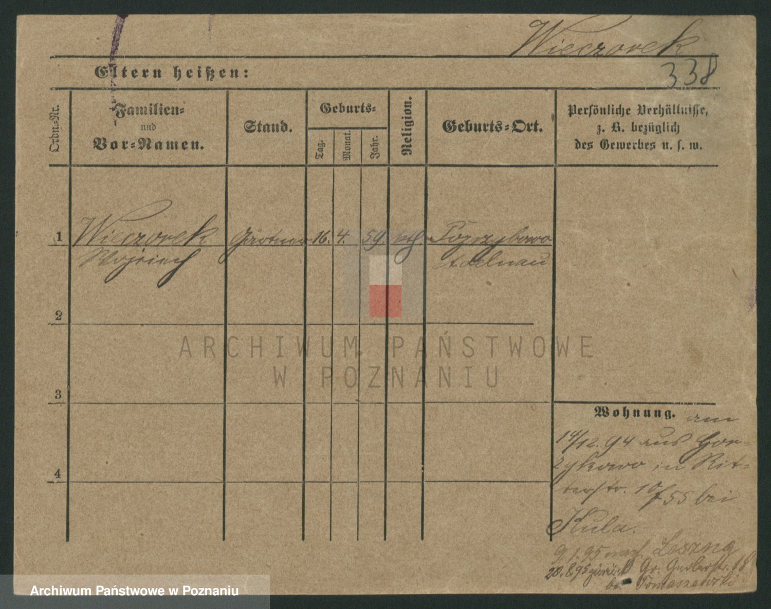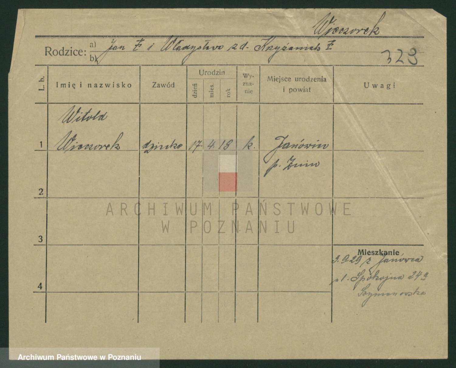 Podgląd karty osobowej dostępny jest po kliknięciu na nazwisko lub ikonkę karty. Można dokonywać powiększenia (ikony na górze) lub przechodzić między kolejnymi skanami (strzałki po bokach).