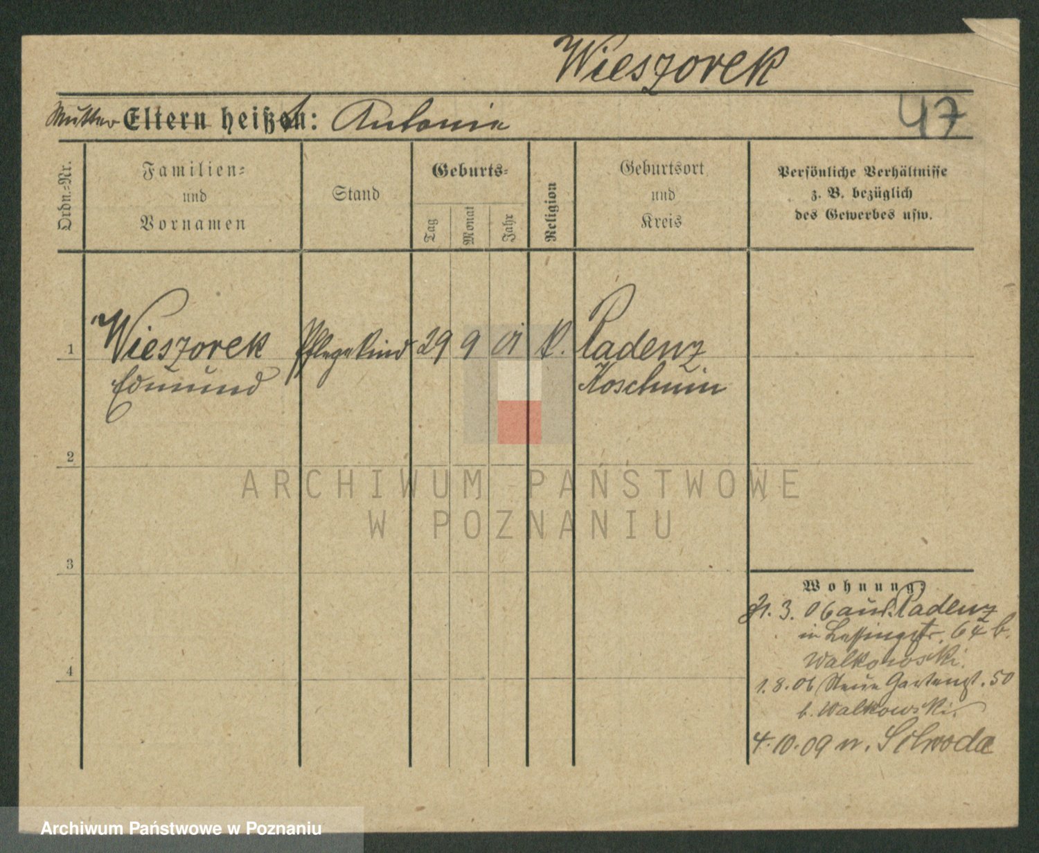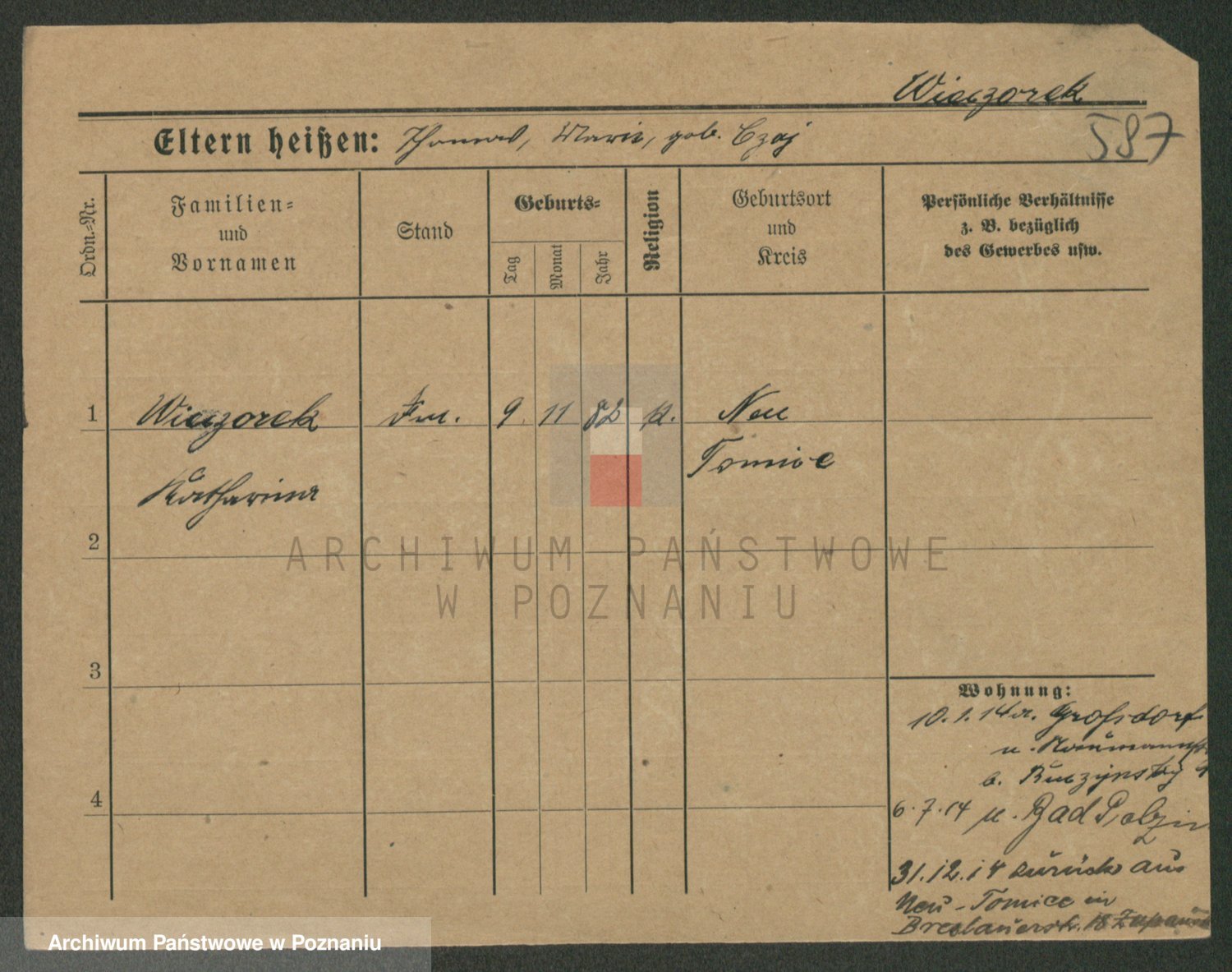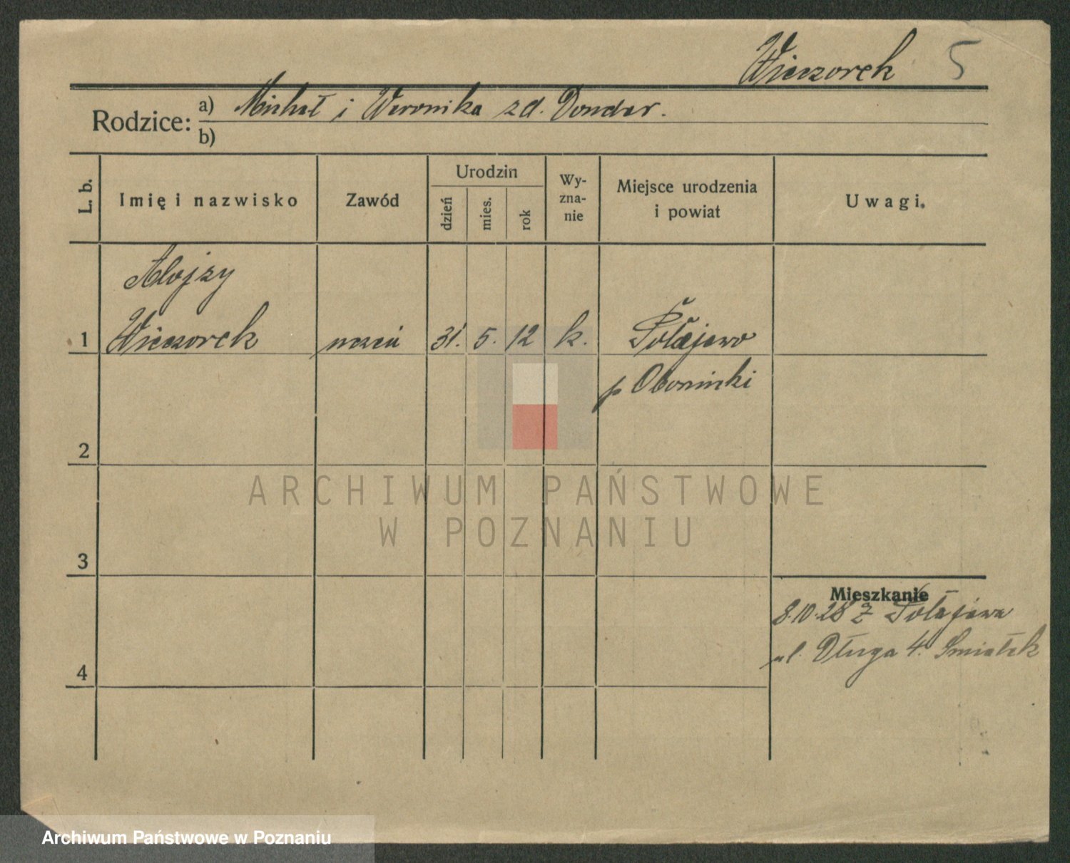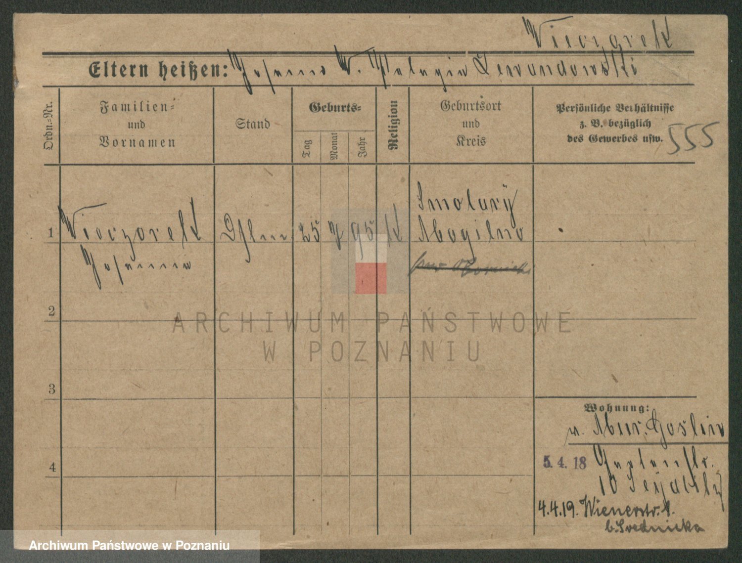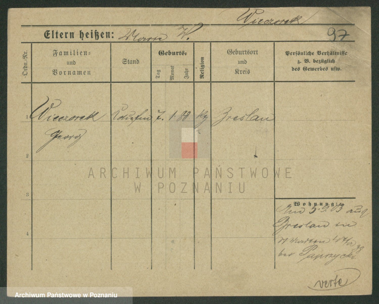 Podgląd karty osobowej dostępny jest po kliknięciu na nazwisko lub ikonkę karty. Można dokonywać powiększenia (ikony na górze) lub przechodzić między kolejnymi skanami (strzałki po bokach).